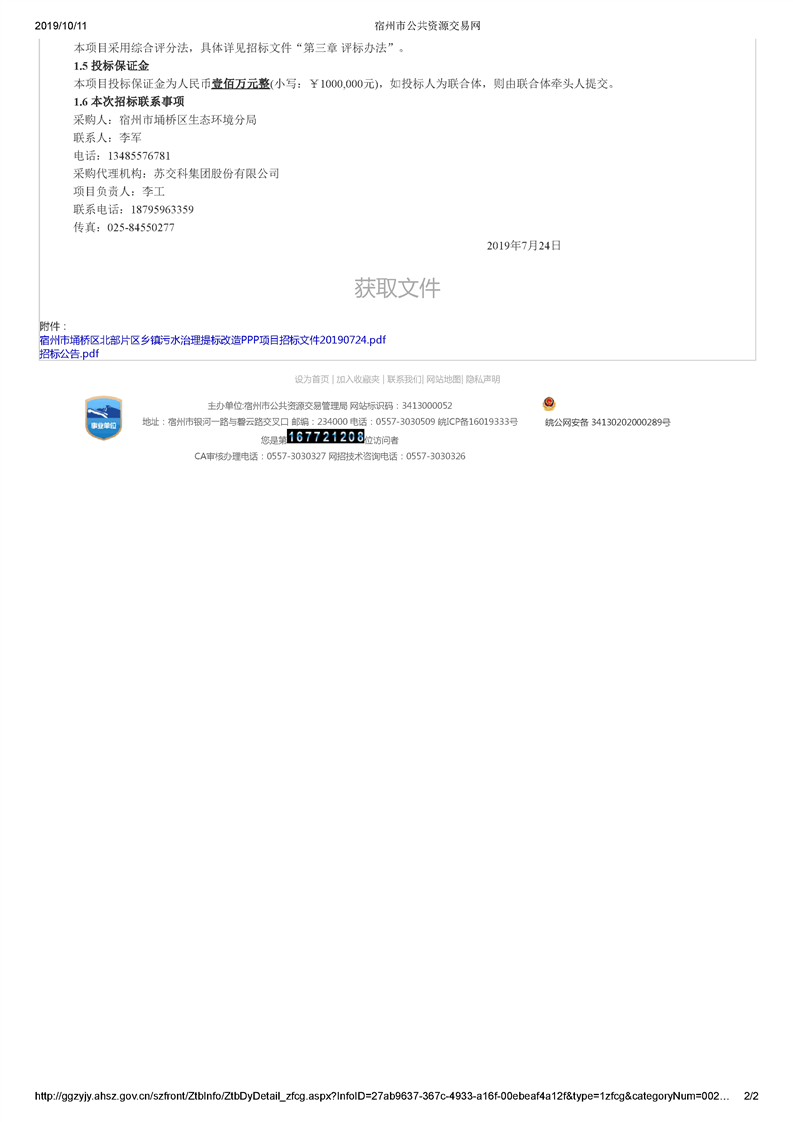 宿州市埇桥区北部片区乡镇污水治理提标改造PPP项目招标公告(投标邀请函)