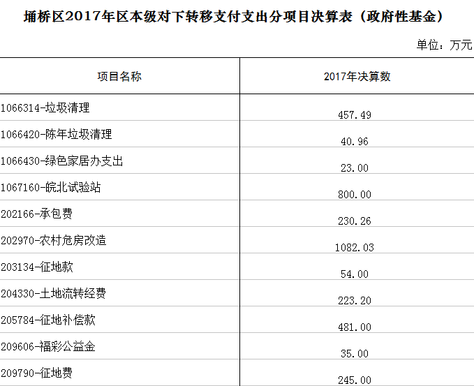 埇桥区2017年区本级对下转移支付支出分项目决算表(政府性基金)