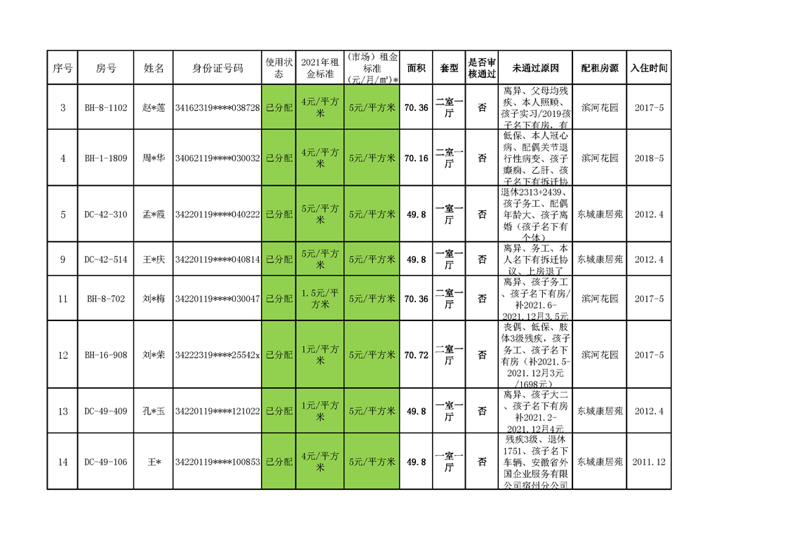 【保障性住房监管】2022年埇桥区公共租赁住房配租人员抽查情况及处理结果