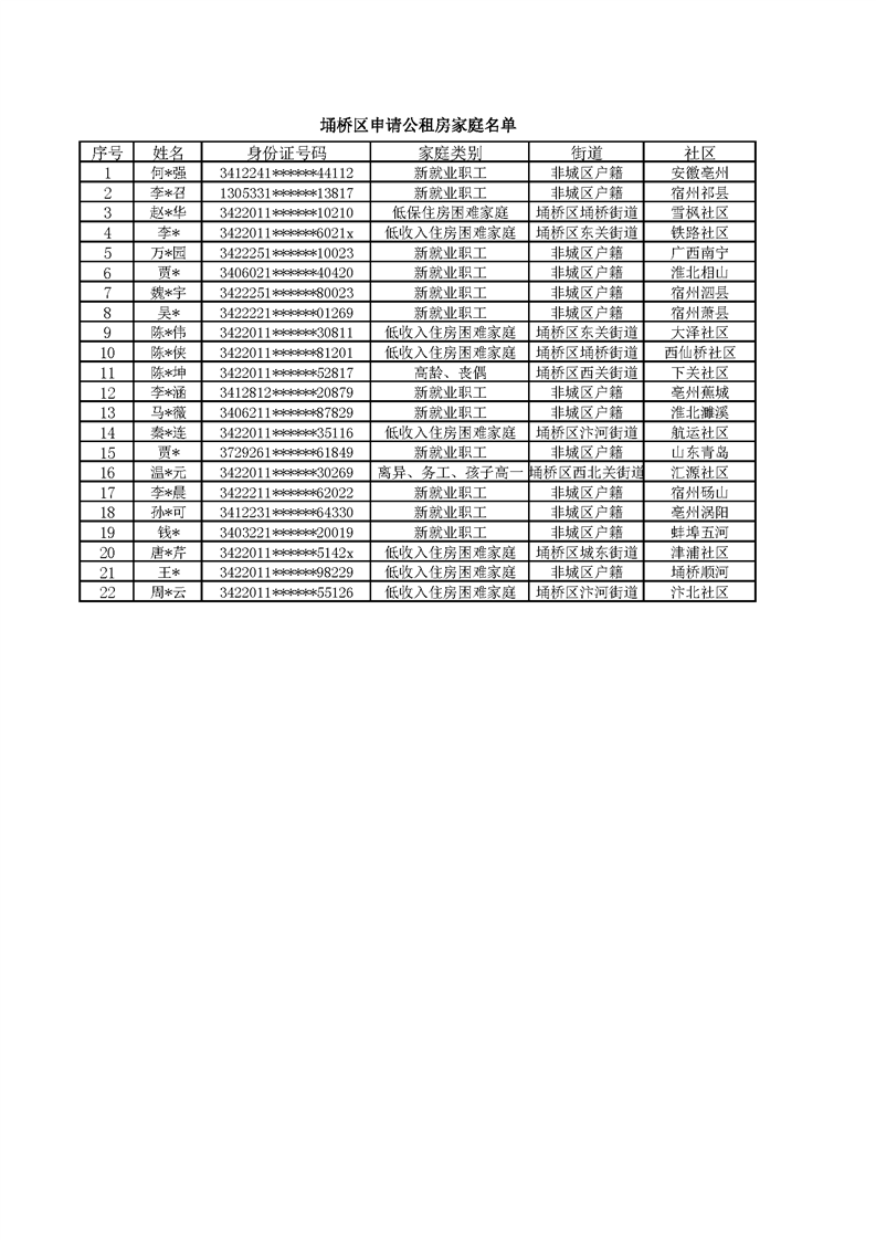 【保障性住房分配】宿州市埇桥区2022年第三季度公租房配租名单