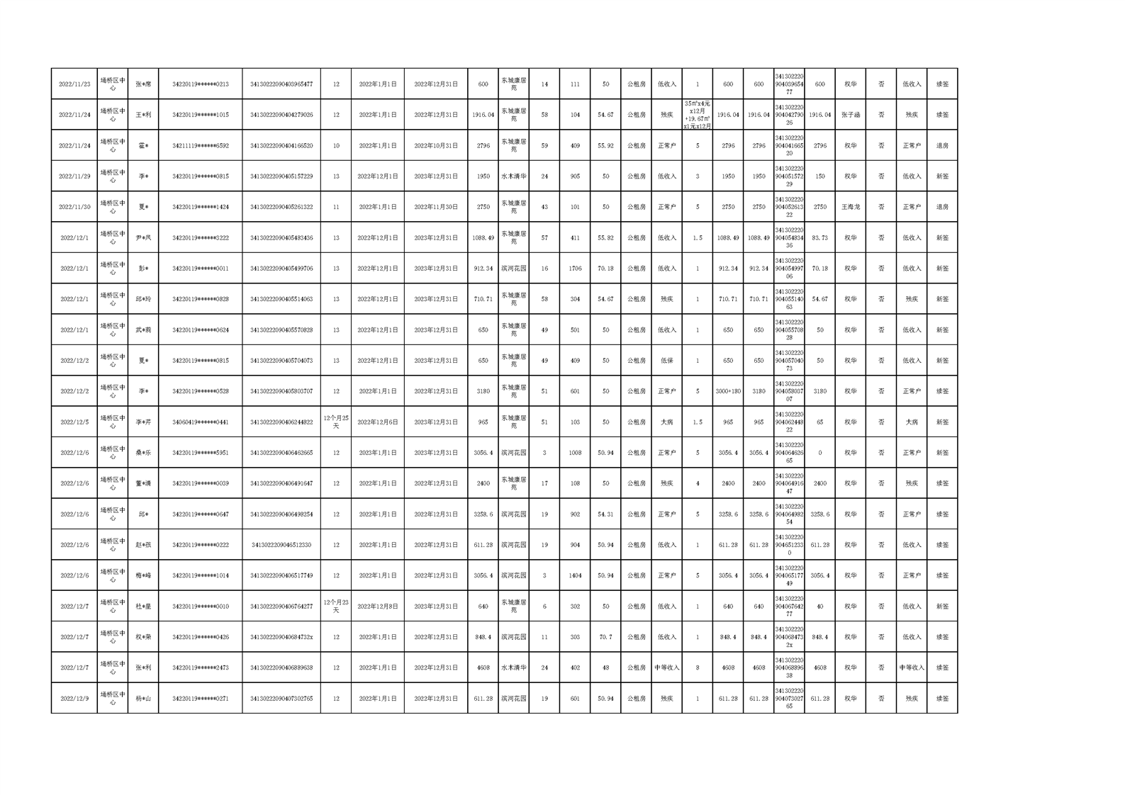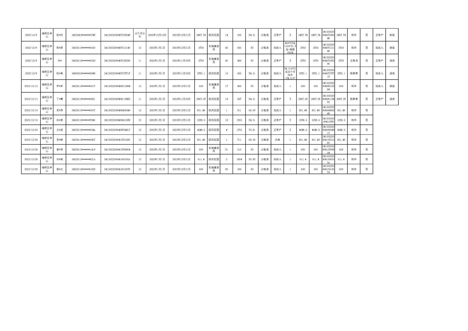 【租金收取】埇桥区2022年四季度保障性住房租金收取信息