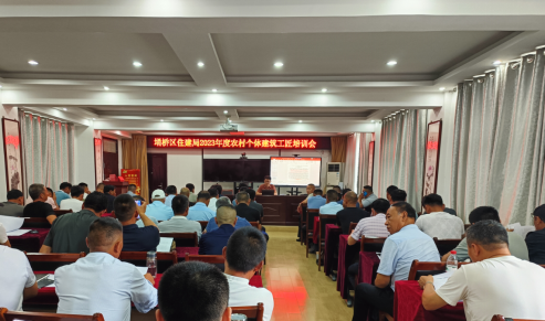 为提高我区村镇个体工匠的建筑施工技术水平和业务素质,保证农房建设工程质量,助力乡村人才振兴建设,巩固拓展脱贫攻坚成果同乡村振兴有效衔接,推动农村危房改造工作顺利开展。区住建局制定了2023 年农村个体建筑工匠培训工作计划,进行技术培训,全区 24 个镇、北杨寨行管区建设所长和辖区个体工匠、区住建局分管领导及业务股室相关人员参加培训。现就培训情况总结如下:
