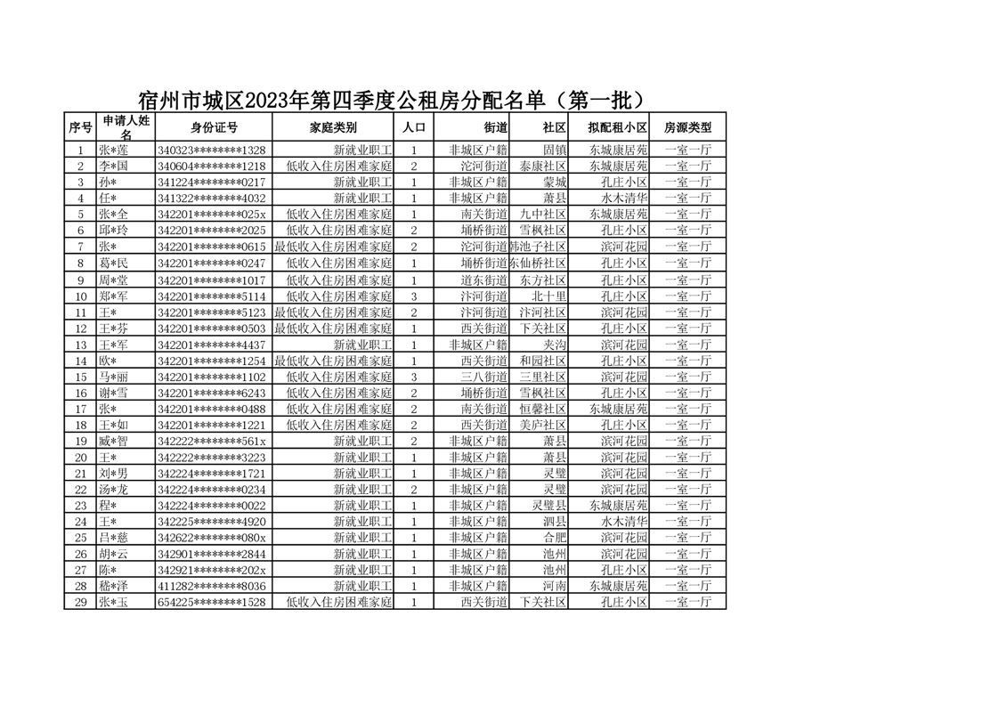 【保障性住房分配】宿州市城区2023年第四季度公租房分配名单(第一批)