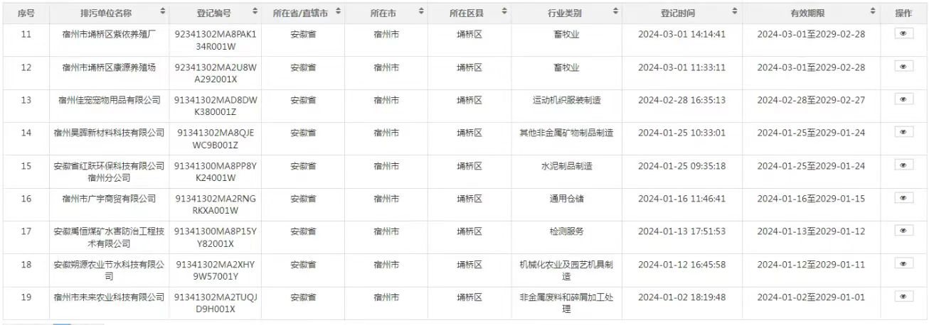 2024年埇桥区生态环境分局第一季度排污名单