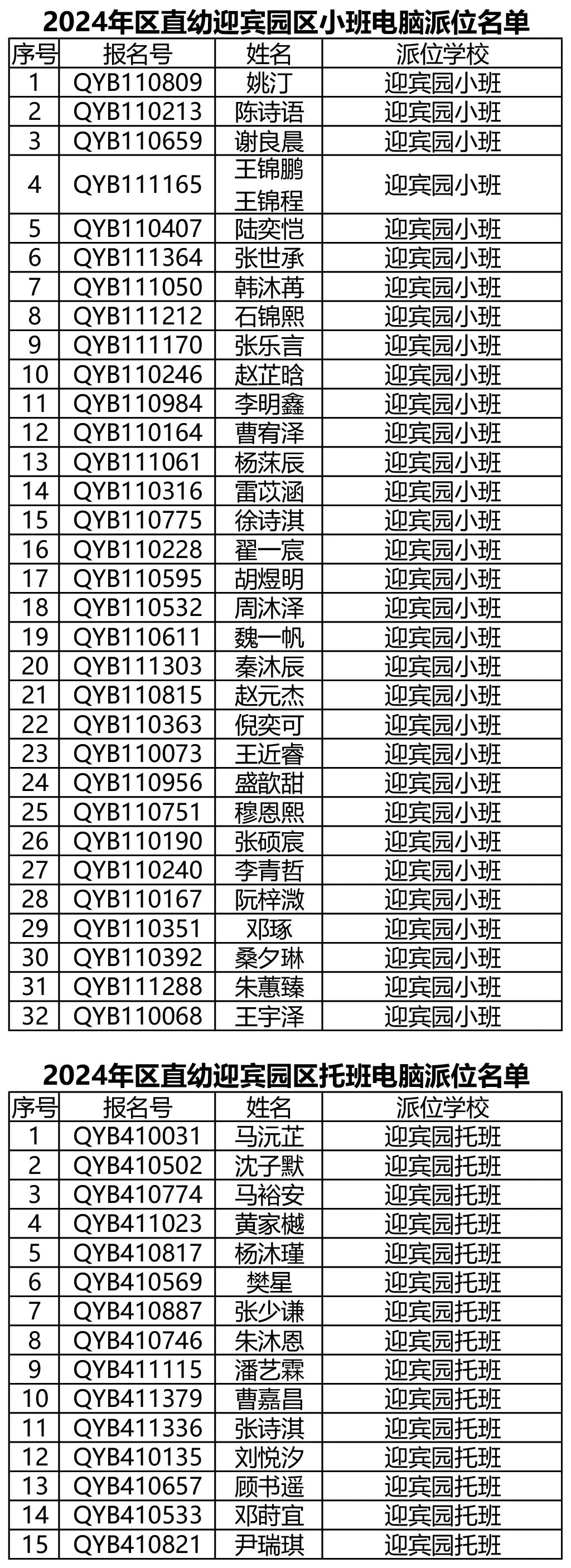 2024年埇桥区直属幼儿园电脑派位结果公布