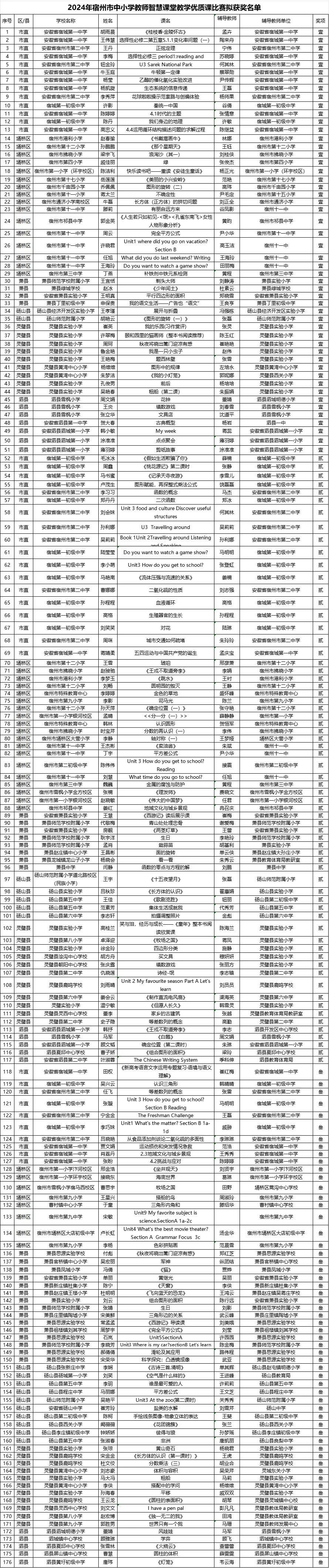 2024年宿州市中小学教师智慧课堂教学优质课比赛拟获奖名单公示