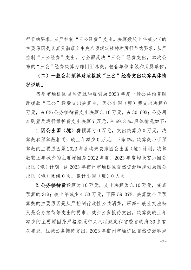 宿州市埇桥区自然资源和规划局2023年度部门一般公共预算财政拨款“三公”经费支出决算公开