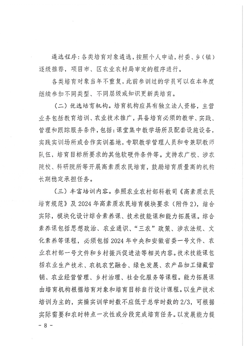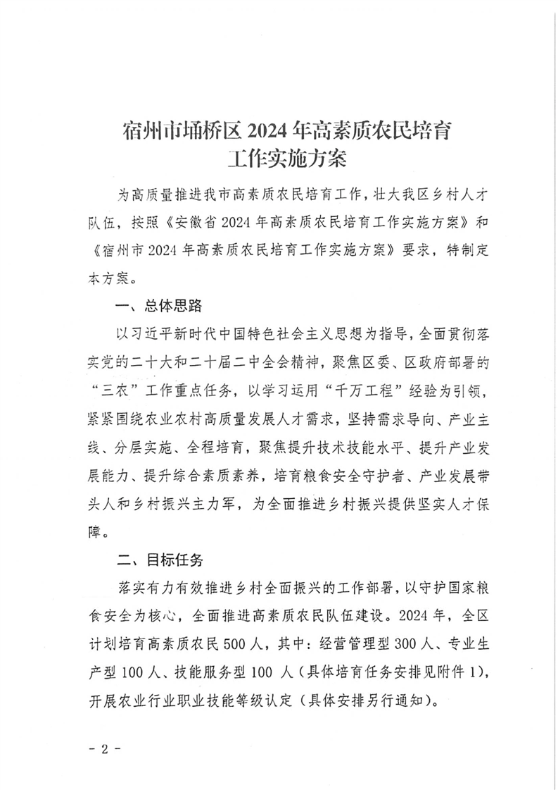 埇桥区2024年高素质农民培育工作实施方案