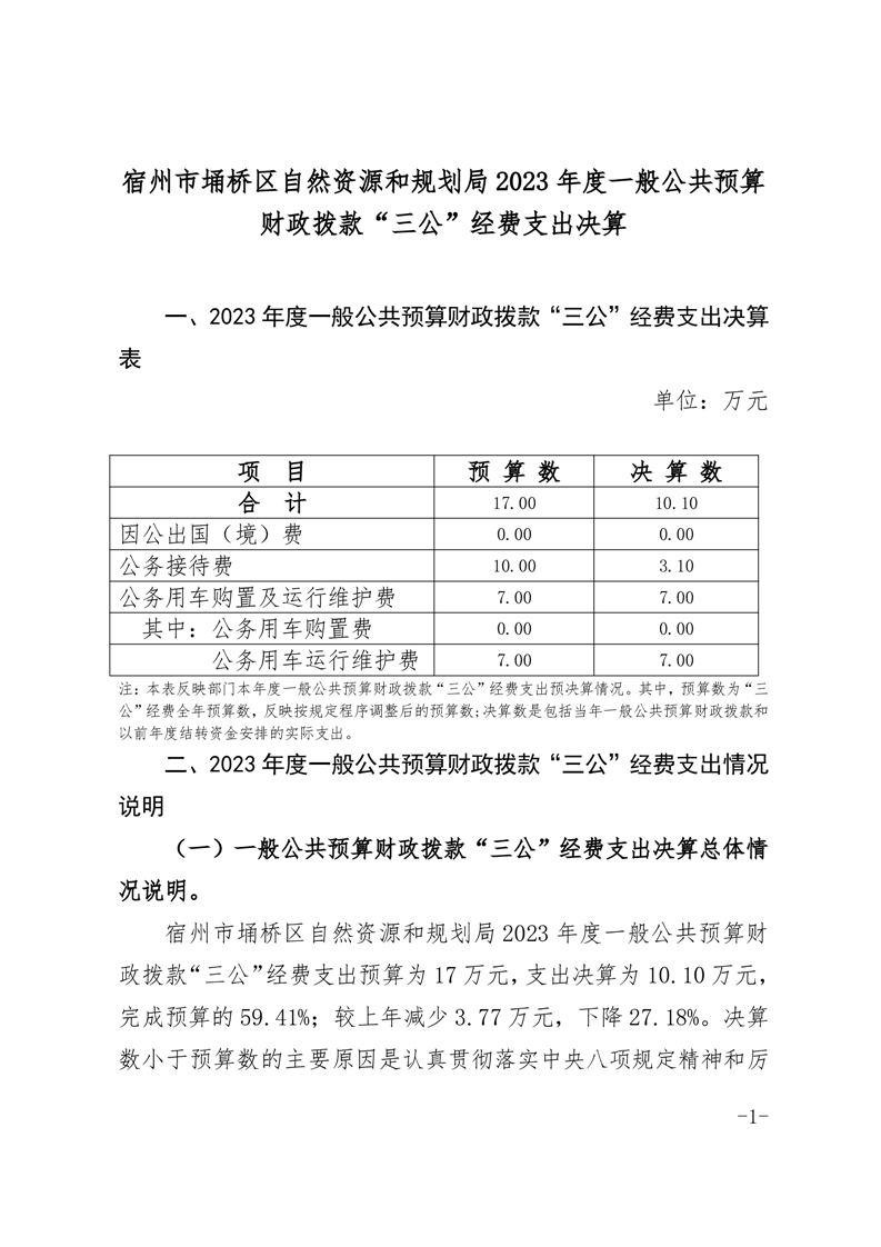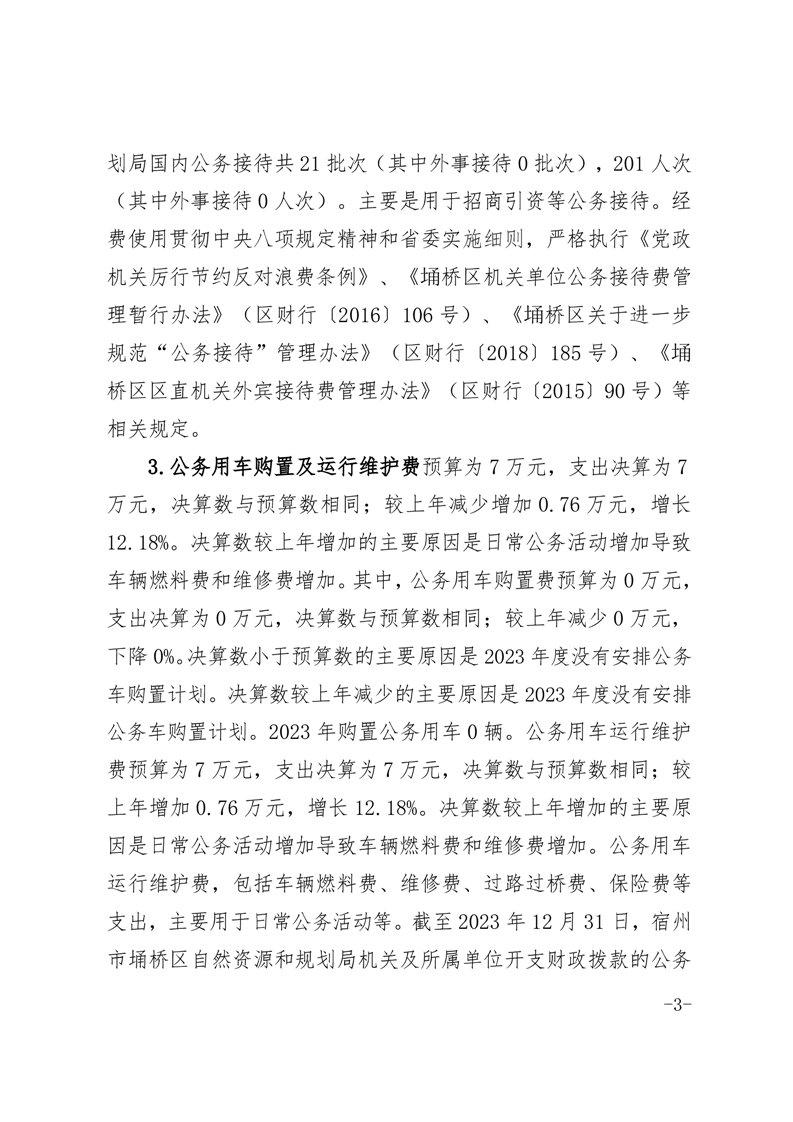 宿州市埇桥区自然资源和规划局2023年度部门一般公共预算财政拨款“三公”经费支出决算公开