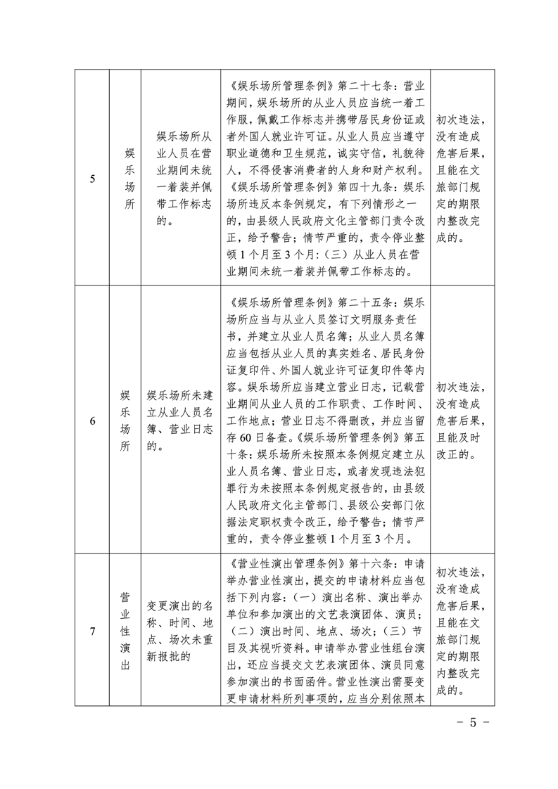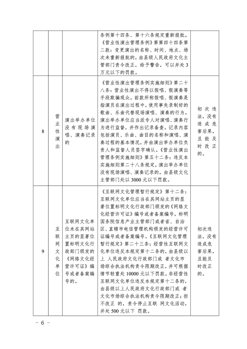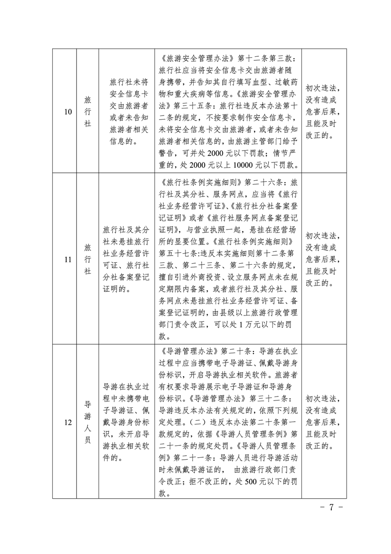 安徽省文化和旅游市场轻微违法违规经营行为免罚清单
