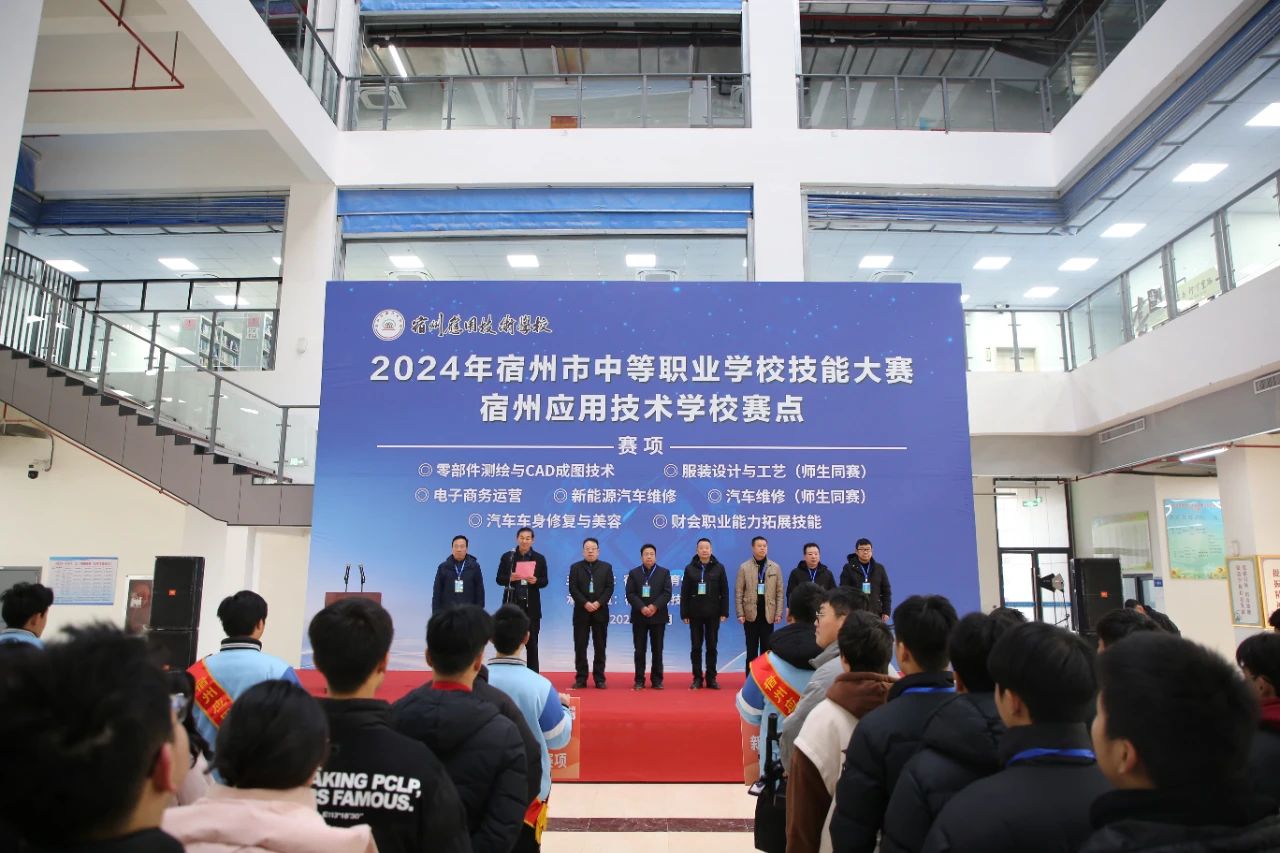 12月14日上午,宿州市中等职业学校技能大赛在宿州应用技术学校赛点举行开幕式。埇桥区委教育工委书记、区教体局局长刘运远,区委教育工委委员、区教体局副局长武小舟,区教体局职成股负责人,宿州应用技术学校党委书记陈计葱等学校相关负责人,大赛裁判员、参赛选手及领队参加开幕式。