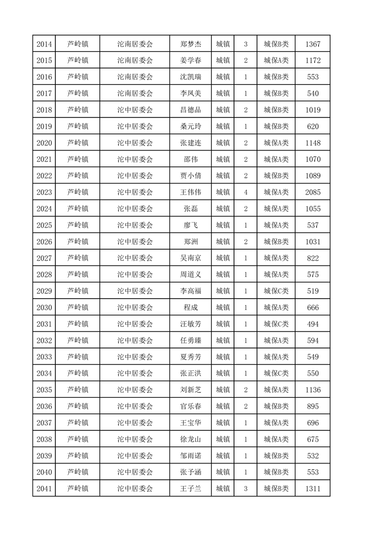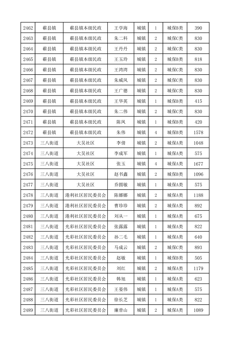 埇桥区2024年12月份城镇低保花名册