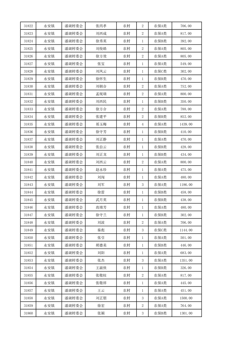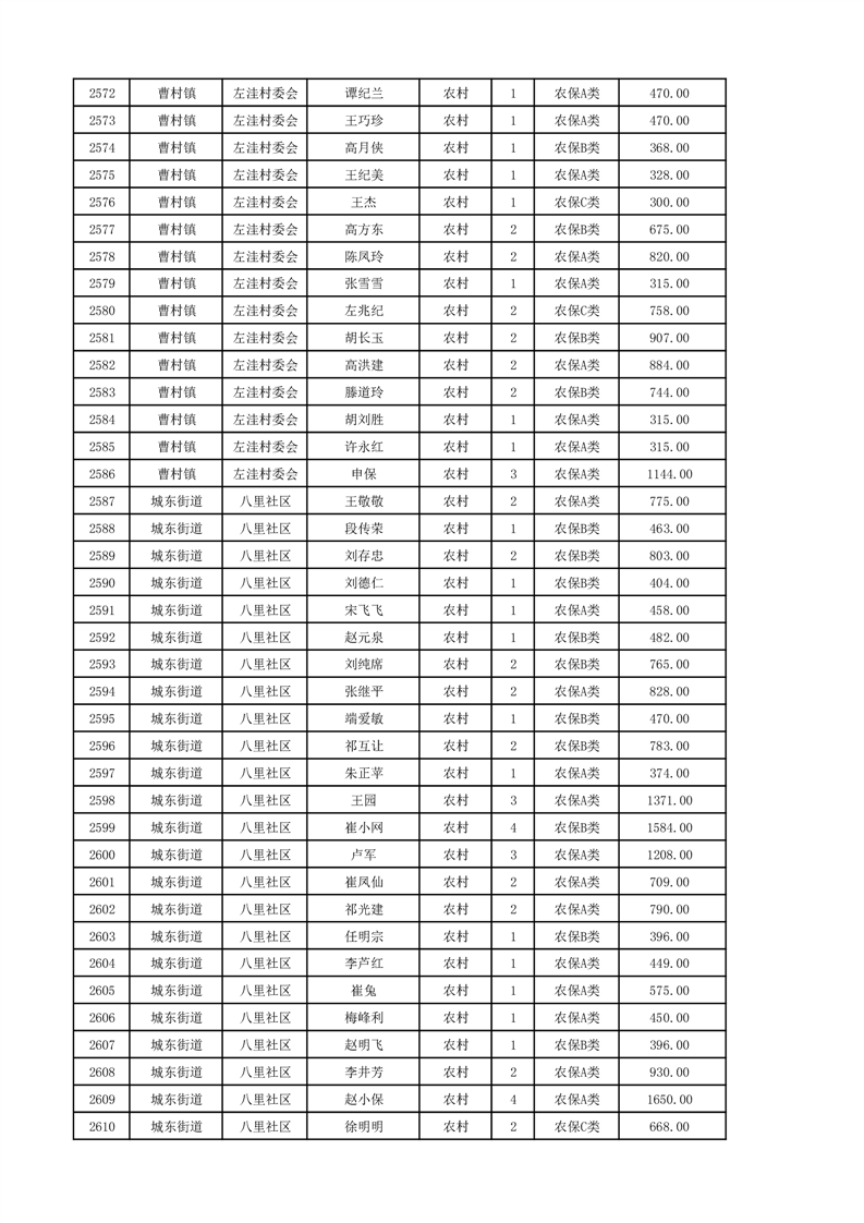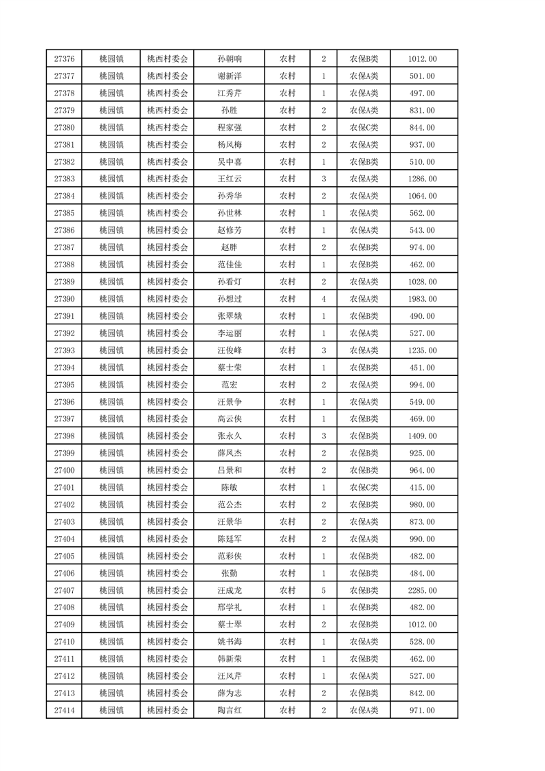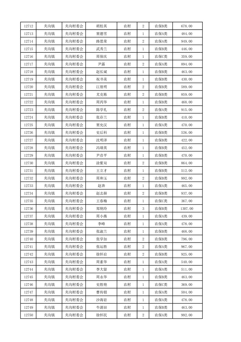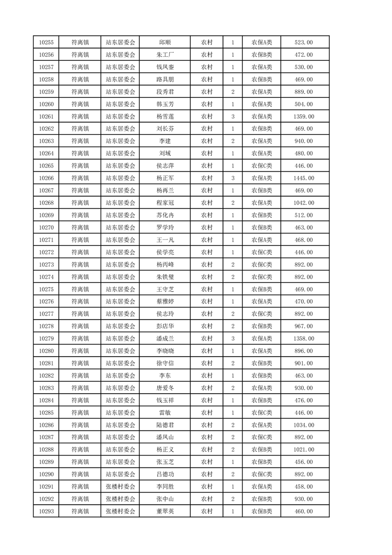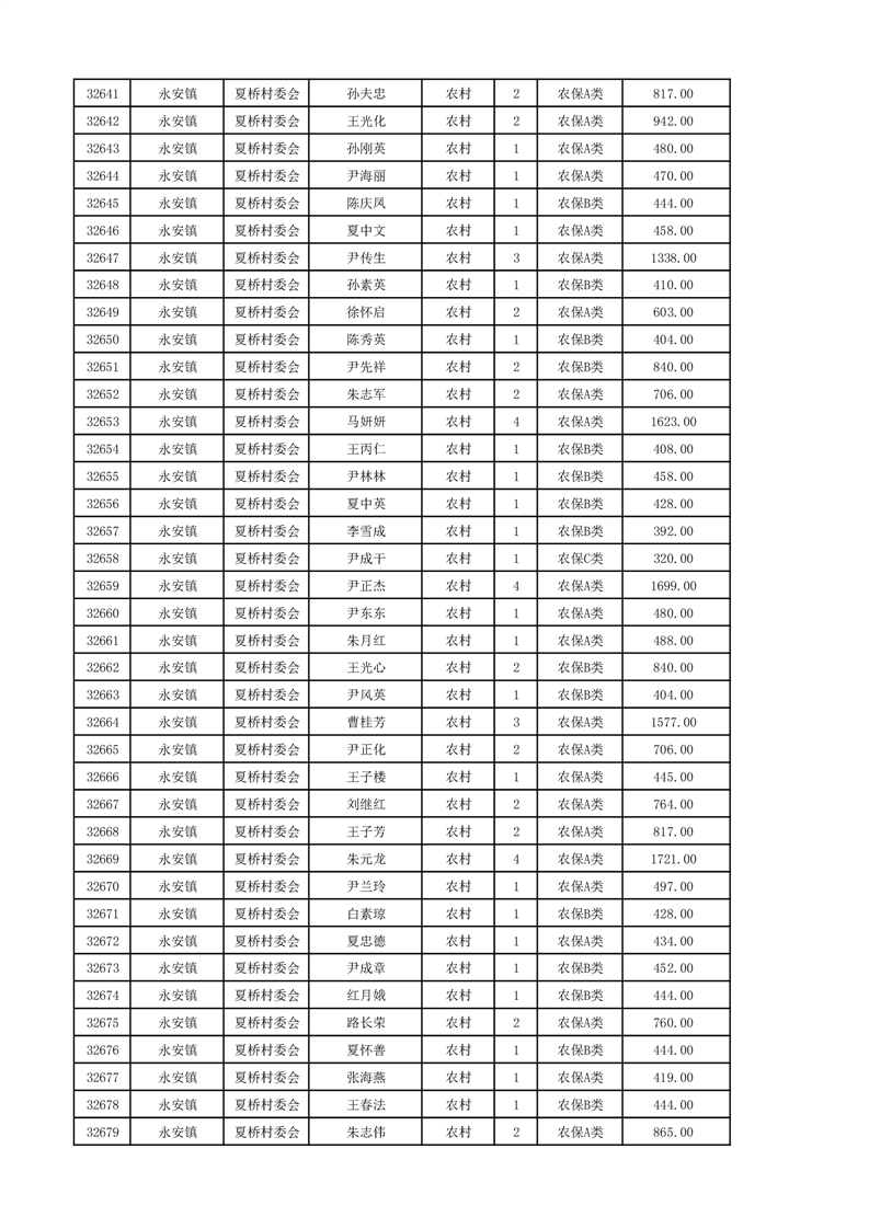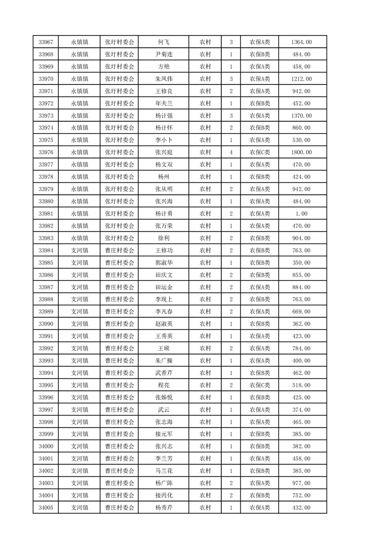 埇桥区2024年12月份农村低保花名册