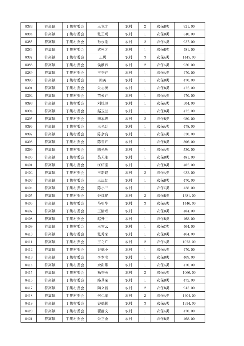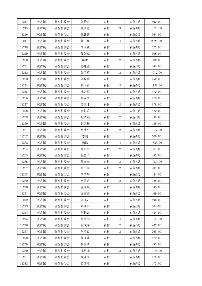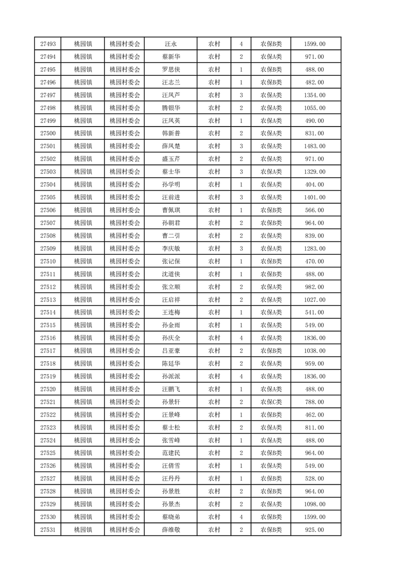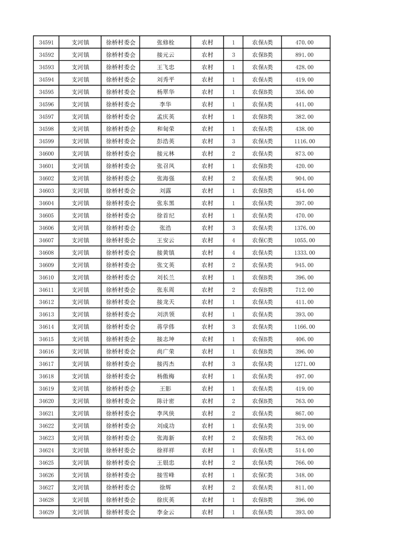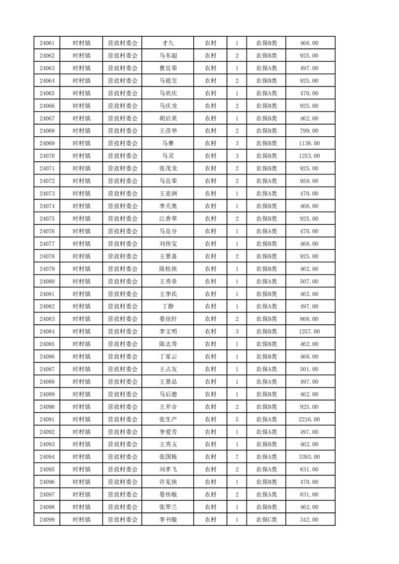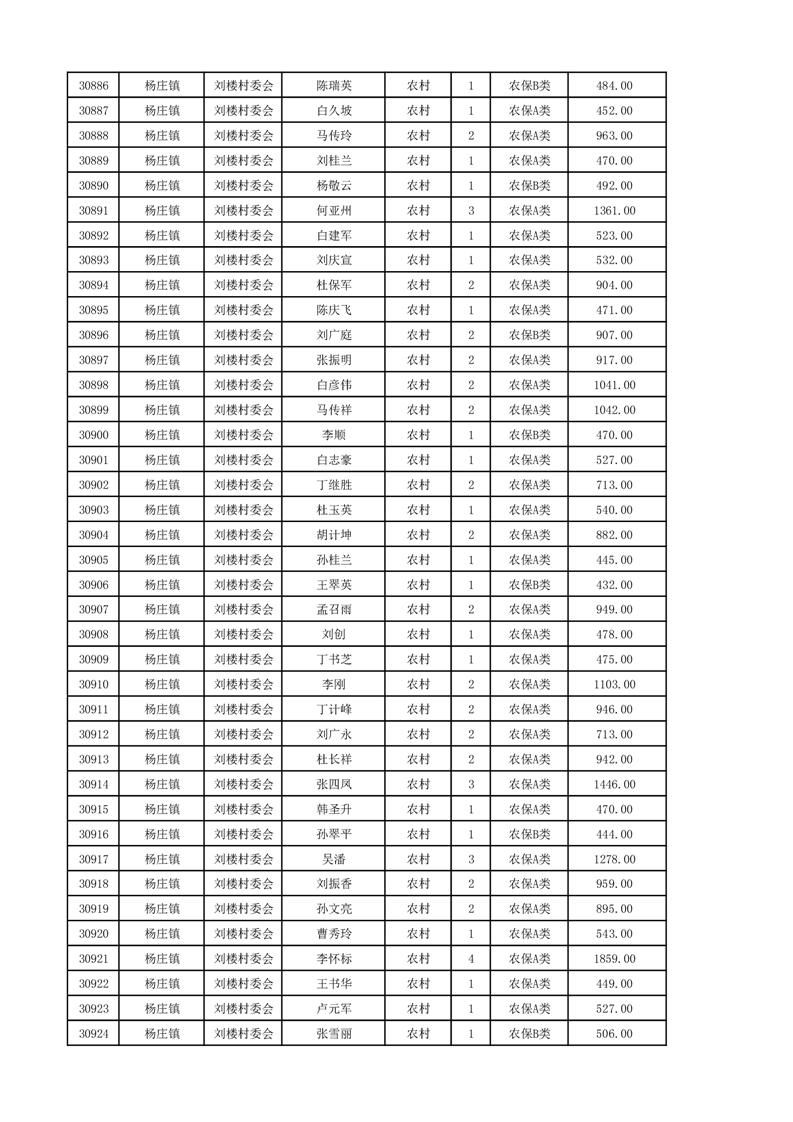 埇桥区2024年12月份农村低保花名册