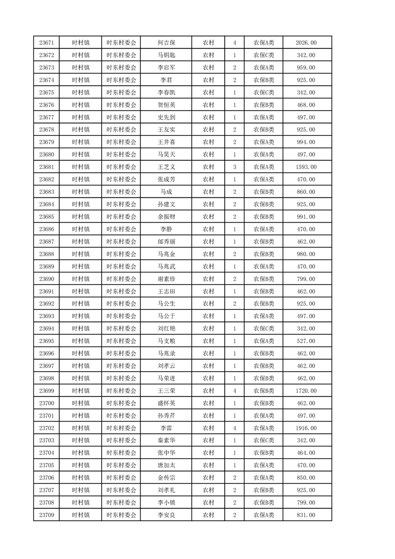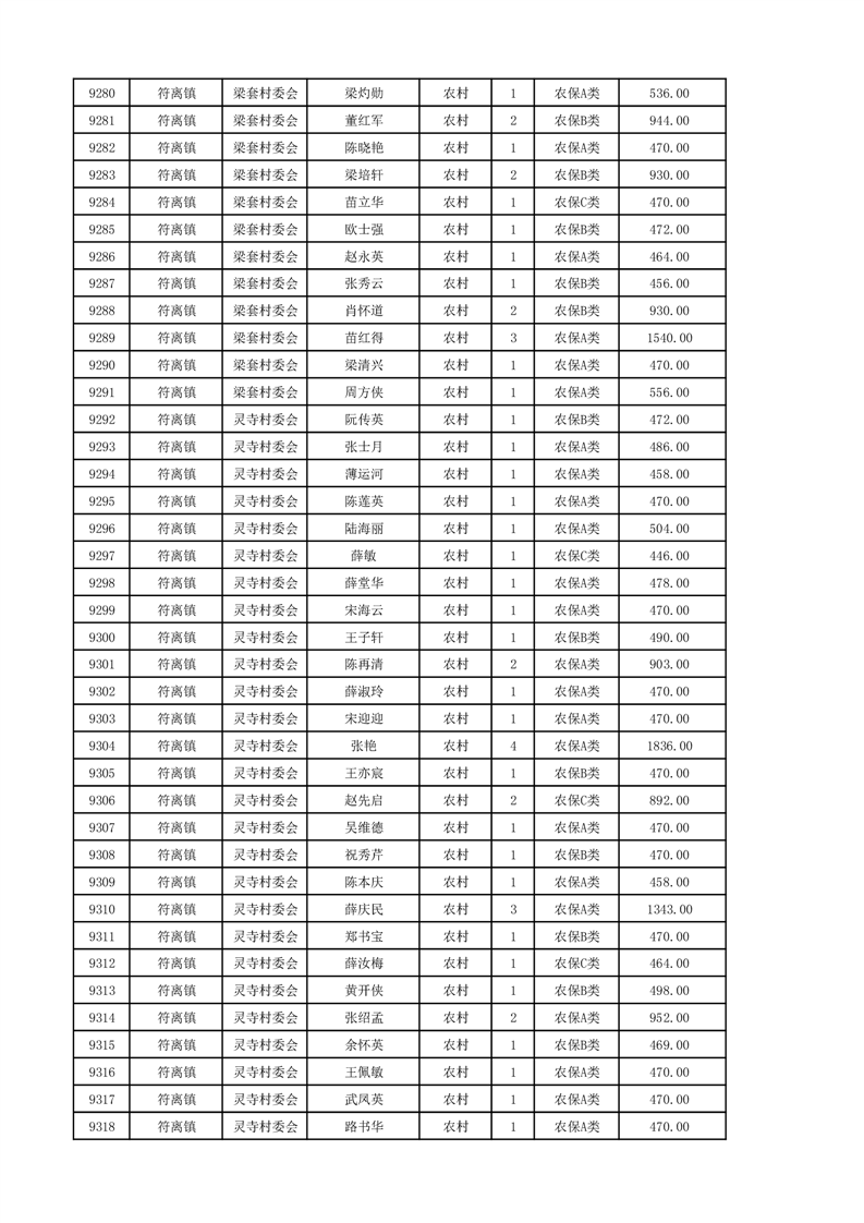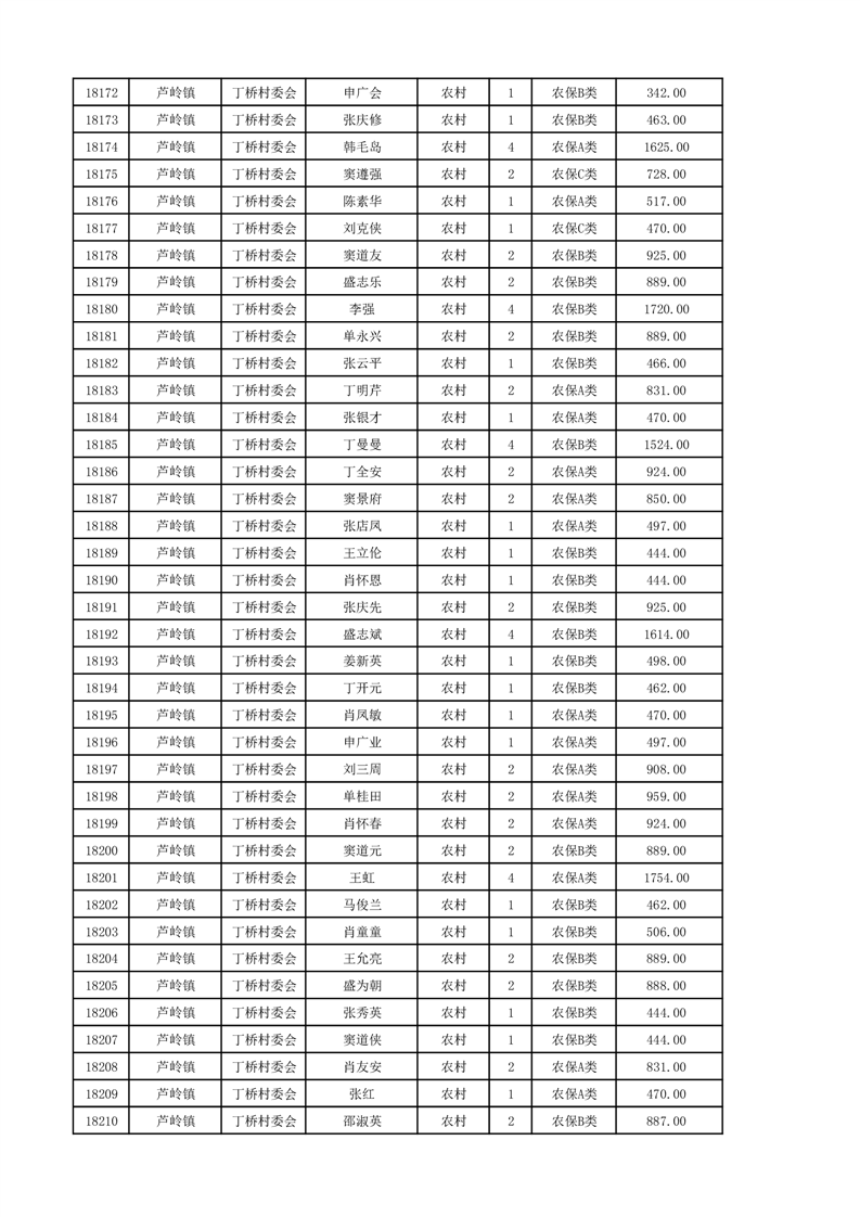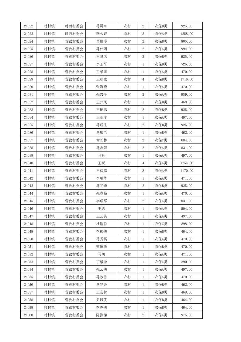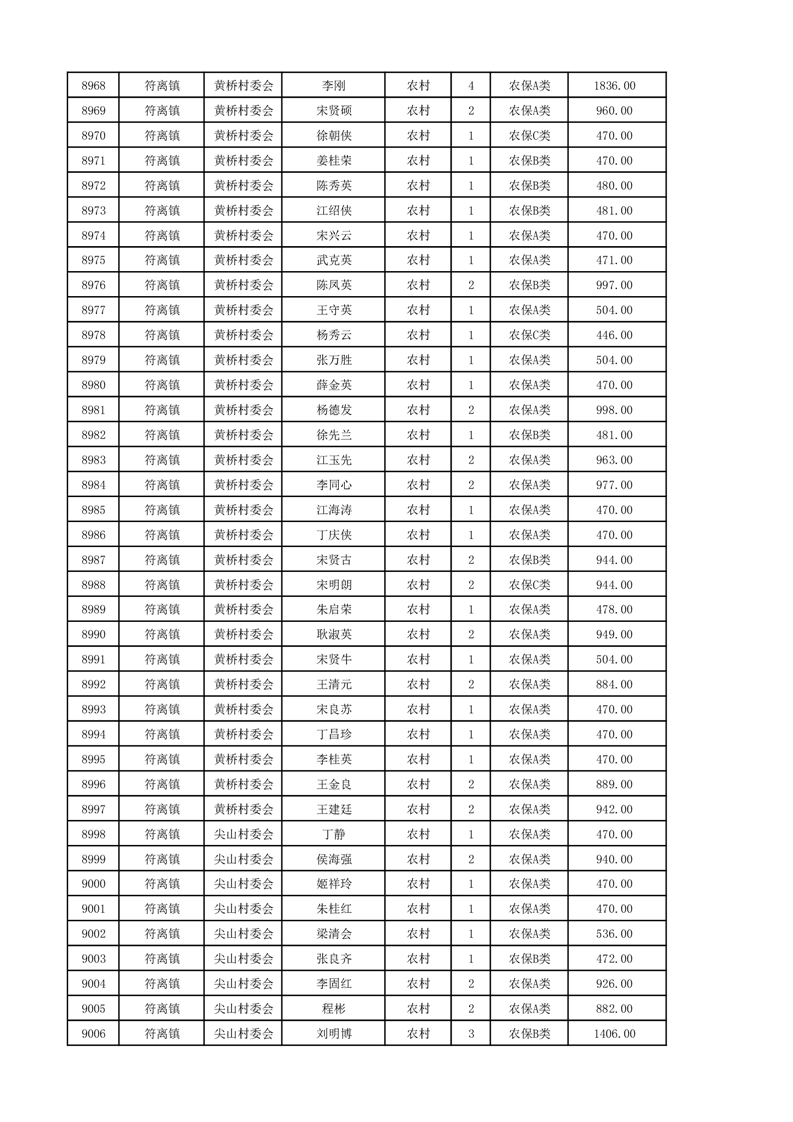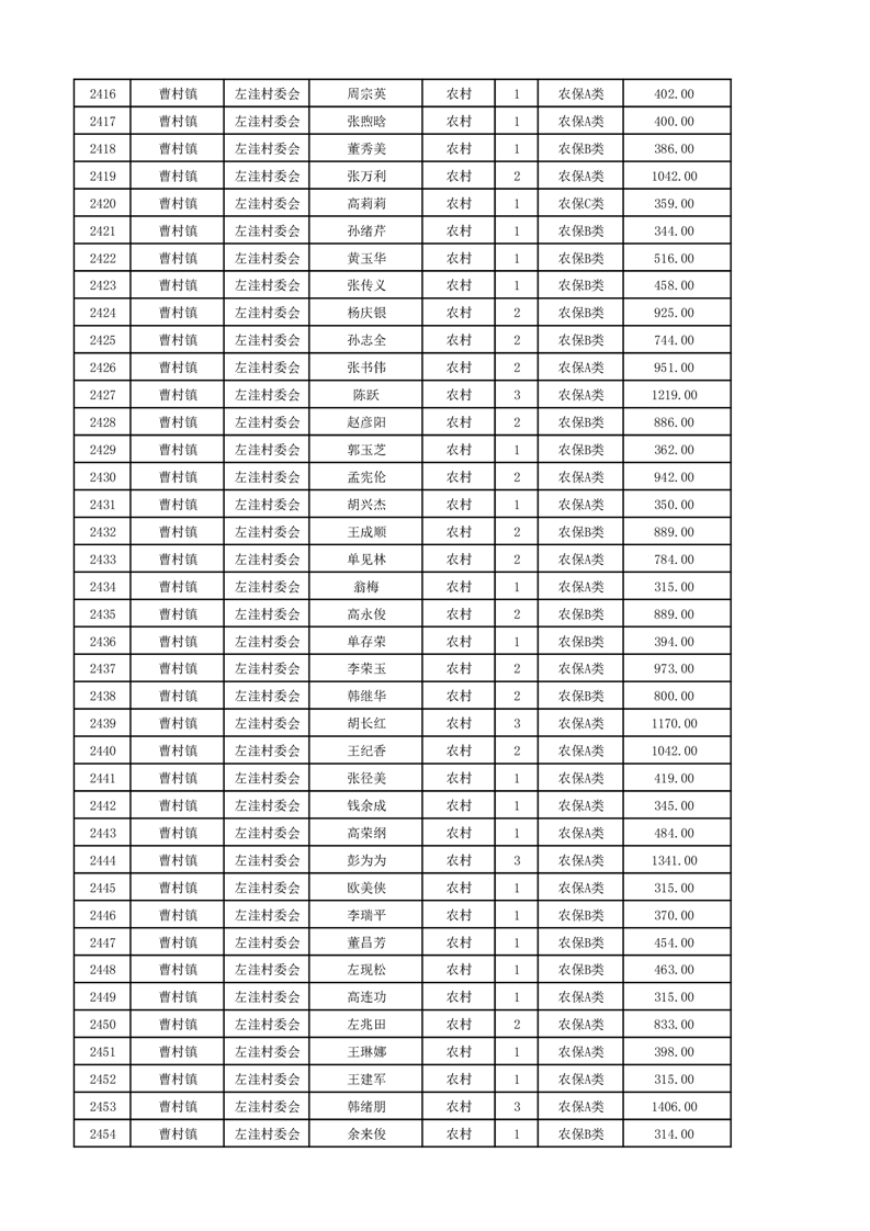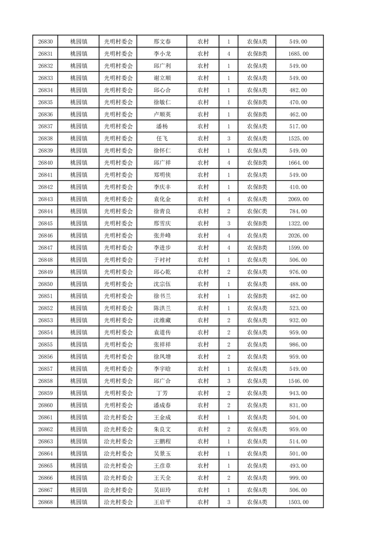 埇桥区2024年12月份农村低保花名册