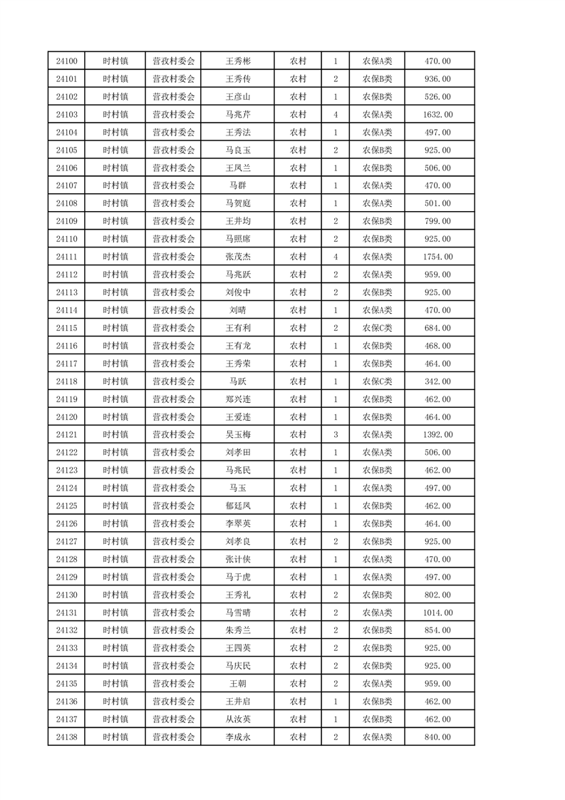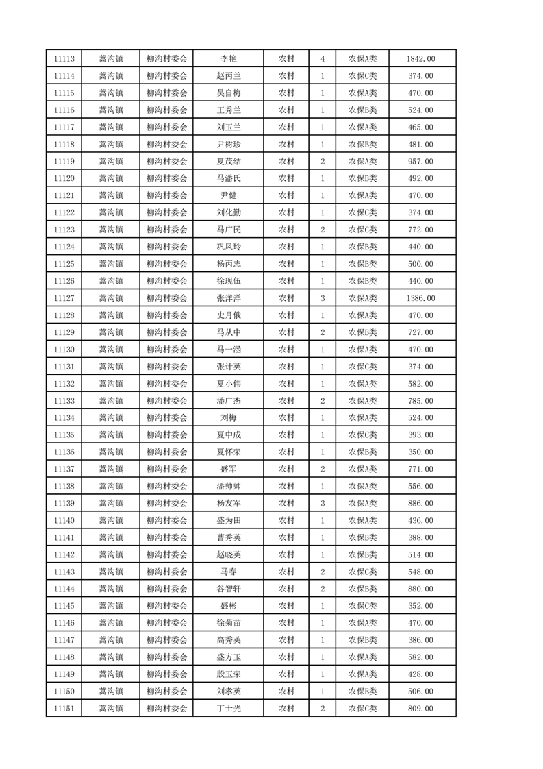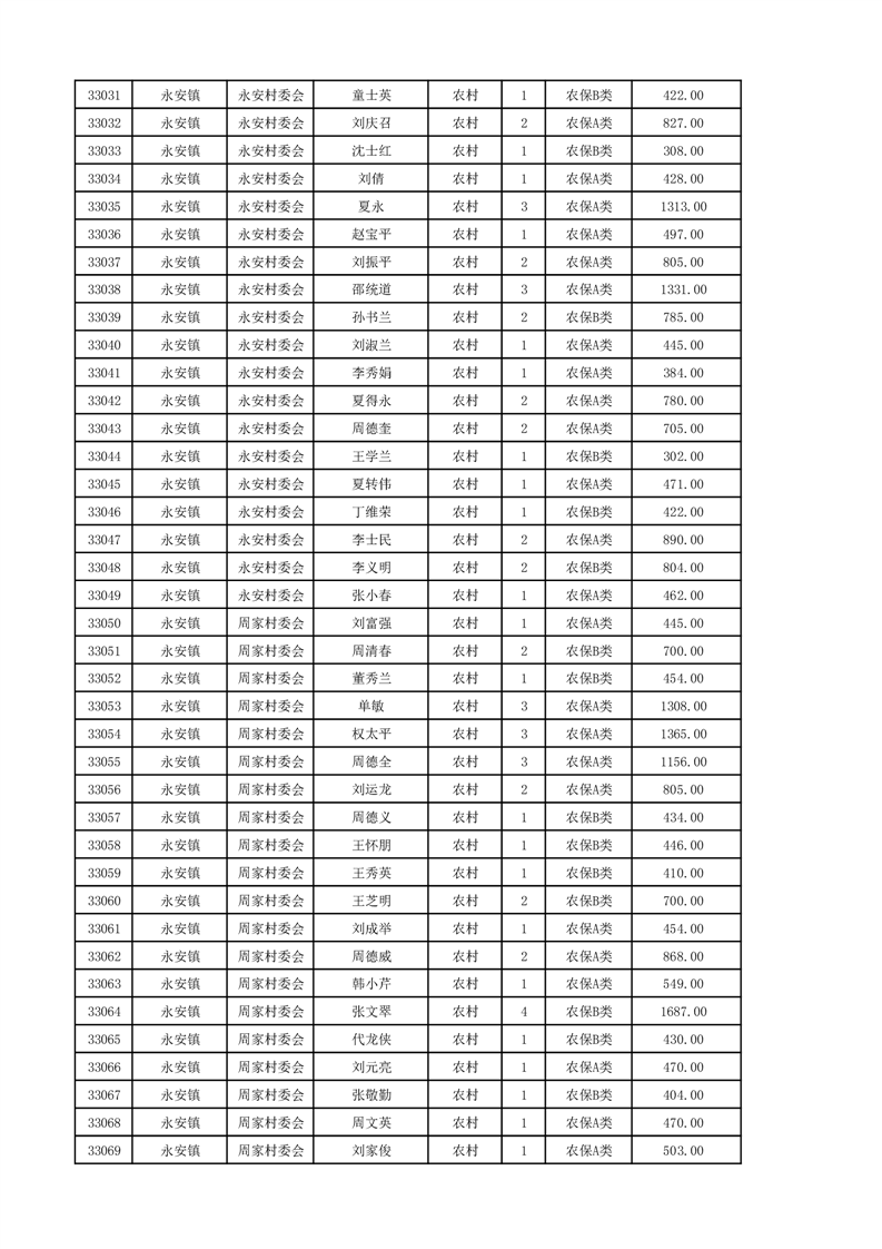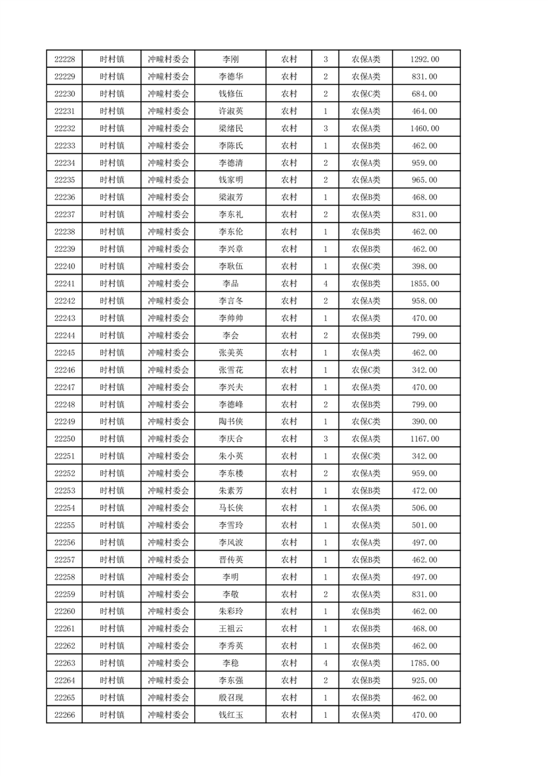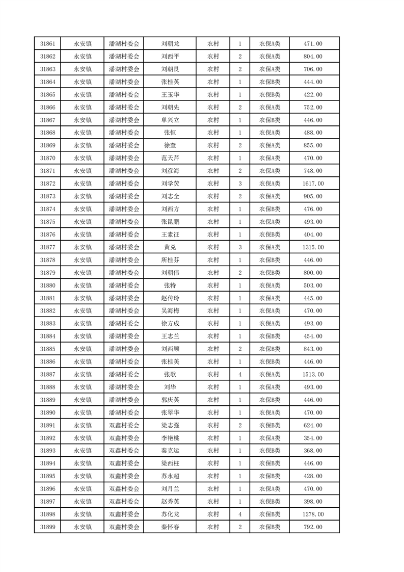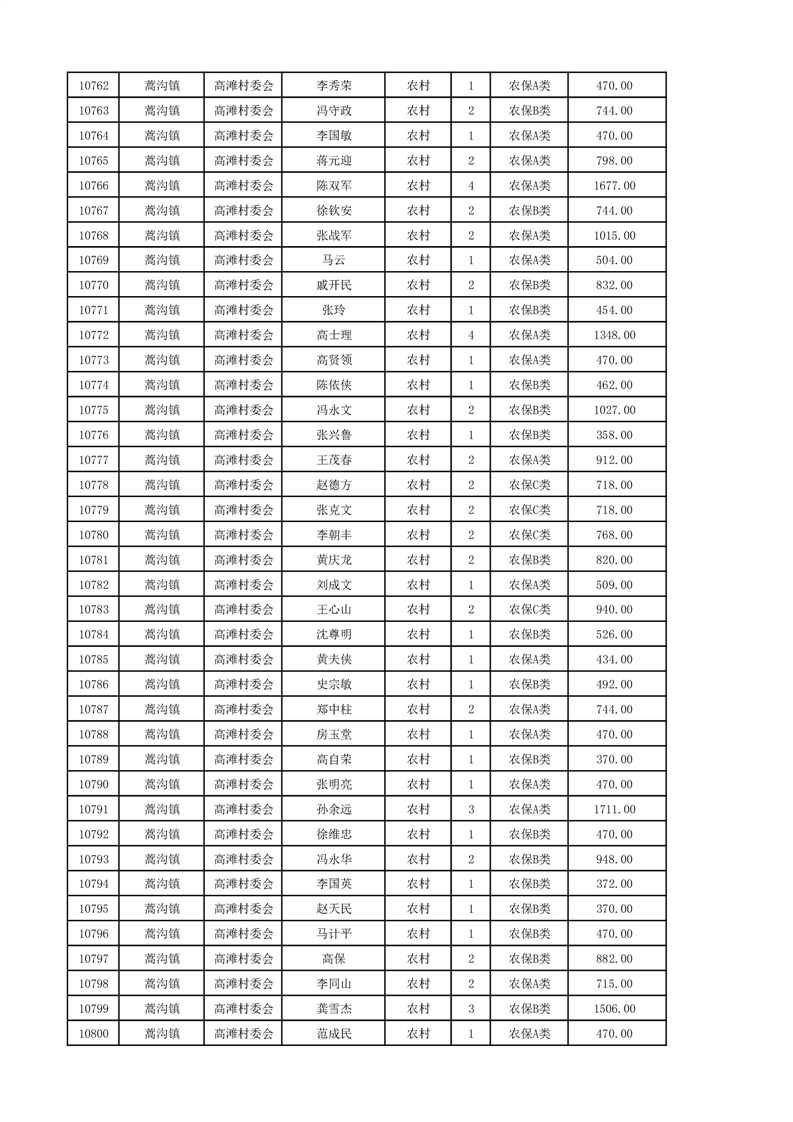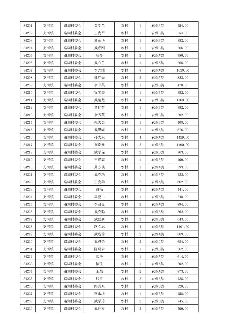 埇桥区2024年12月份农村低保花名册