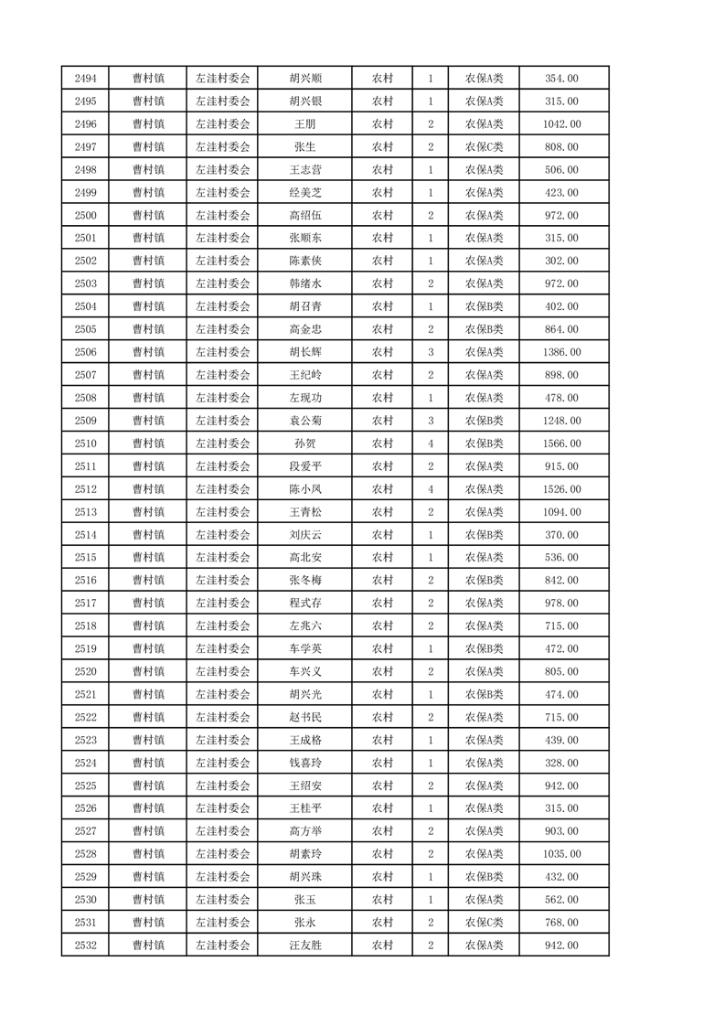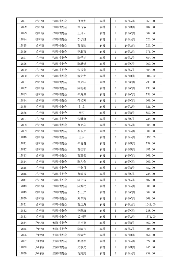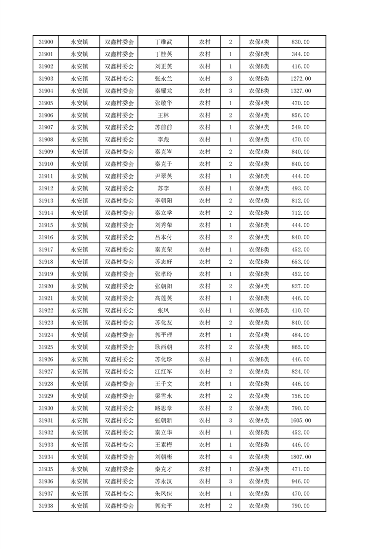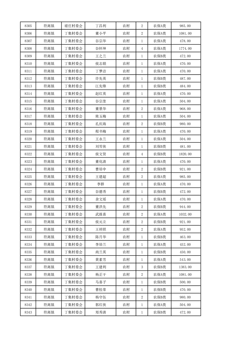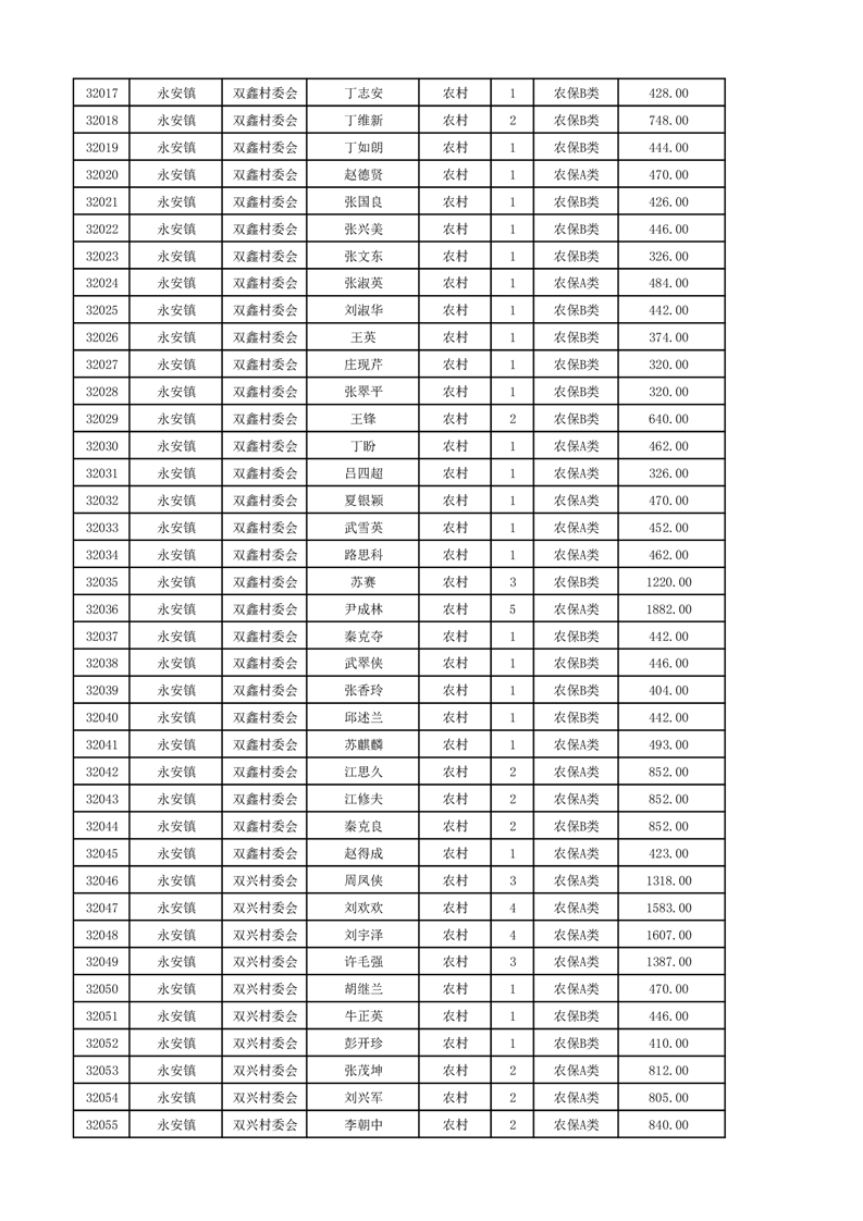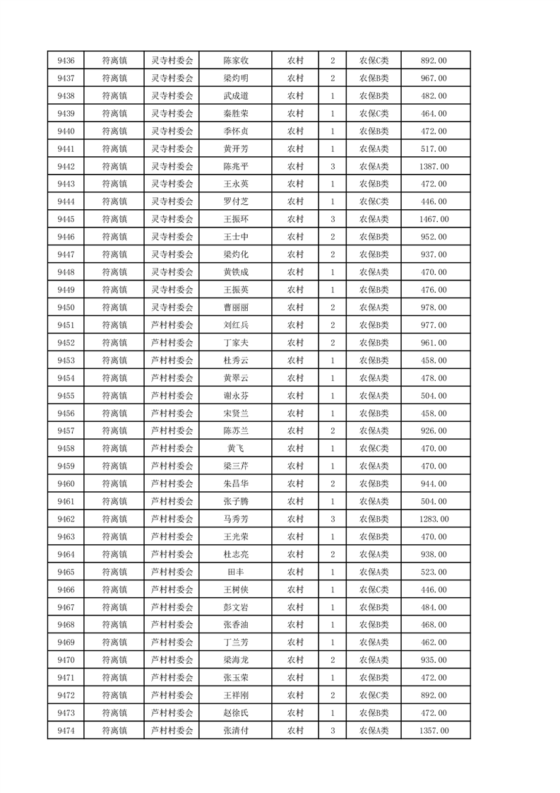 埇桥区2024年12月份农村低保花名册