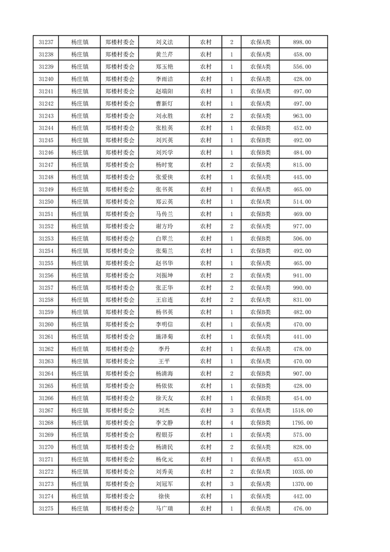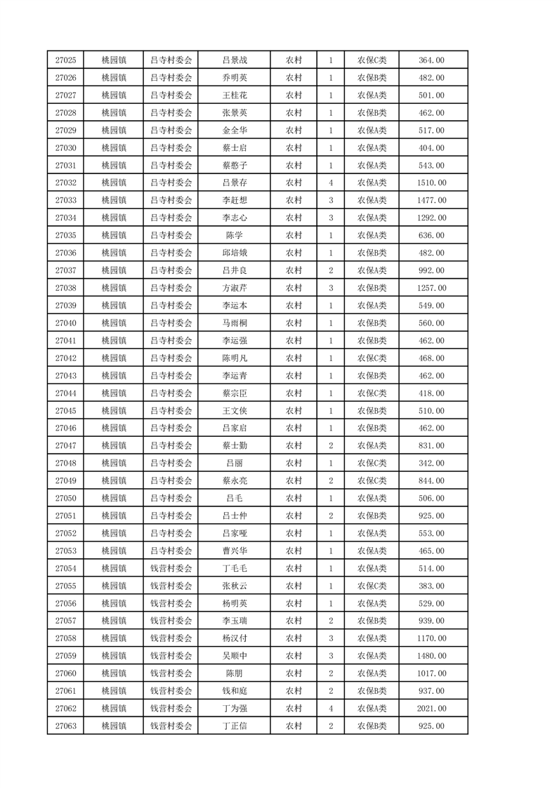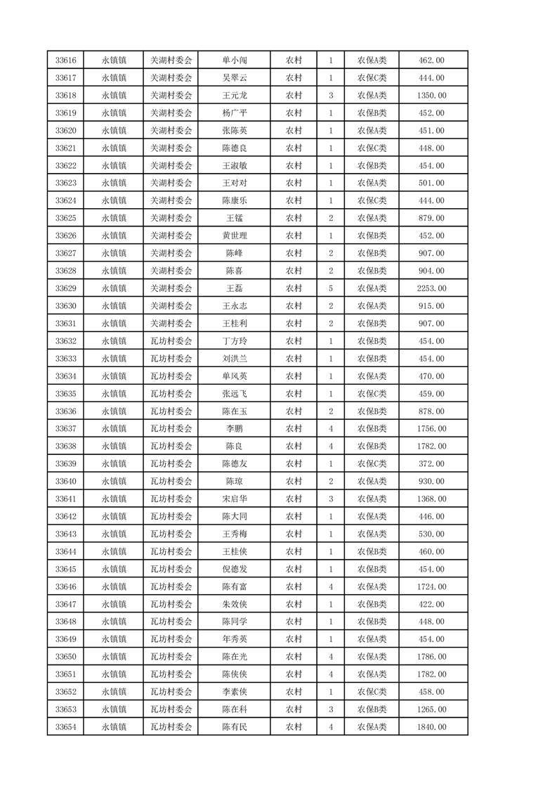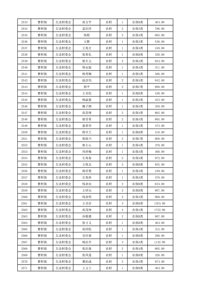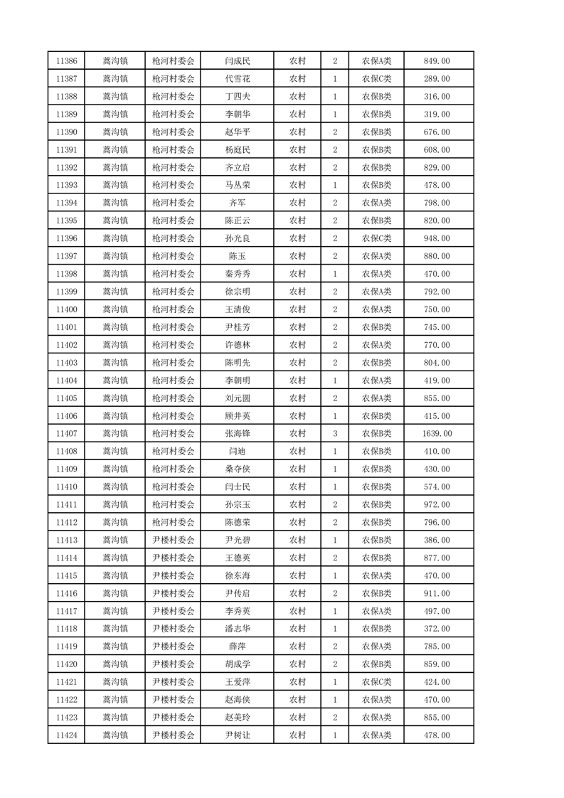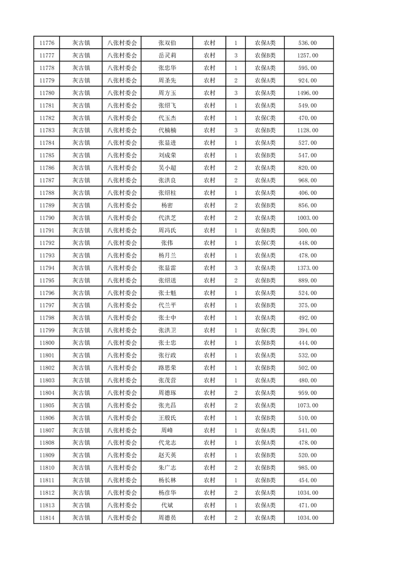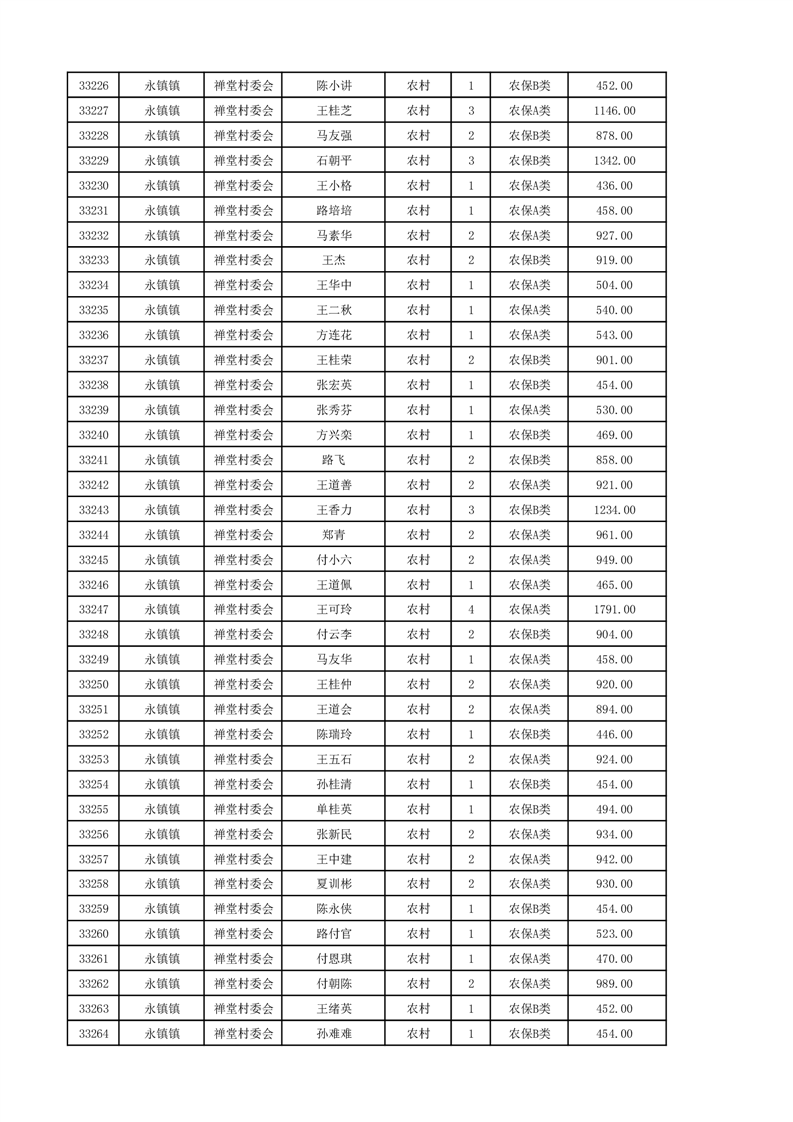 埇桥区2024年12月份农村低保花名册