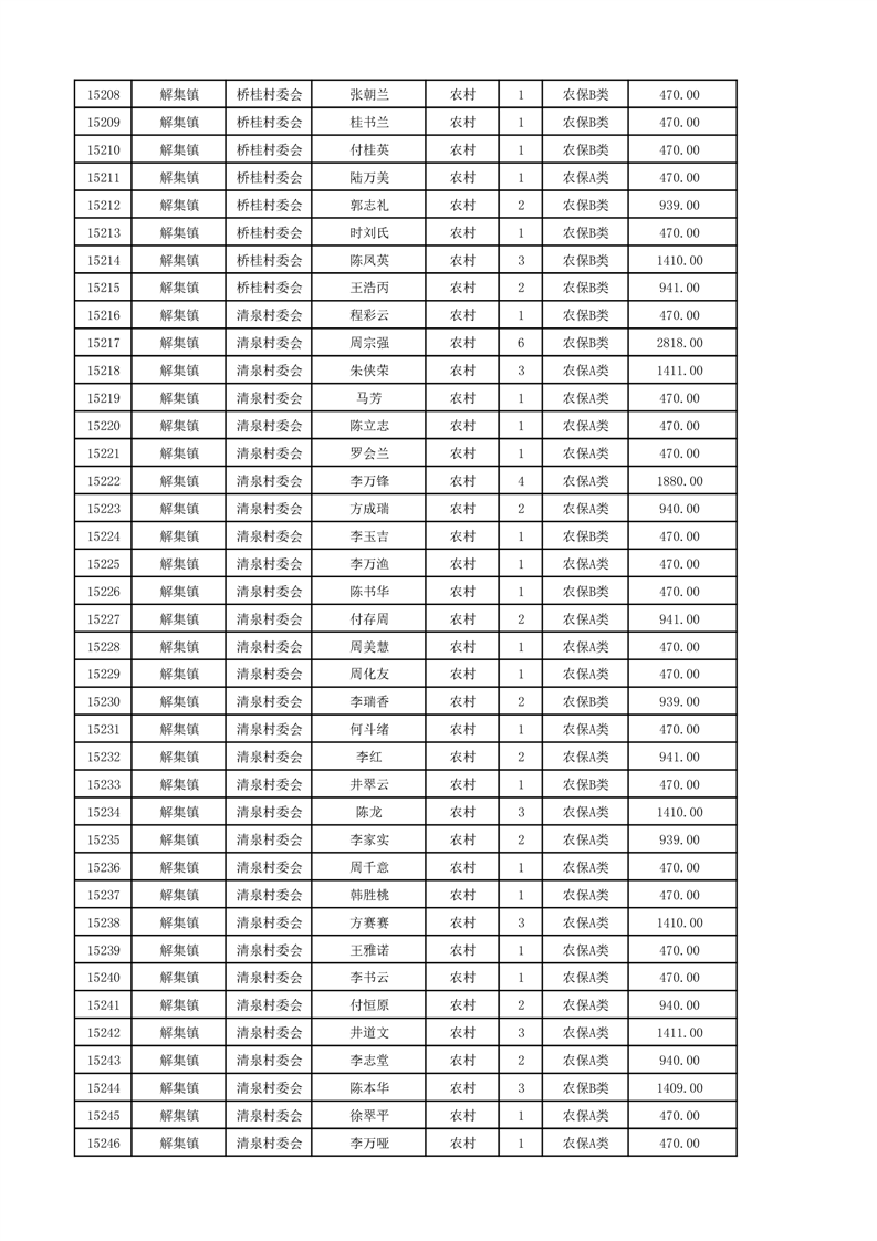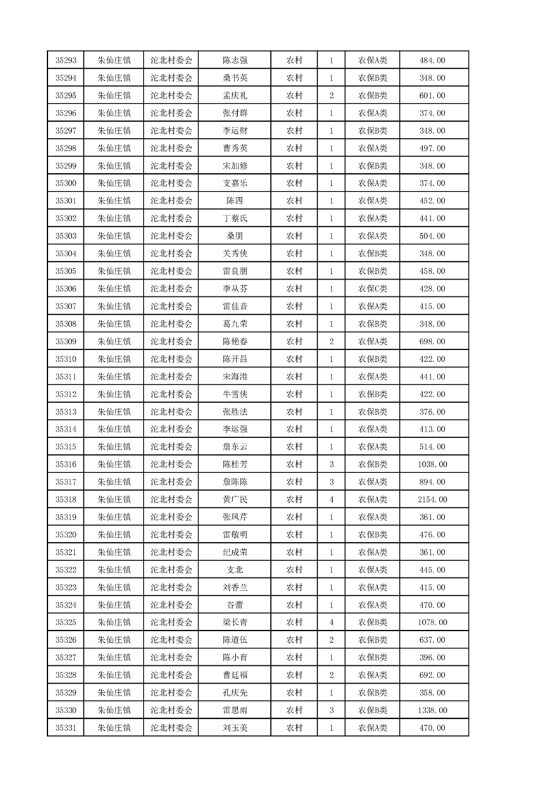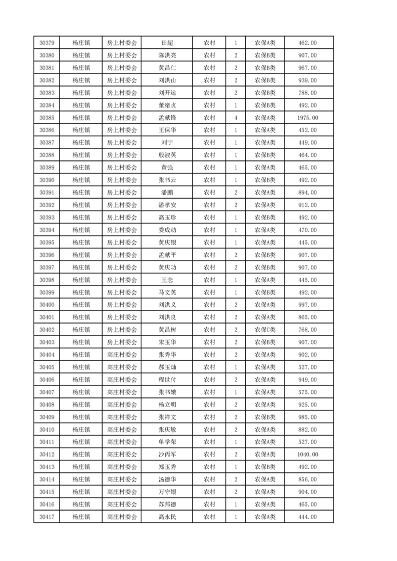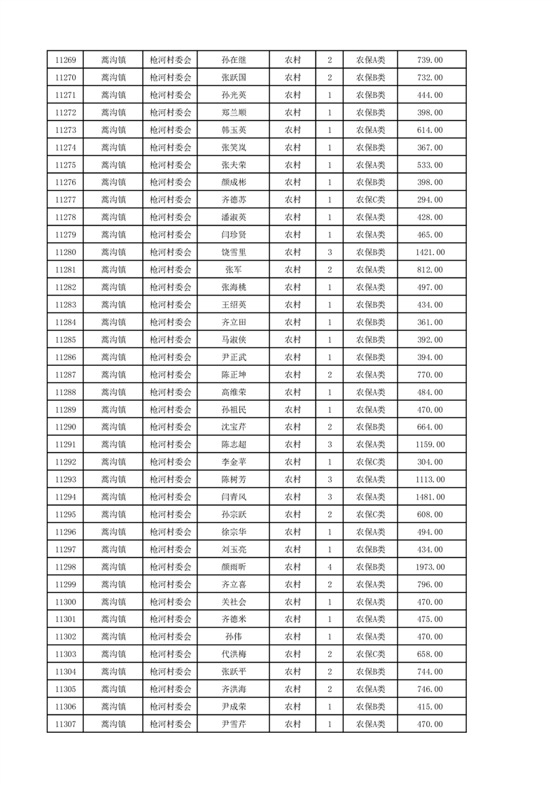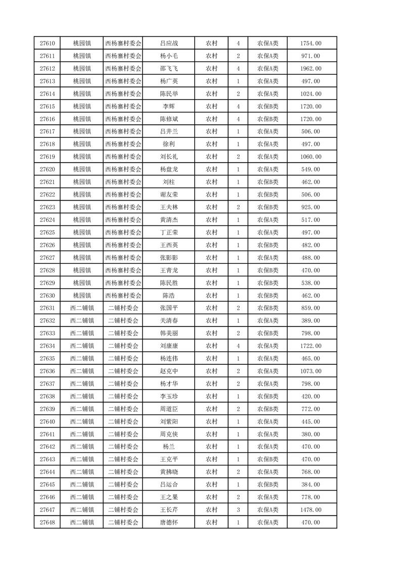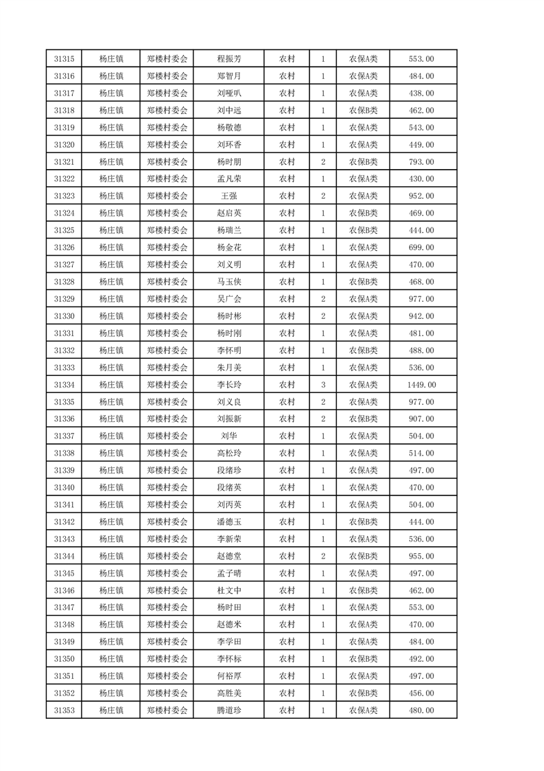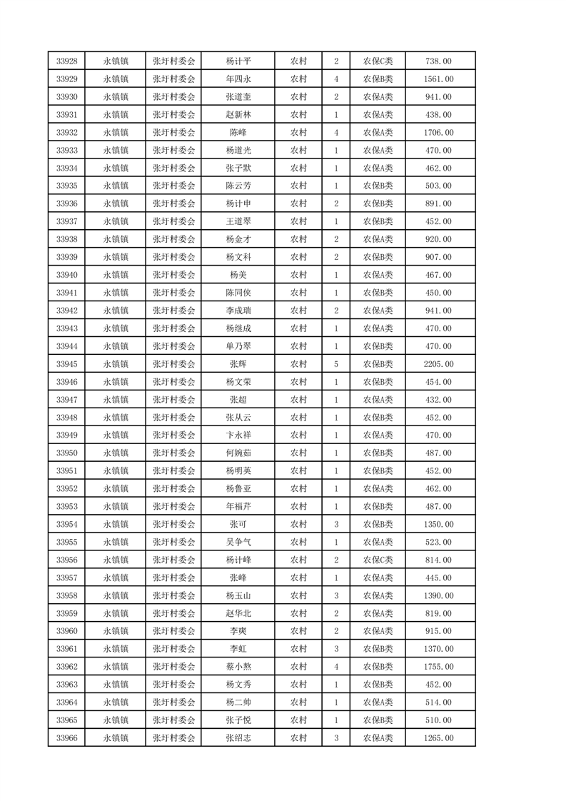 埇桥区2024年12月份农村低保花名册