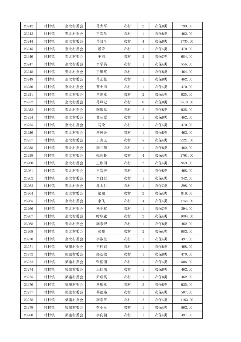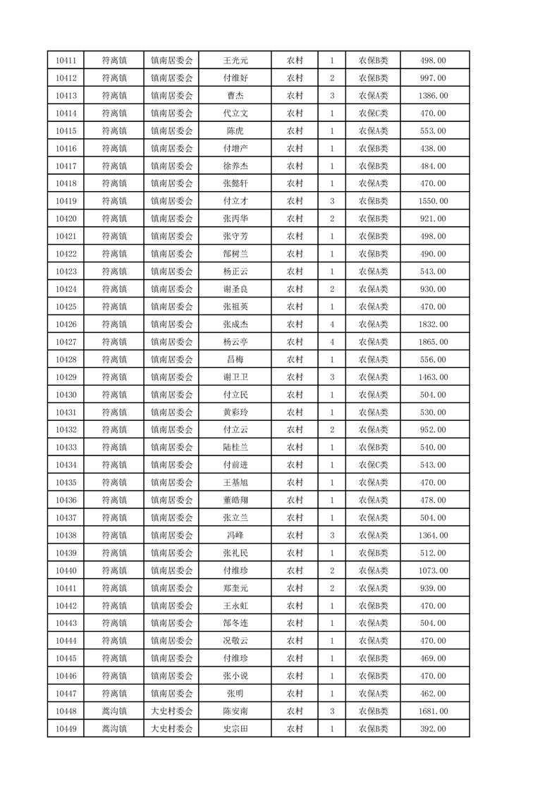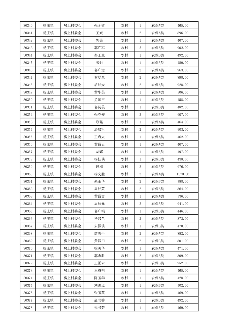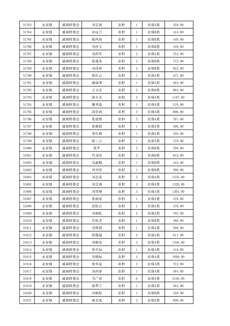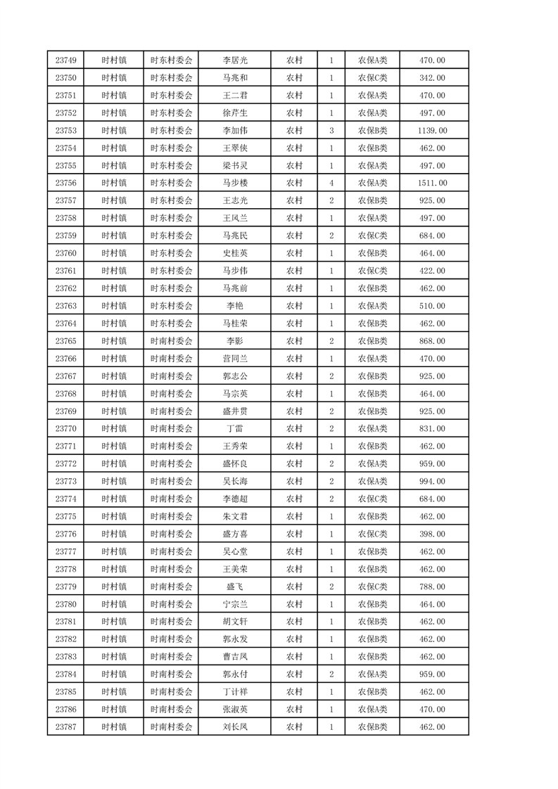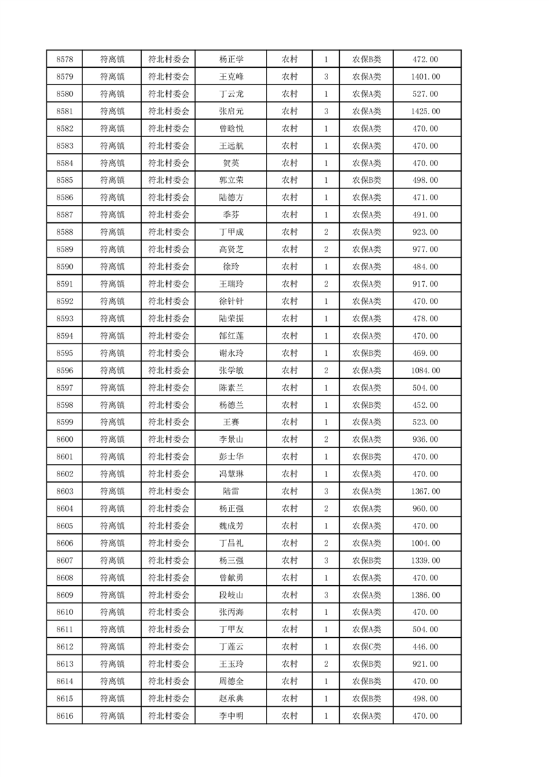 埇桥区2024年12月份农村低保花名册