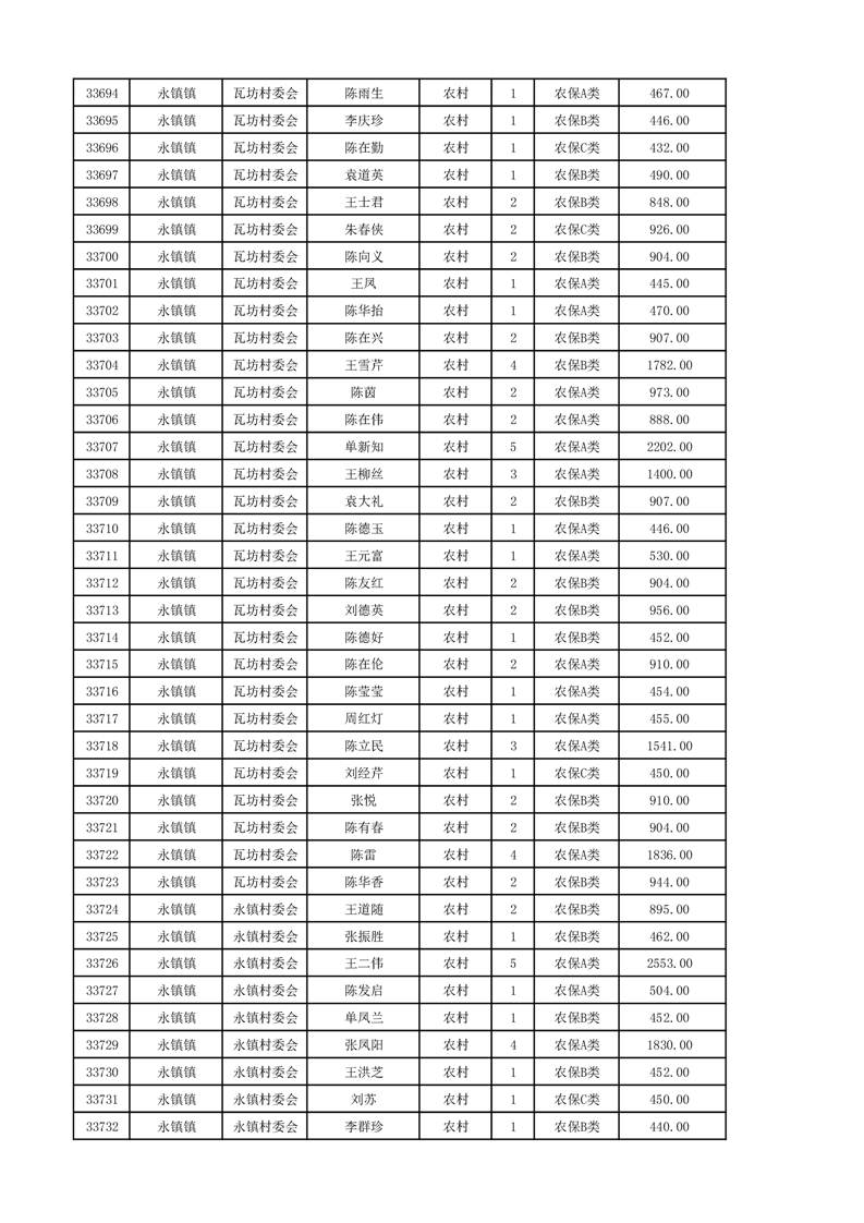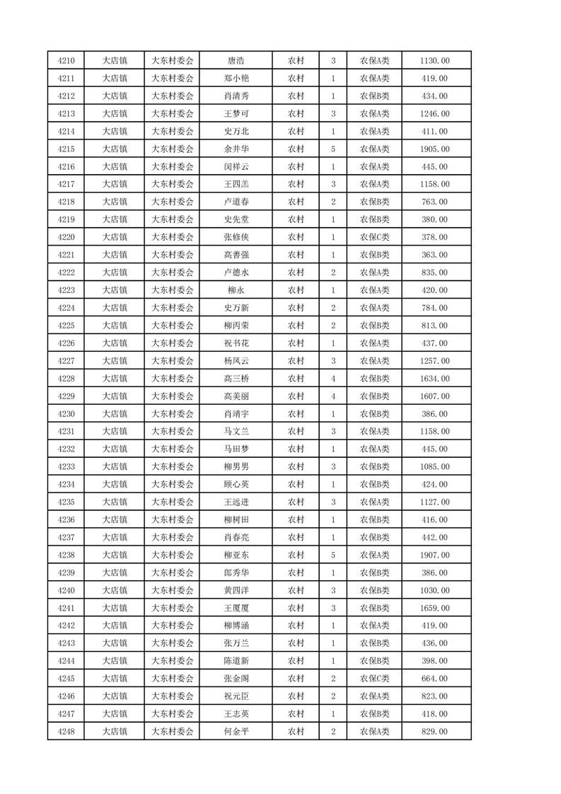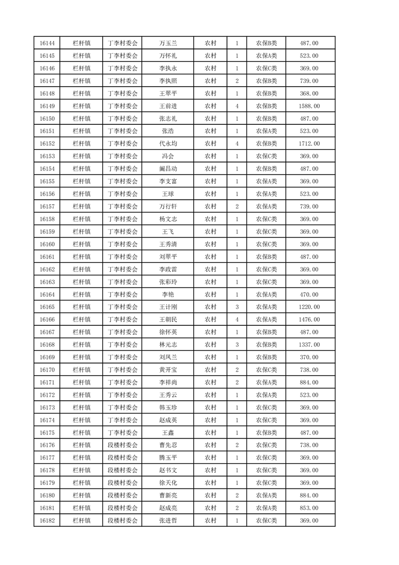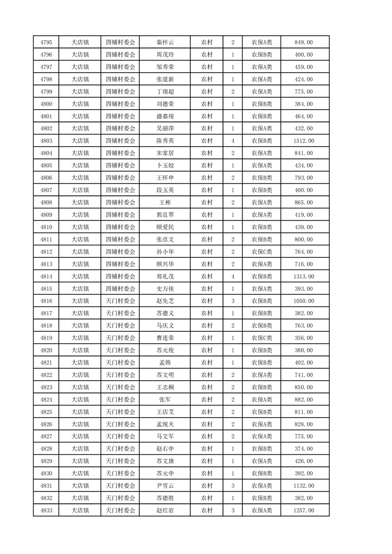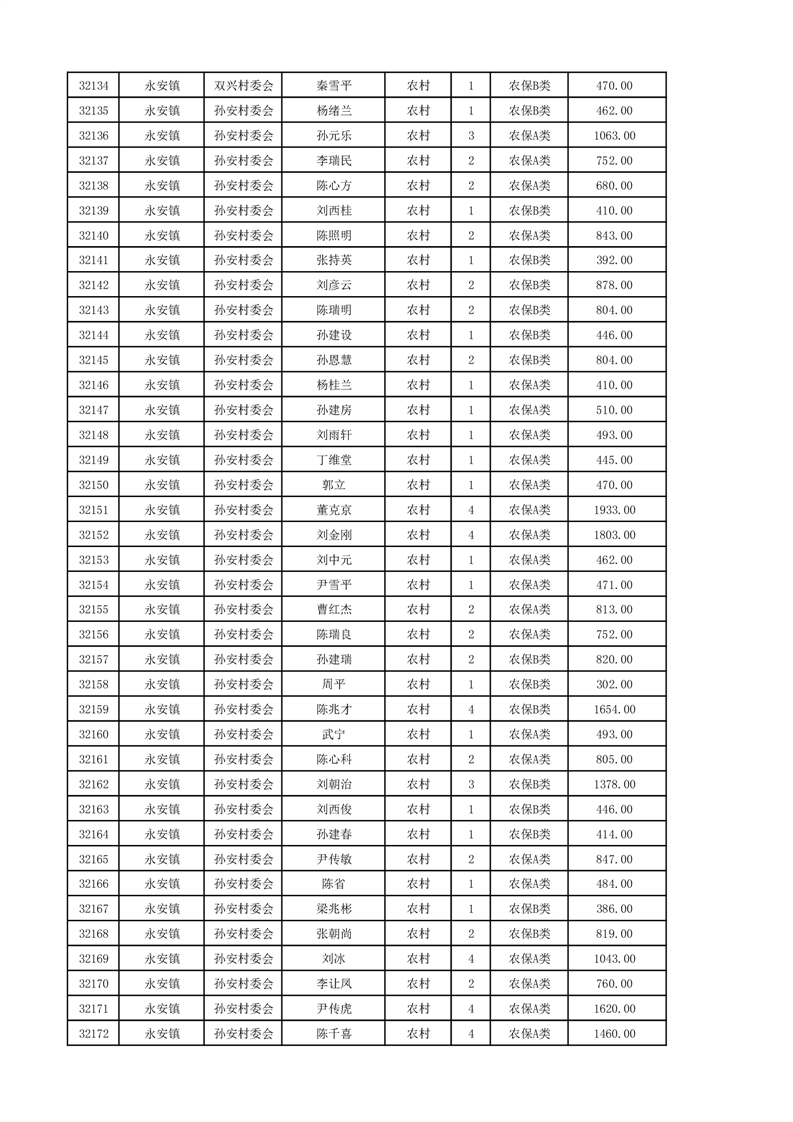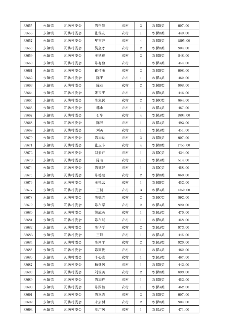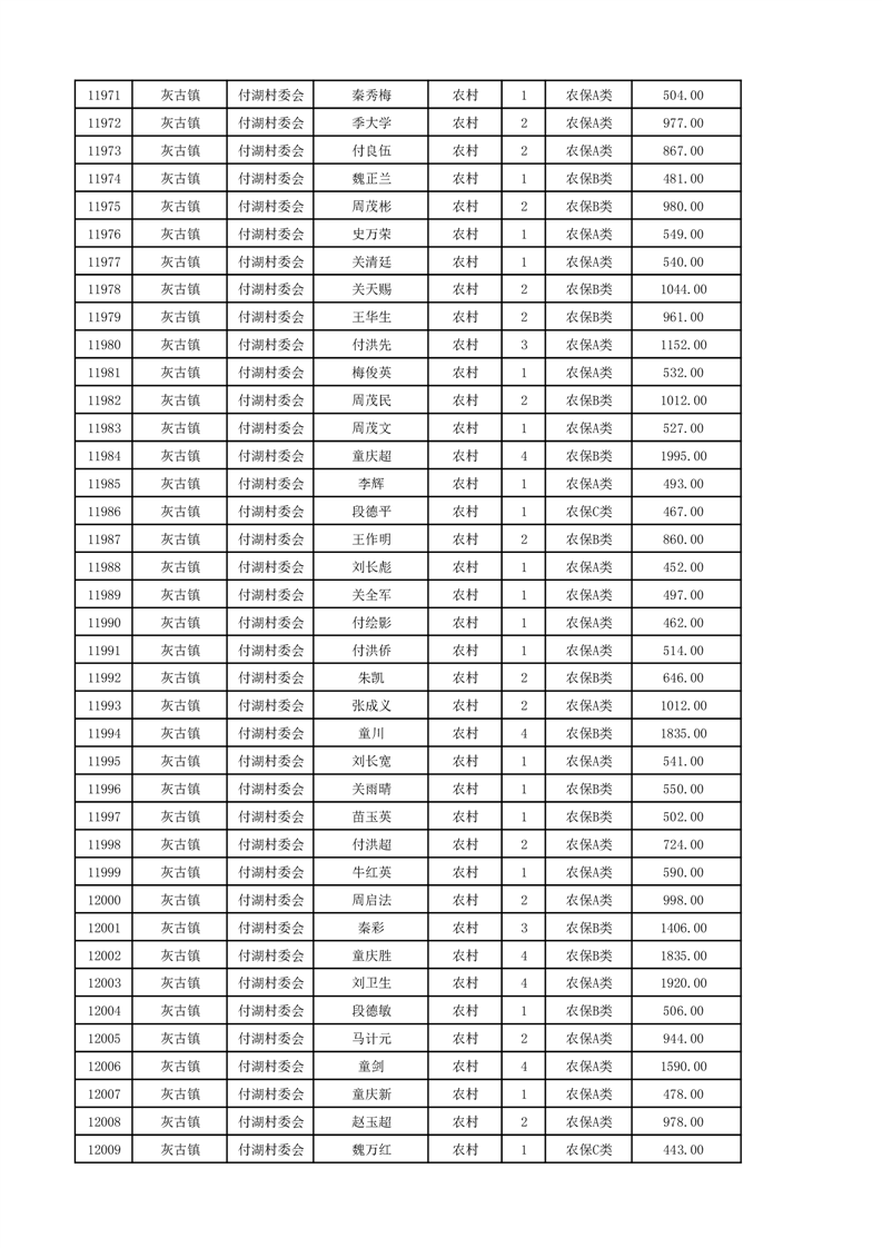 埇桥区2024年12月份农村低保花名册