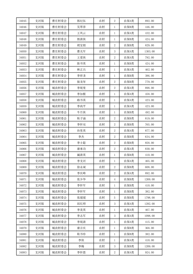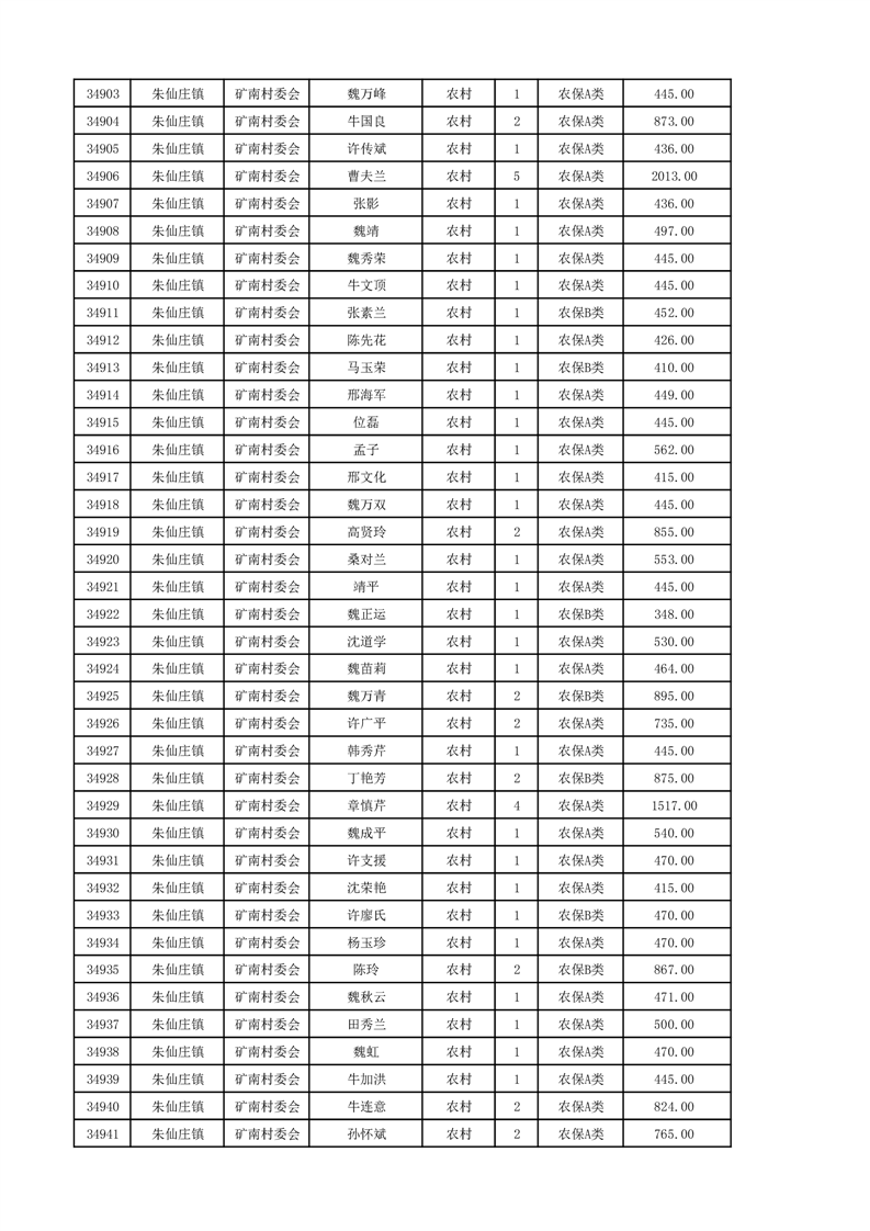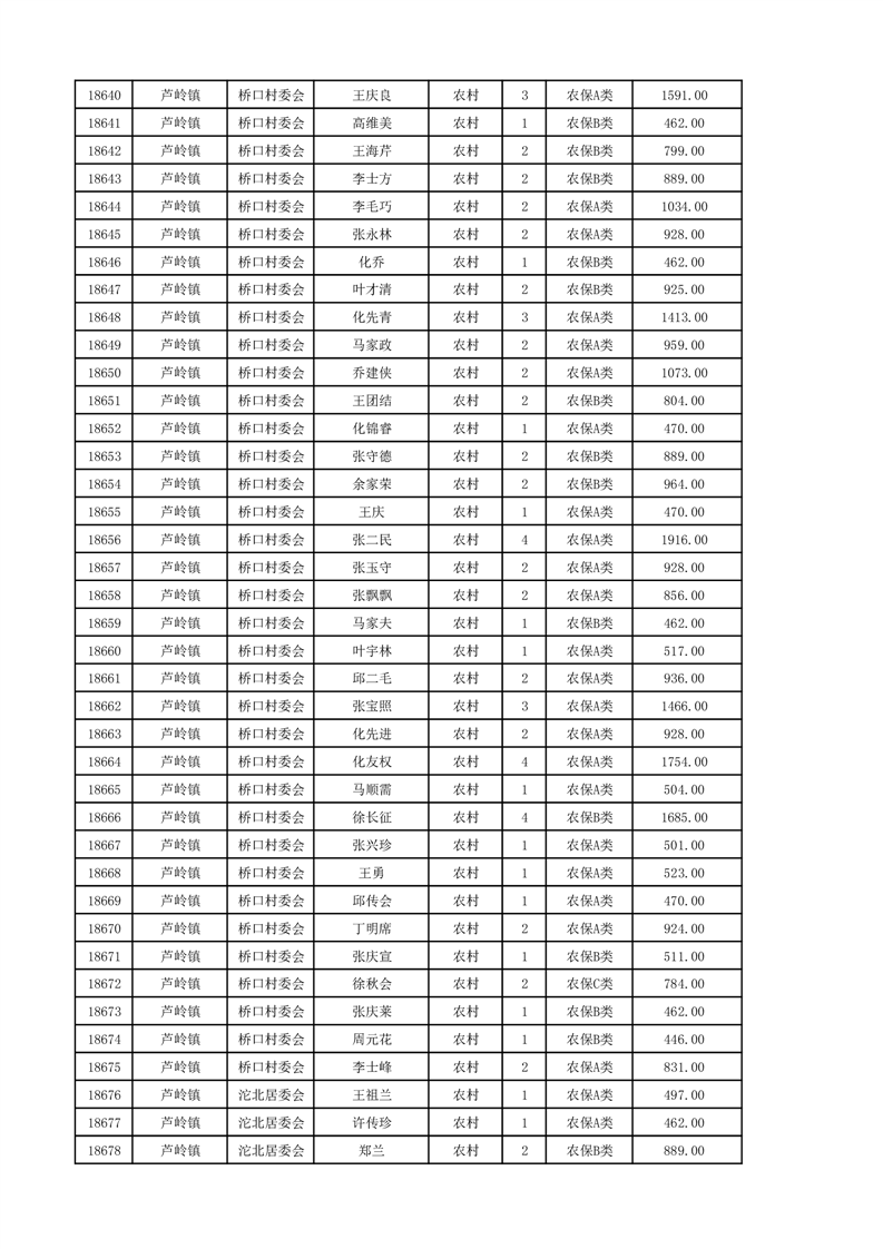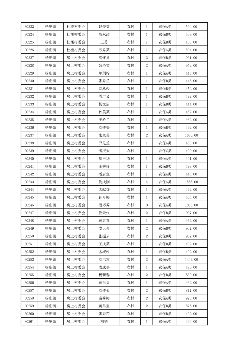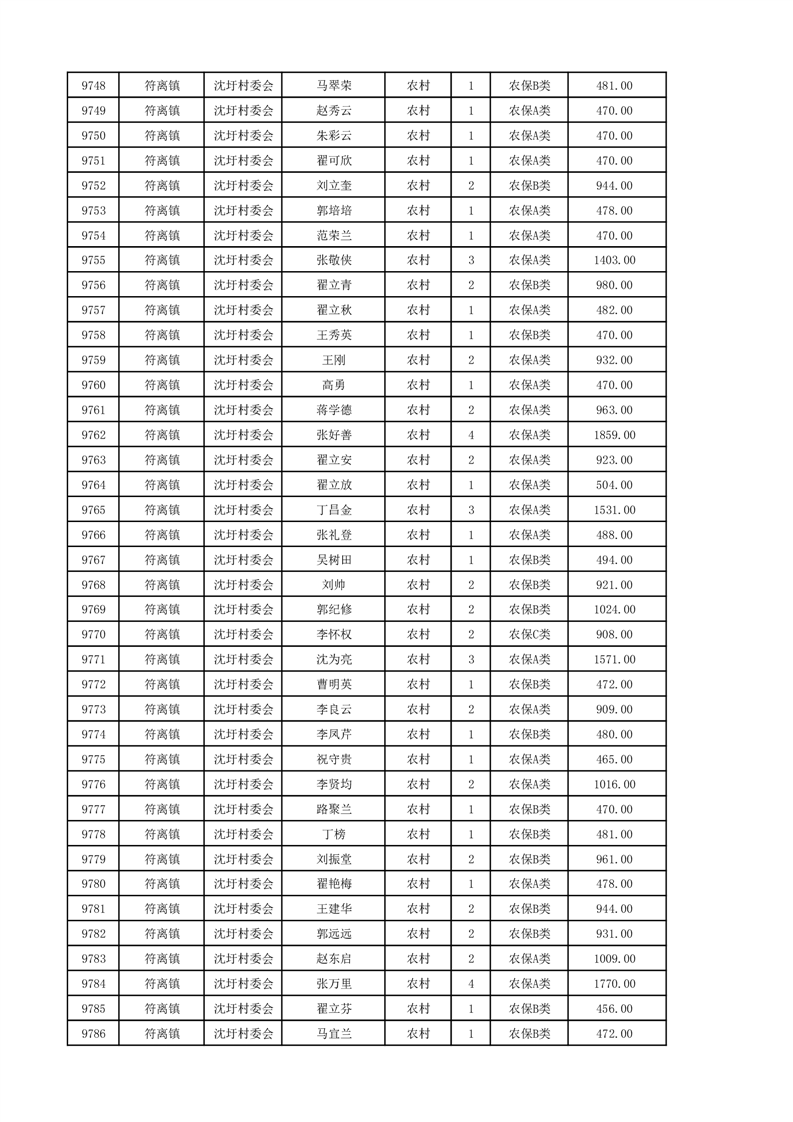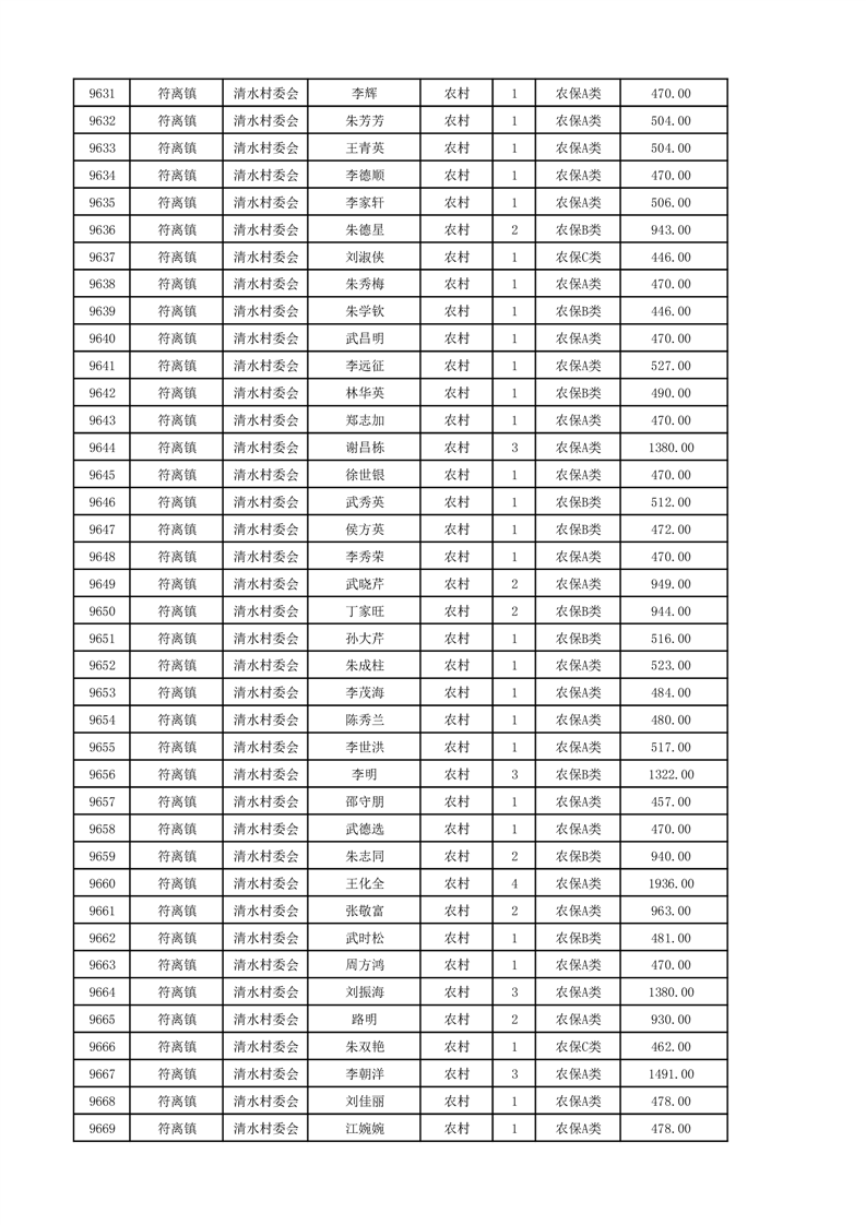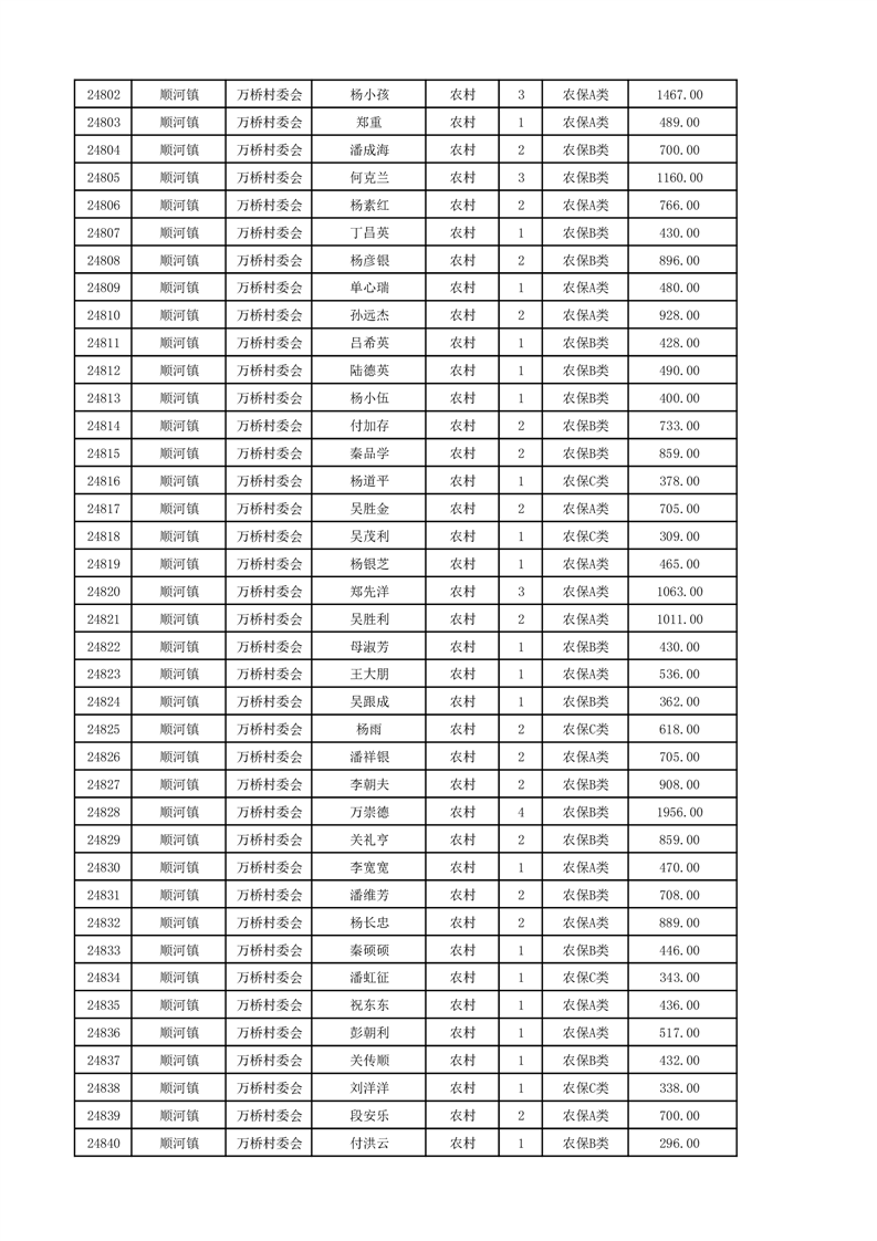 埇桥区2024年12月份农村低保花名册