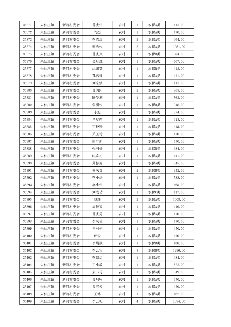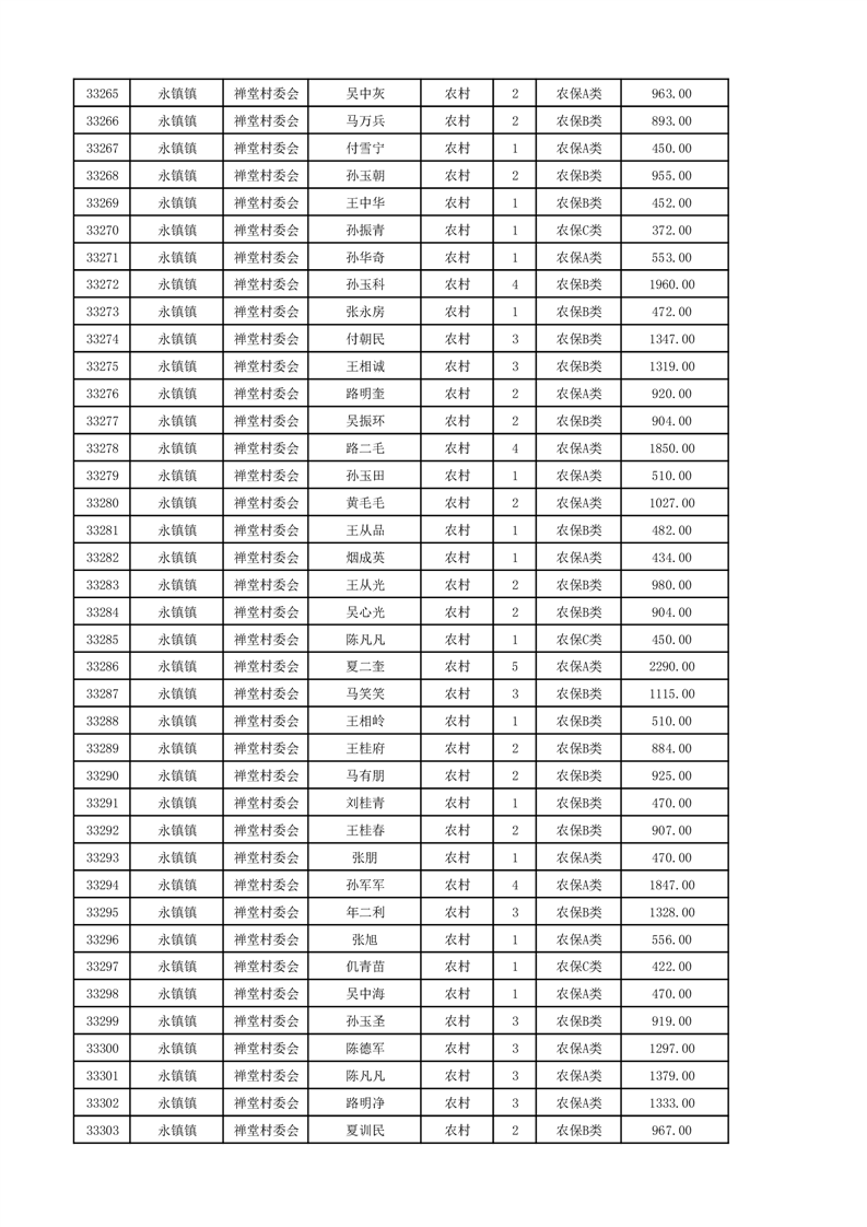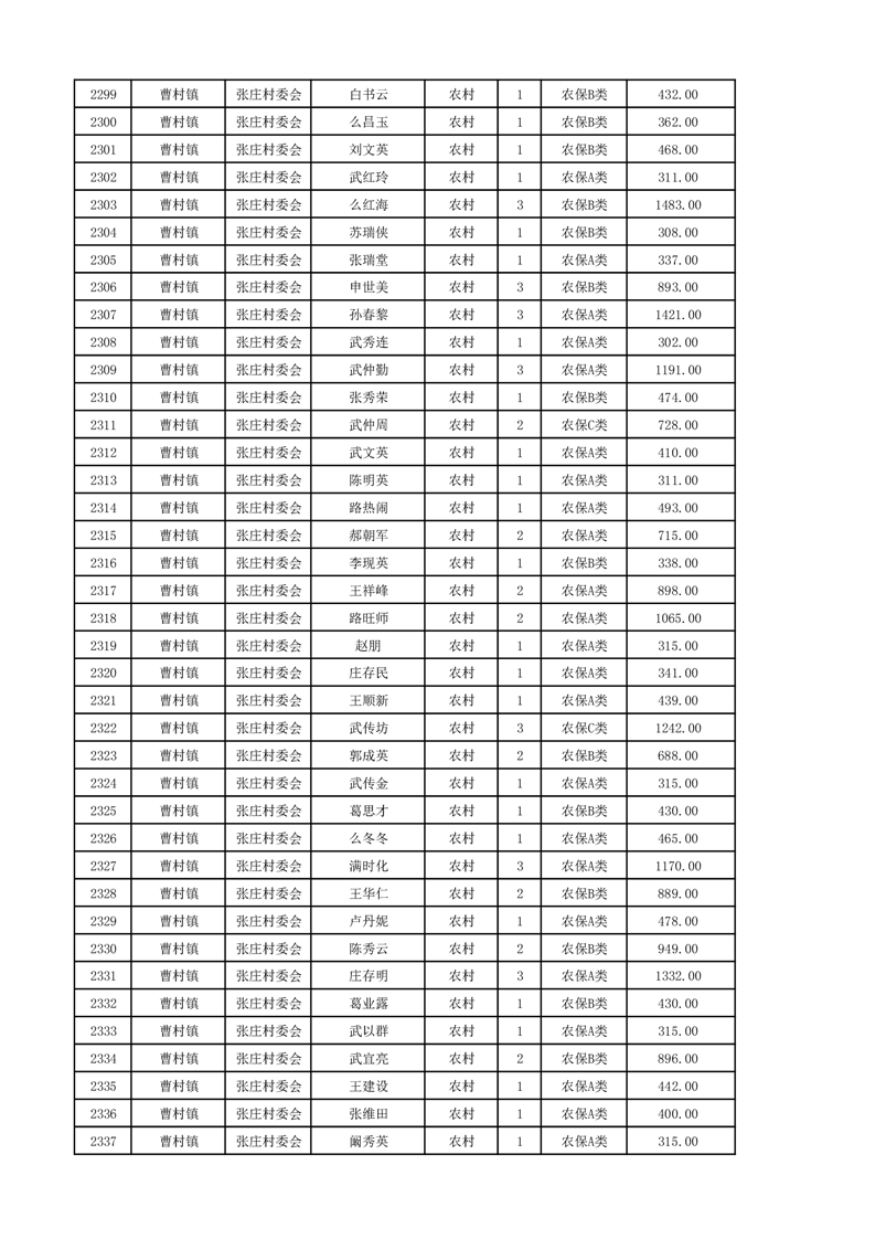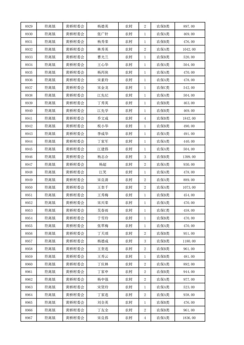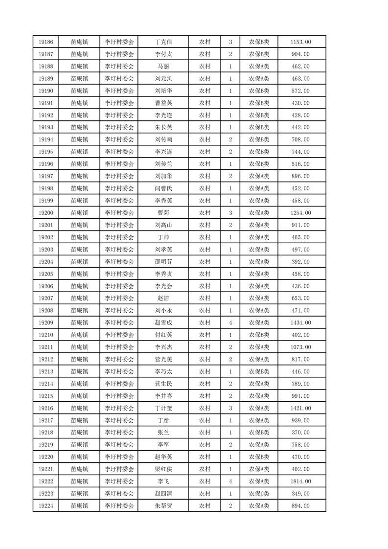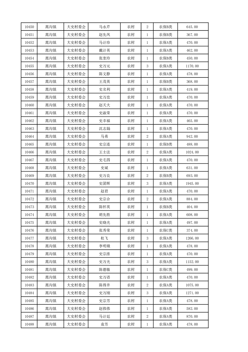 埇桥区2024年12月份农村低保花名册