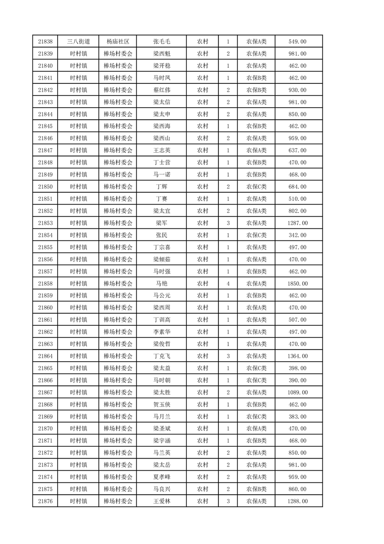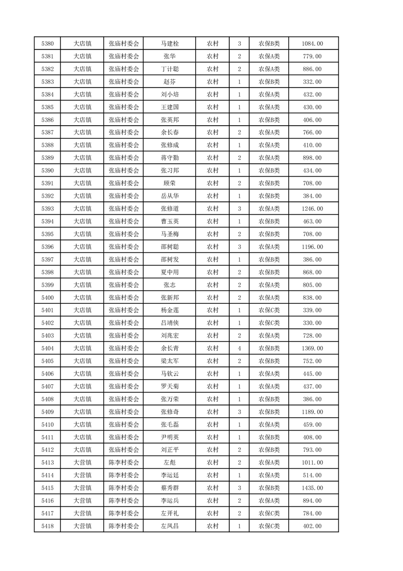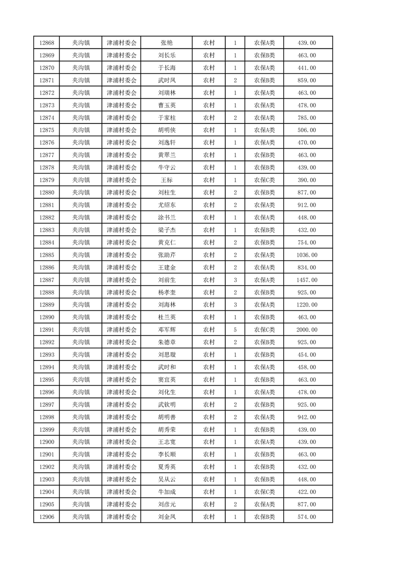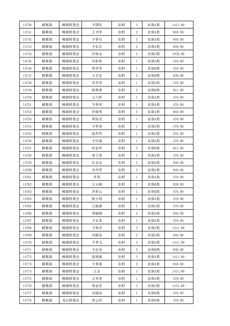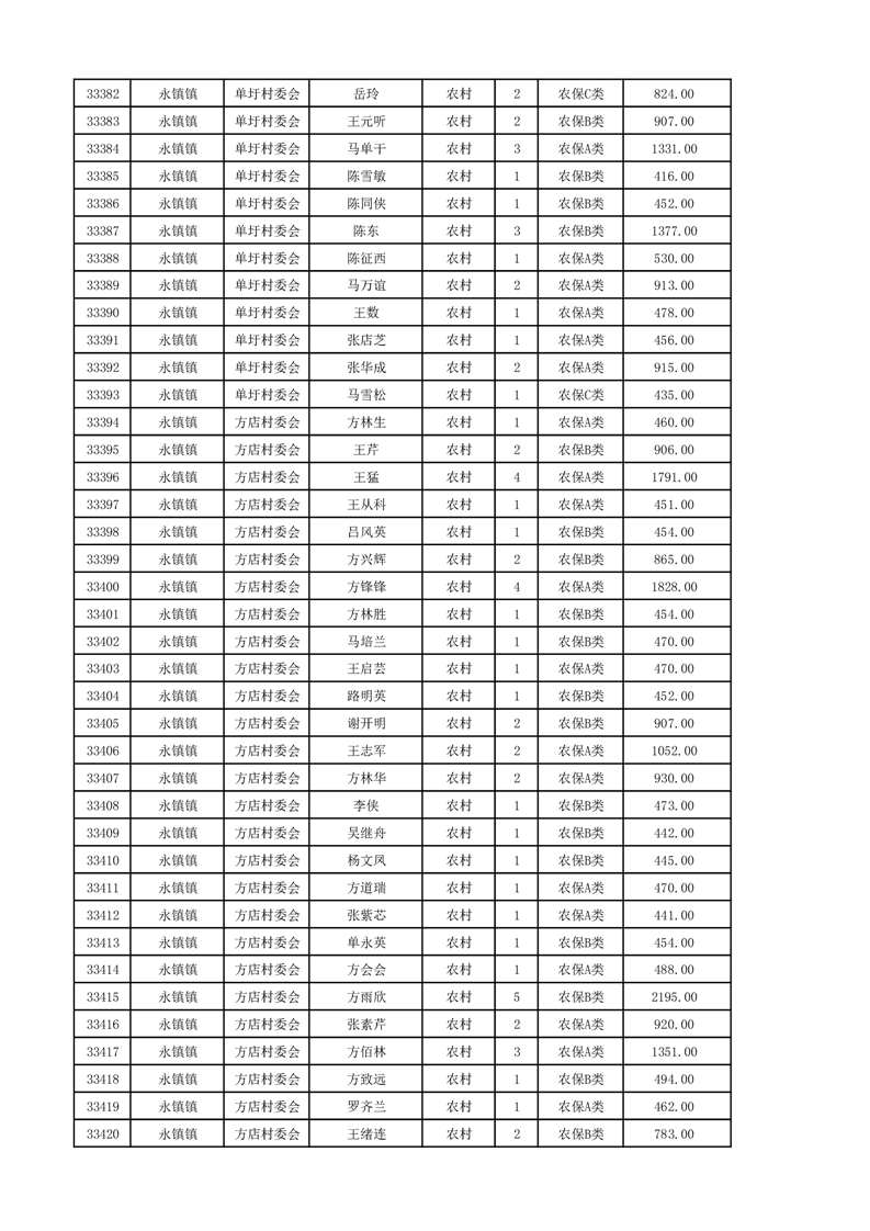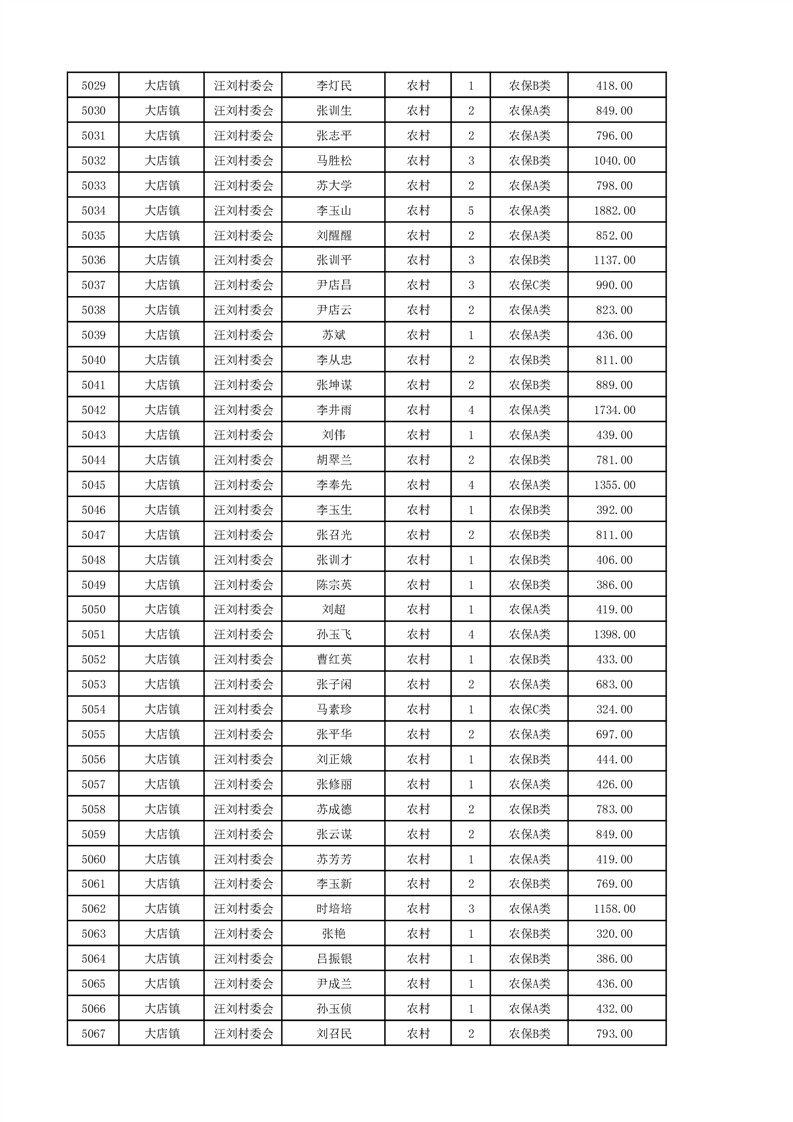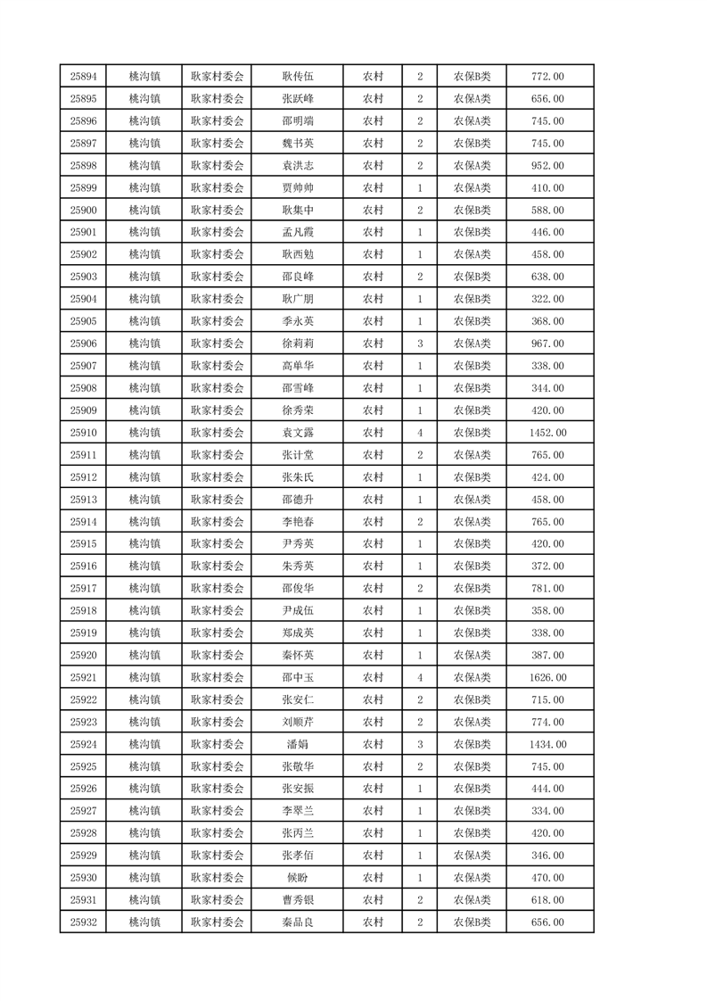埇桥区2024年12月份农村低保花名册