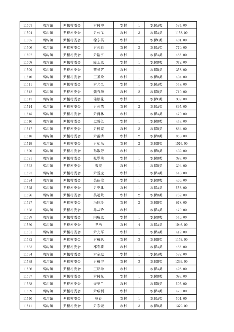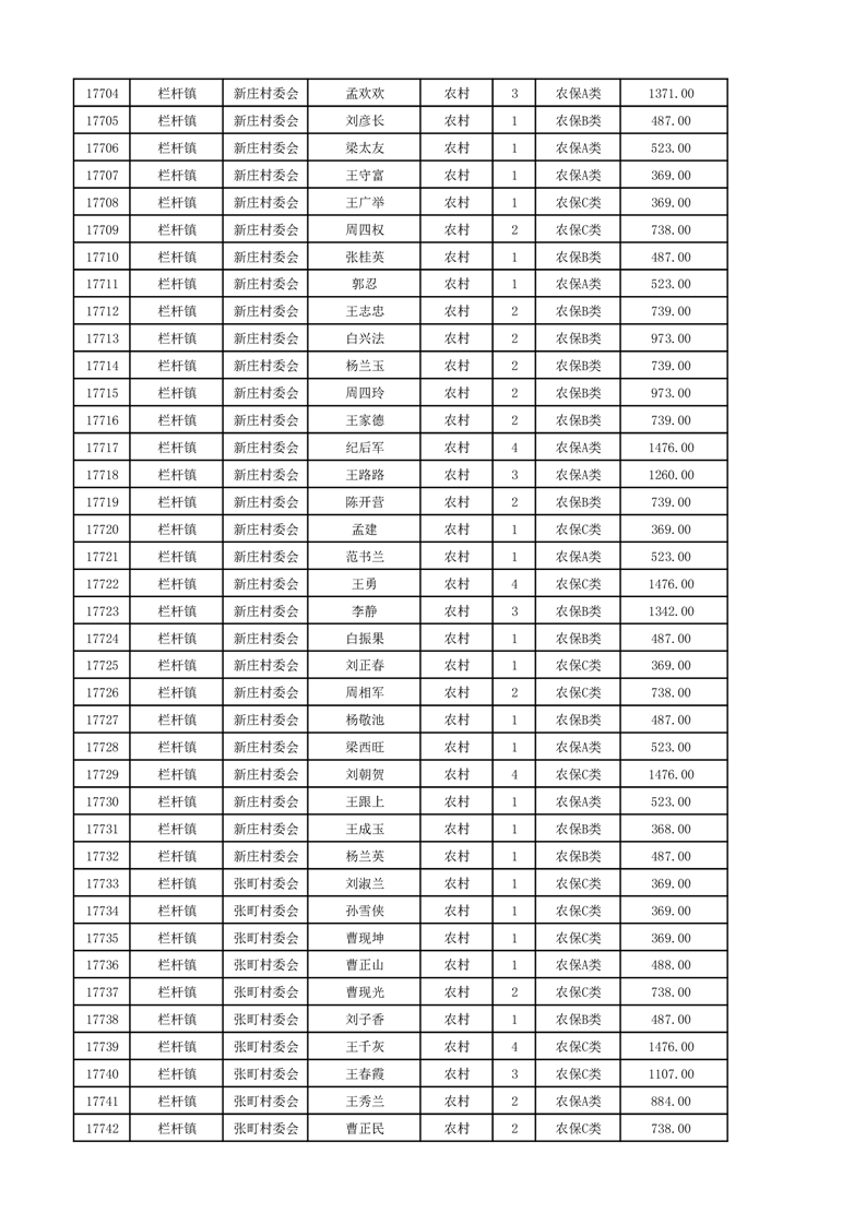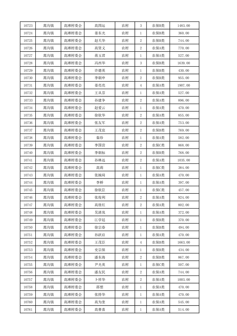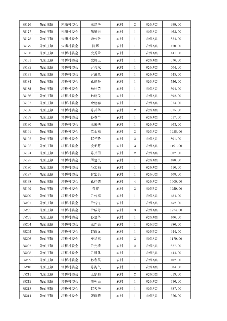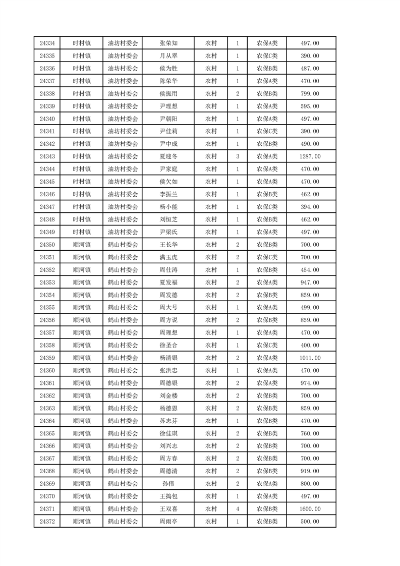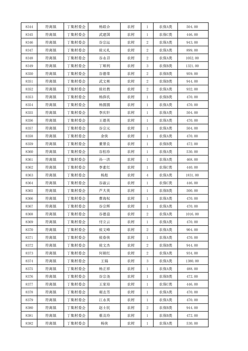 埇桥区2024年12月份农村低保花名册