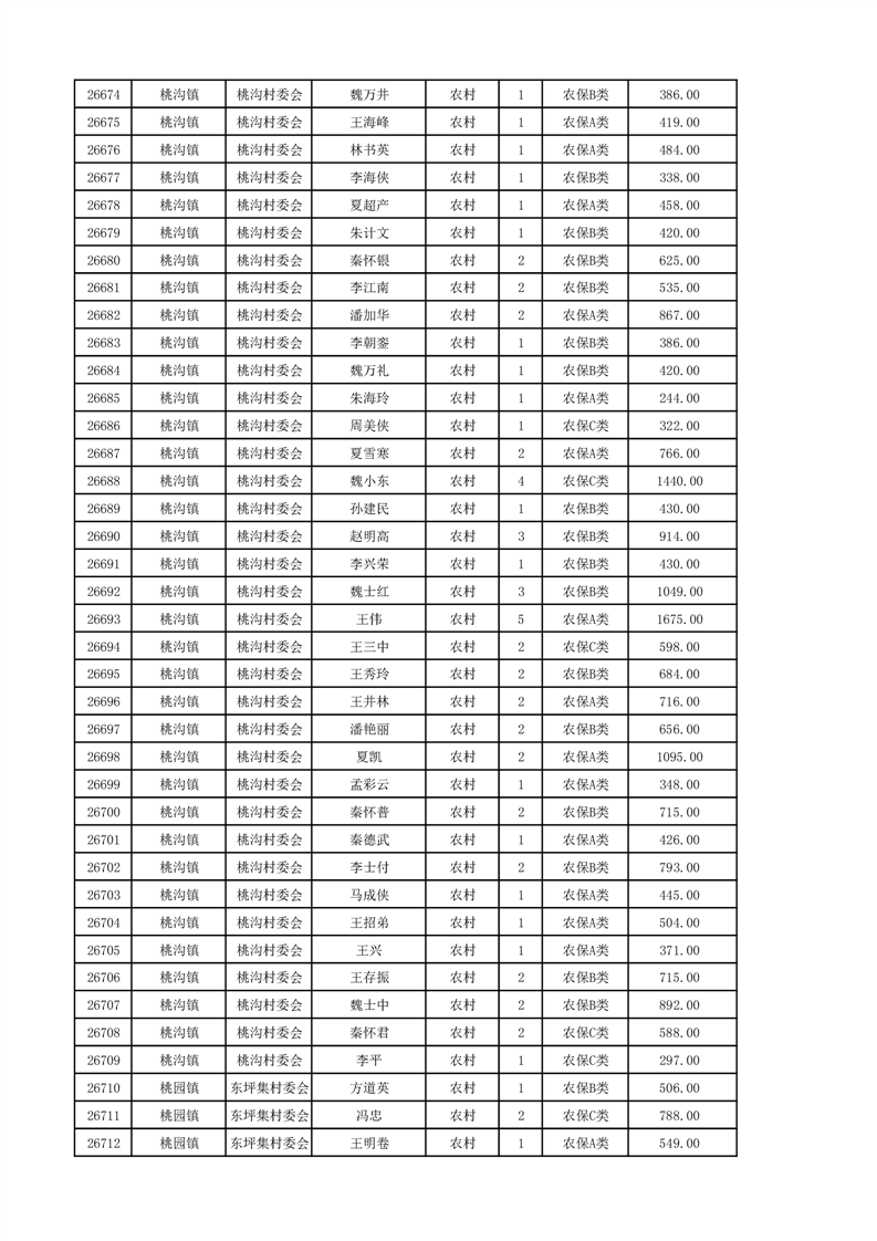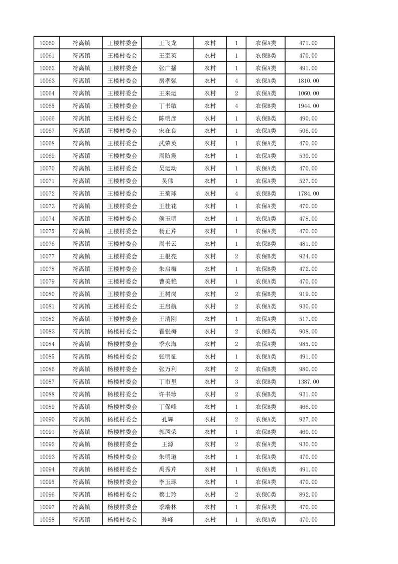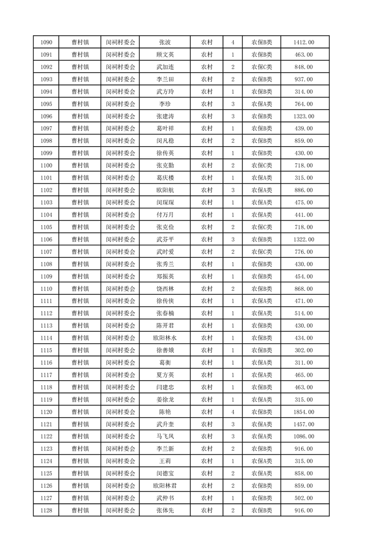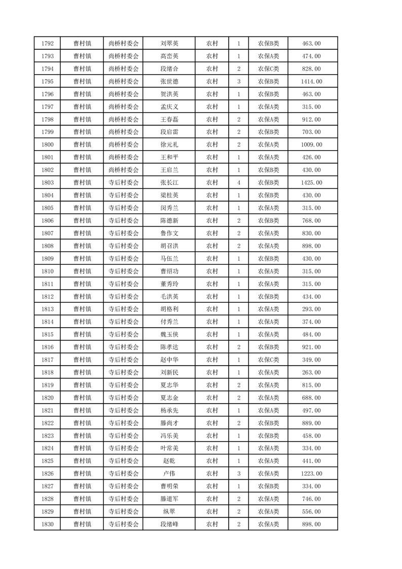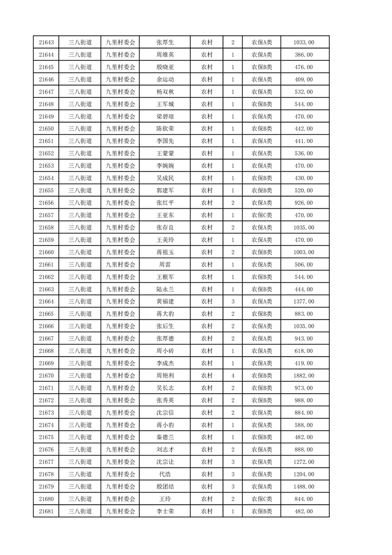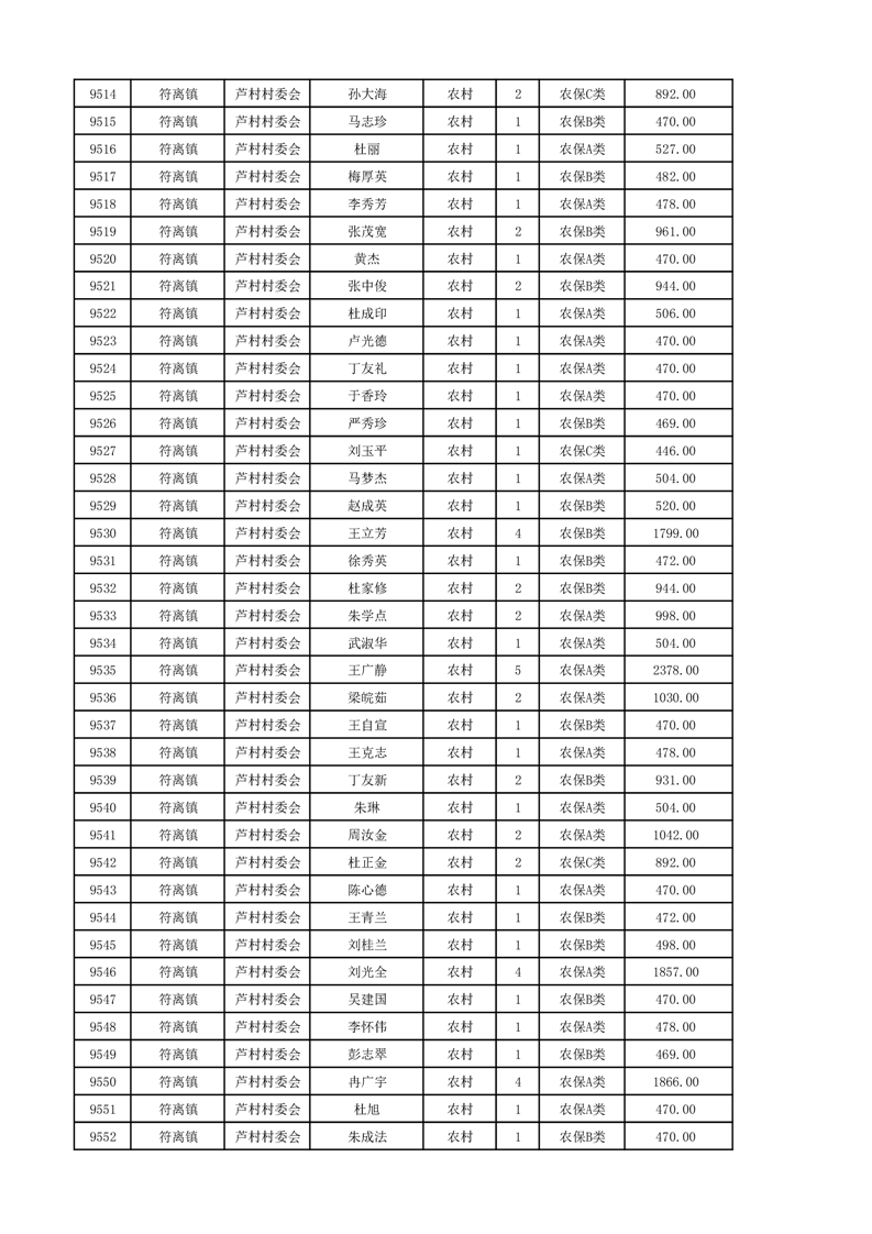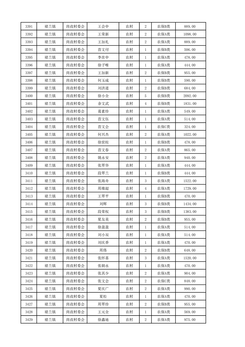 埇桥区2024年12月份农村低保花名册