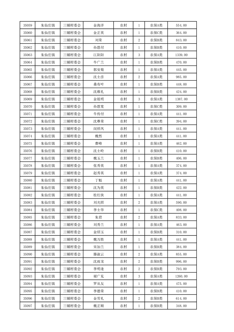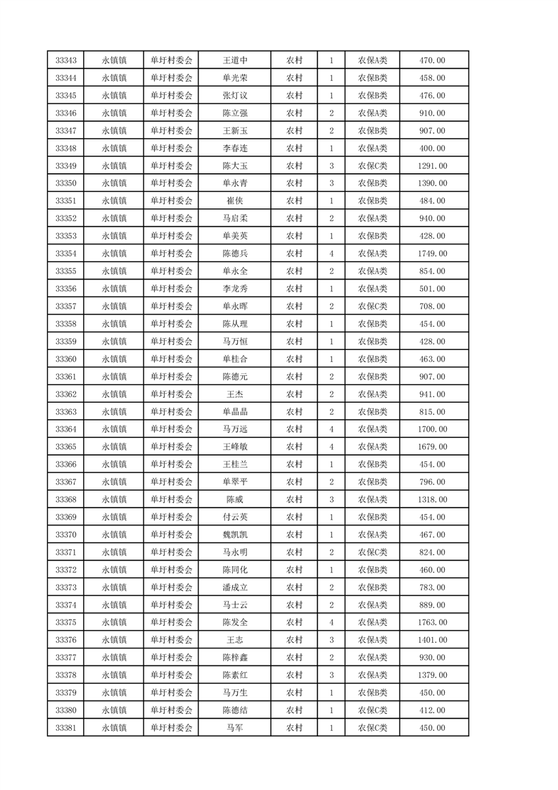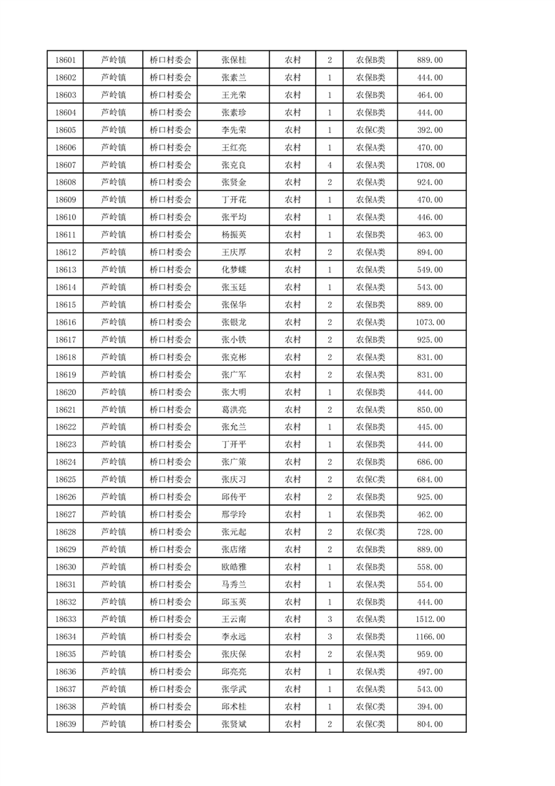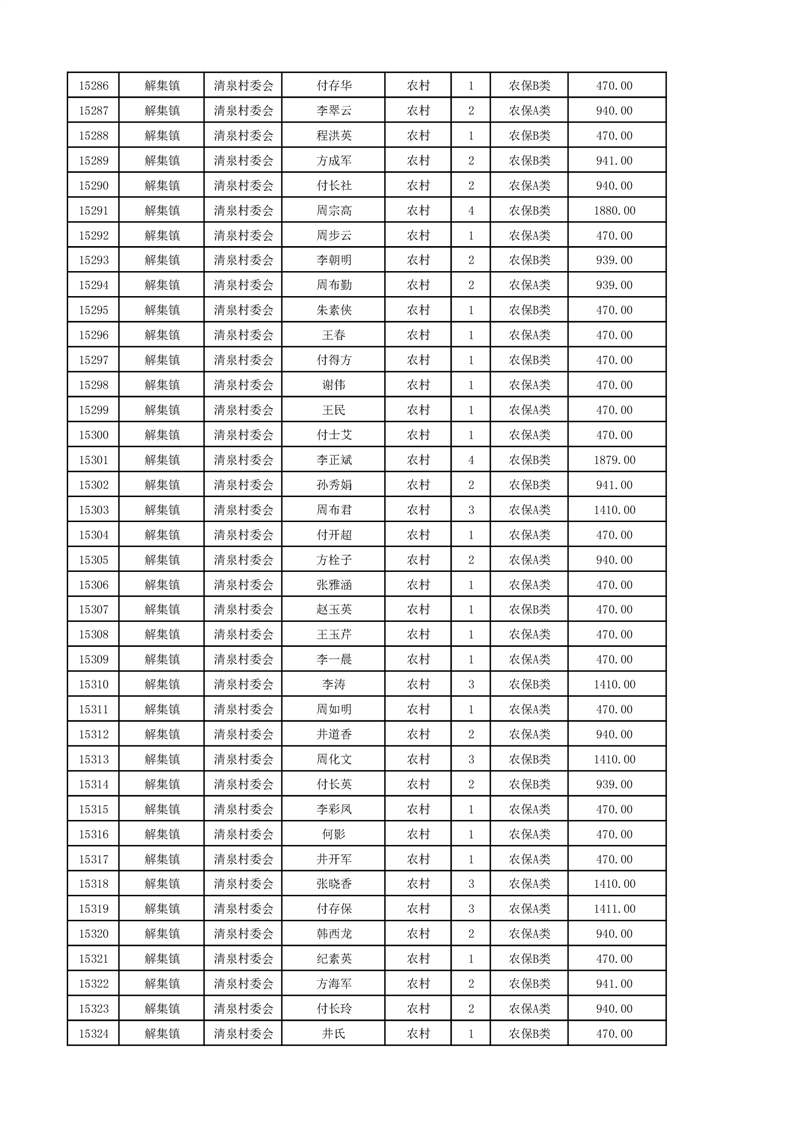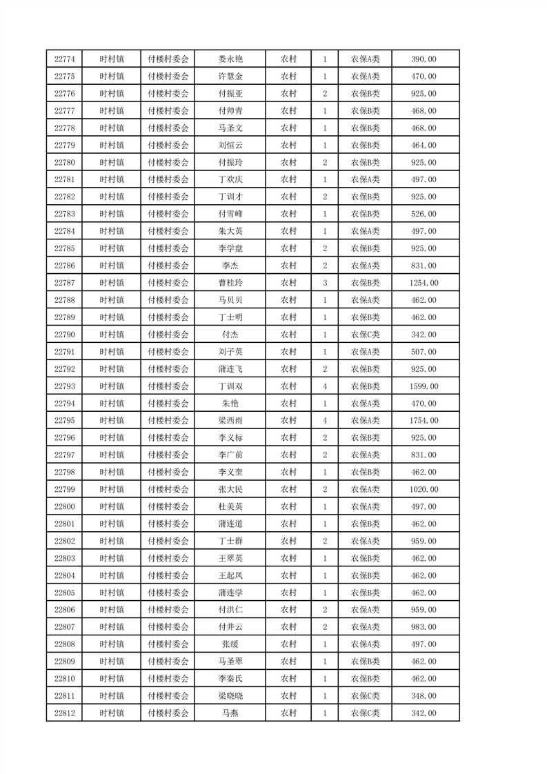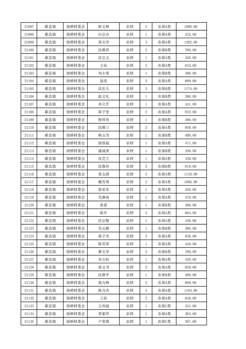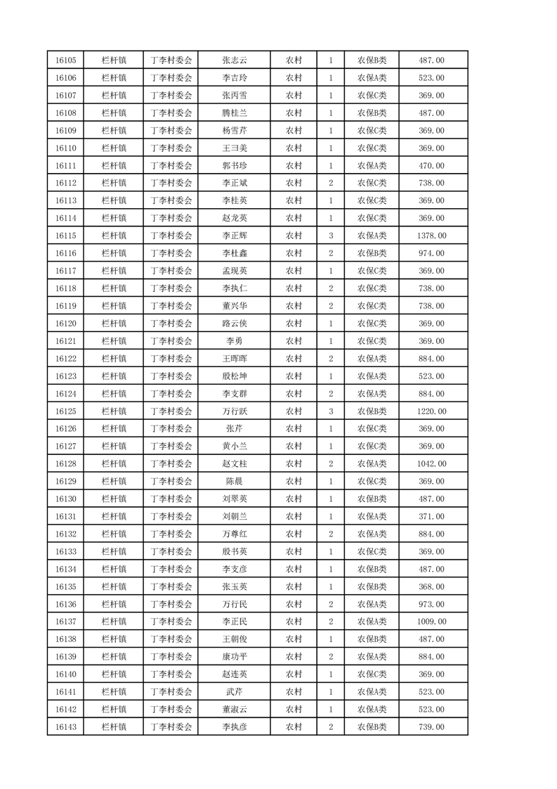 埇桥区2024年12月份农村低保花名册
