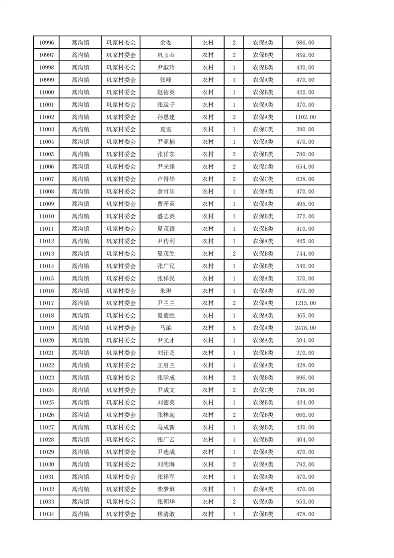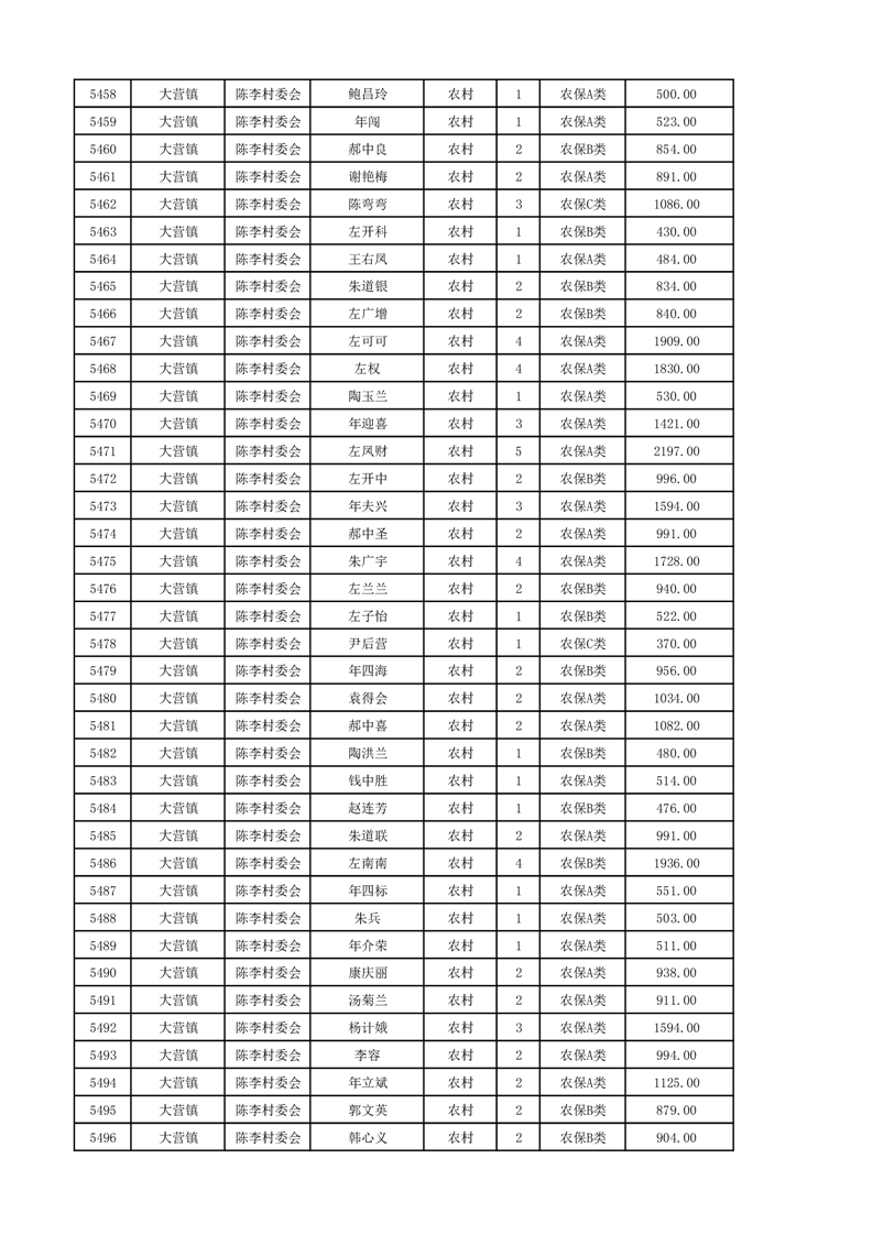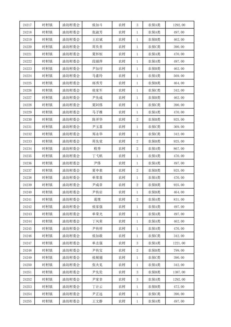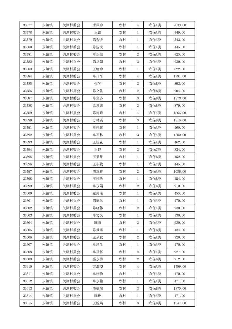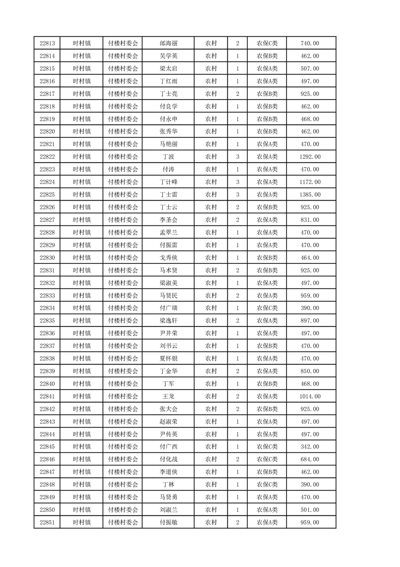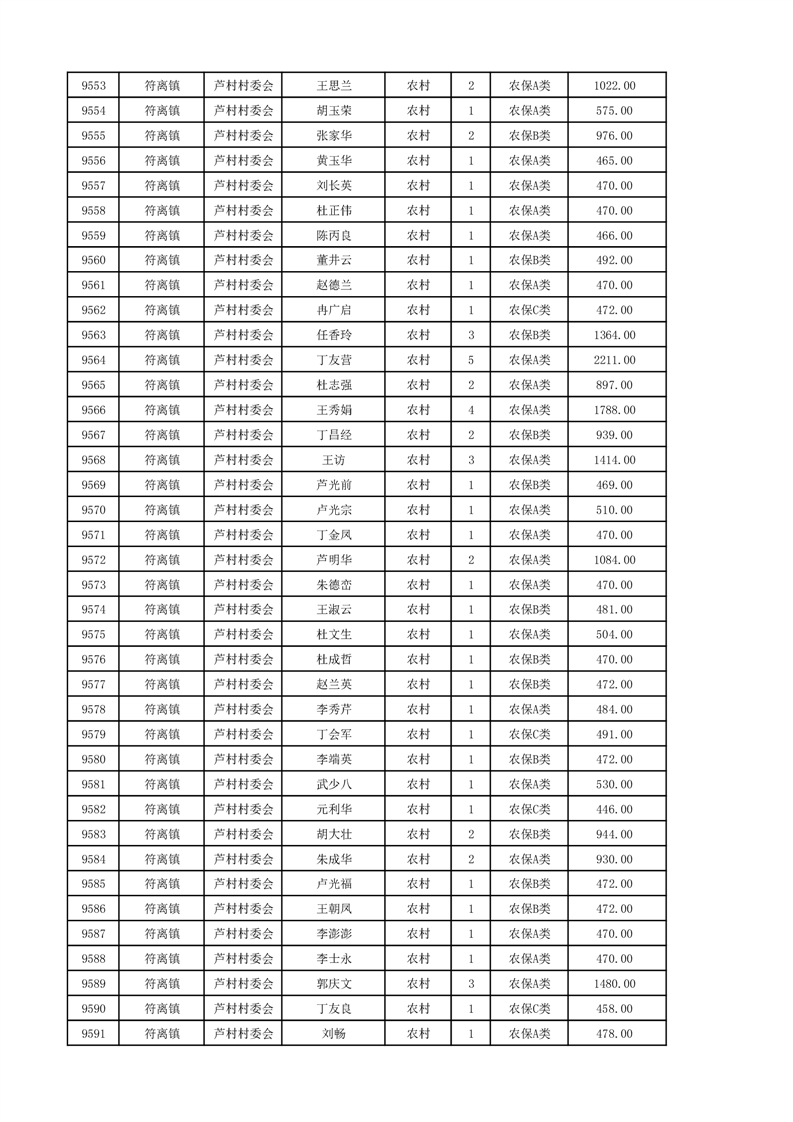埇桥区2024年12月份农村低保花名册