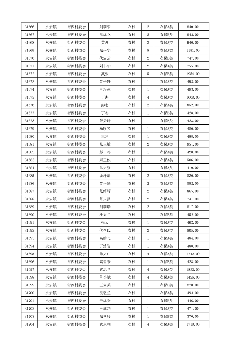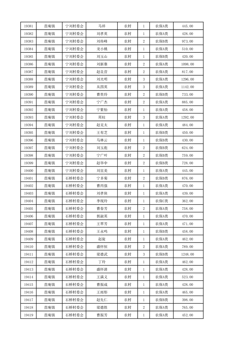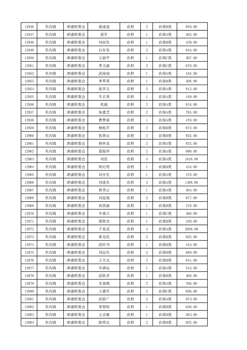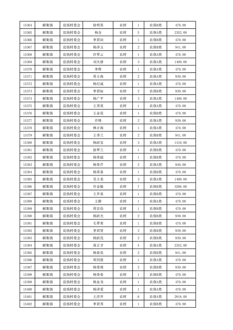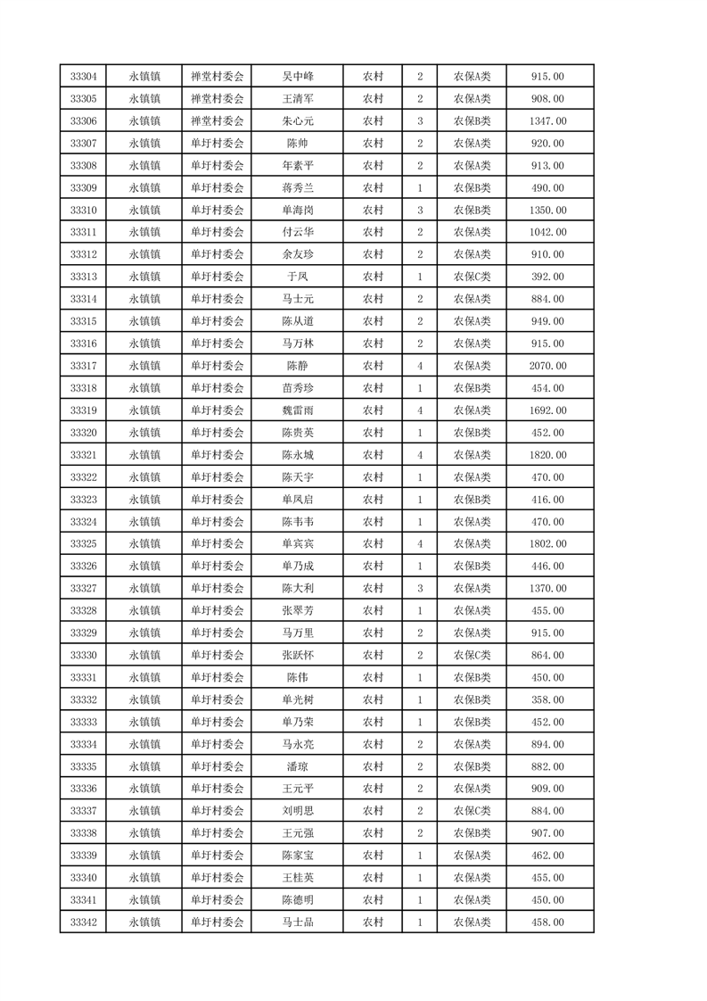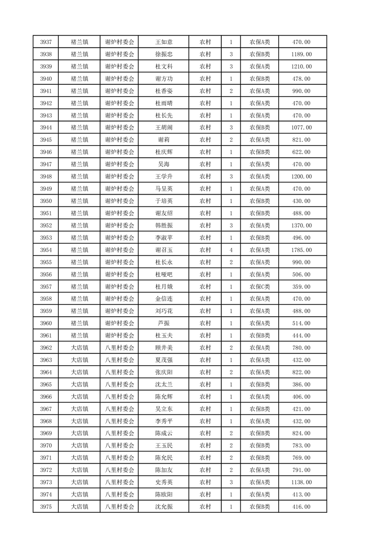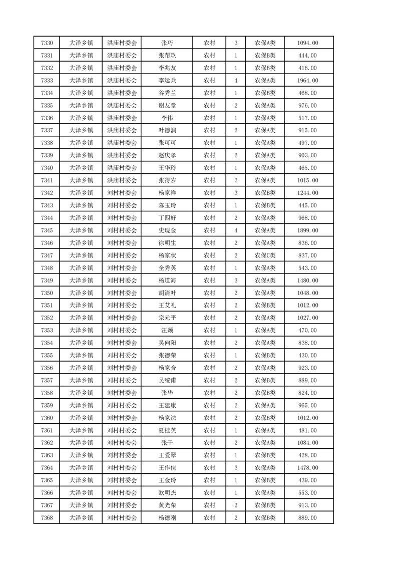 埇桥区2024年12月份农村低保花名册