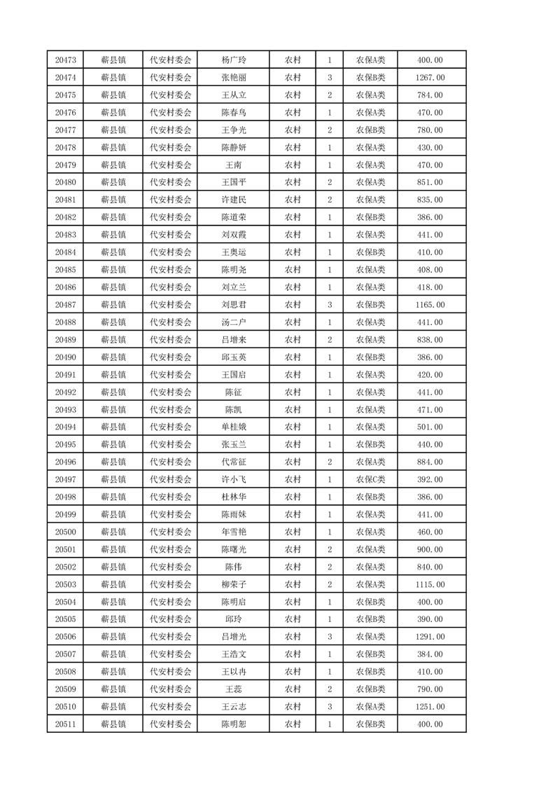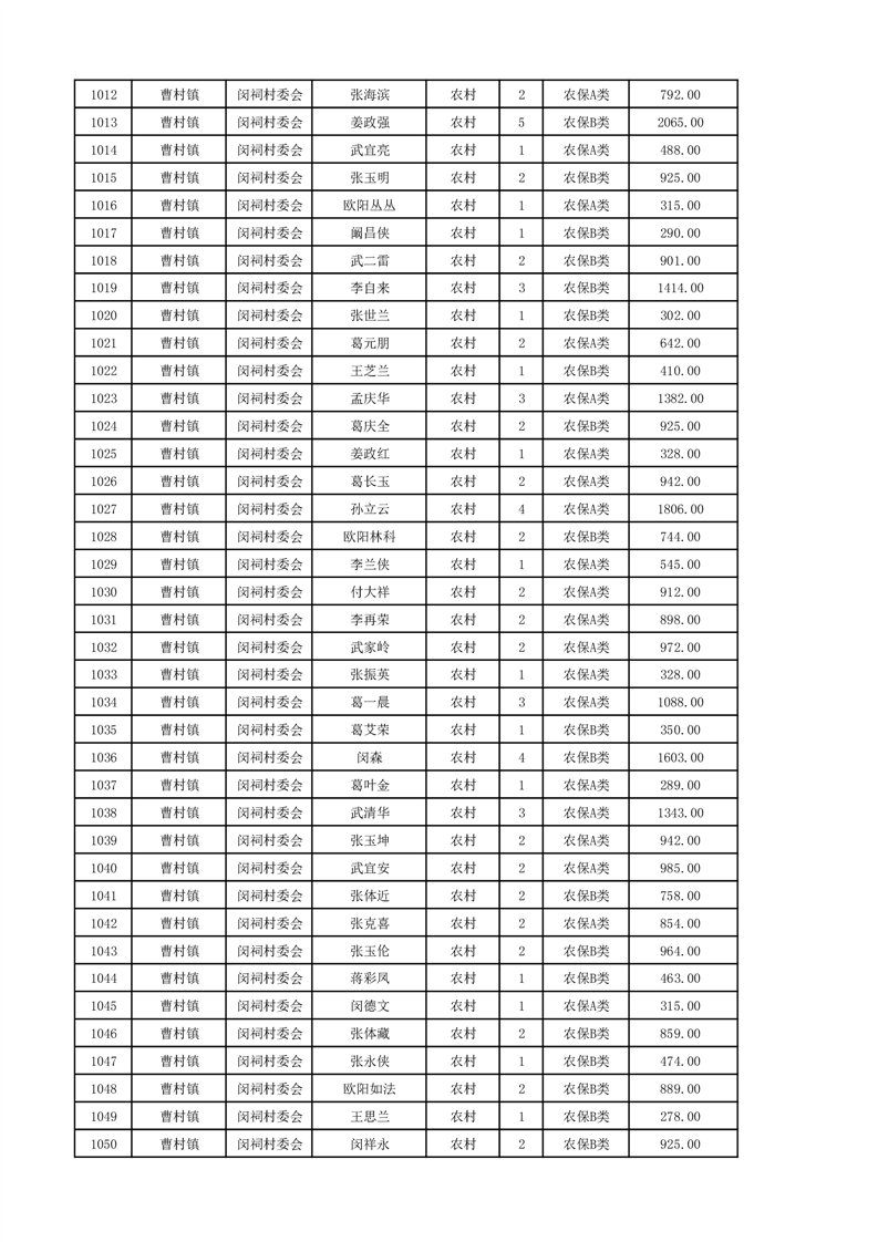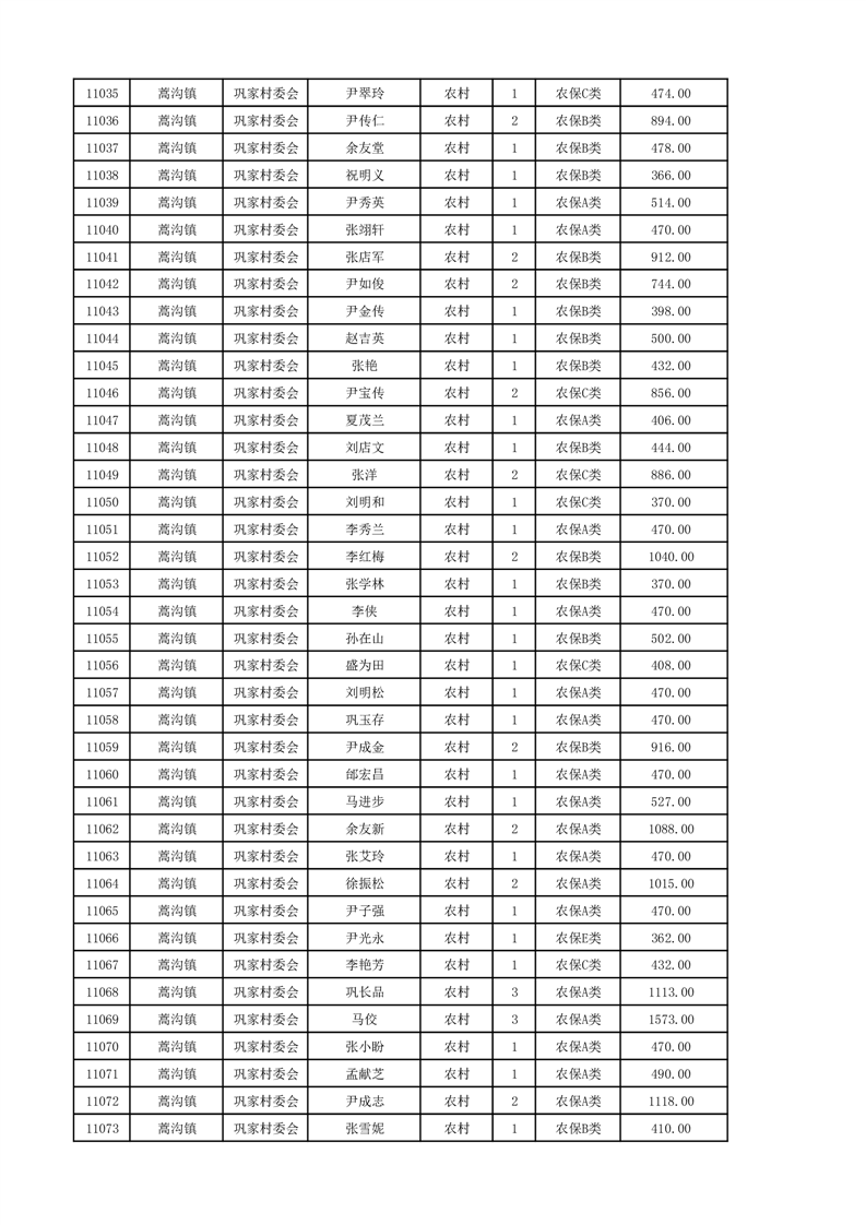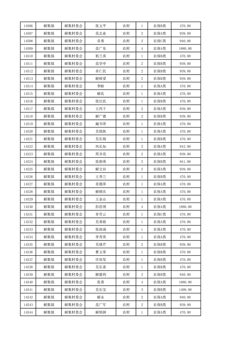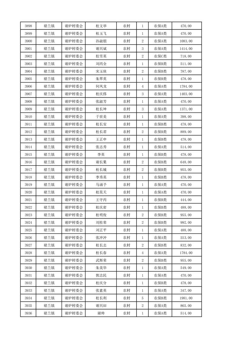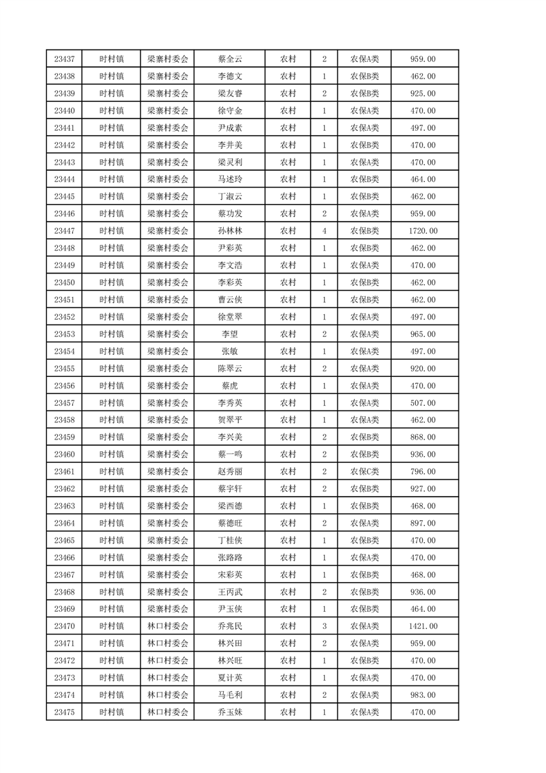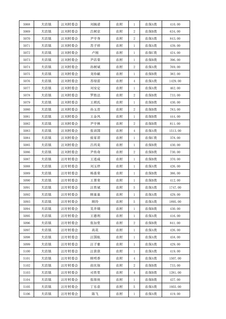 埇桥区2024年12月份农村低保花名册
