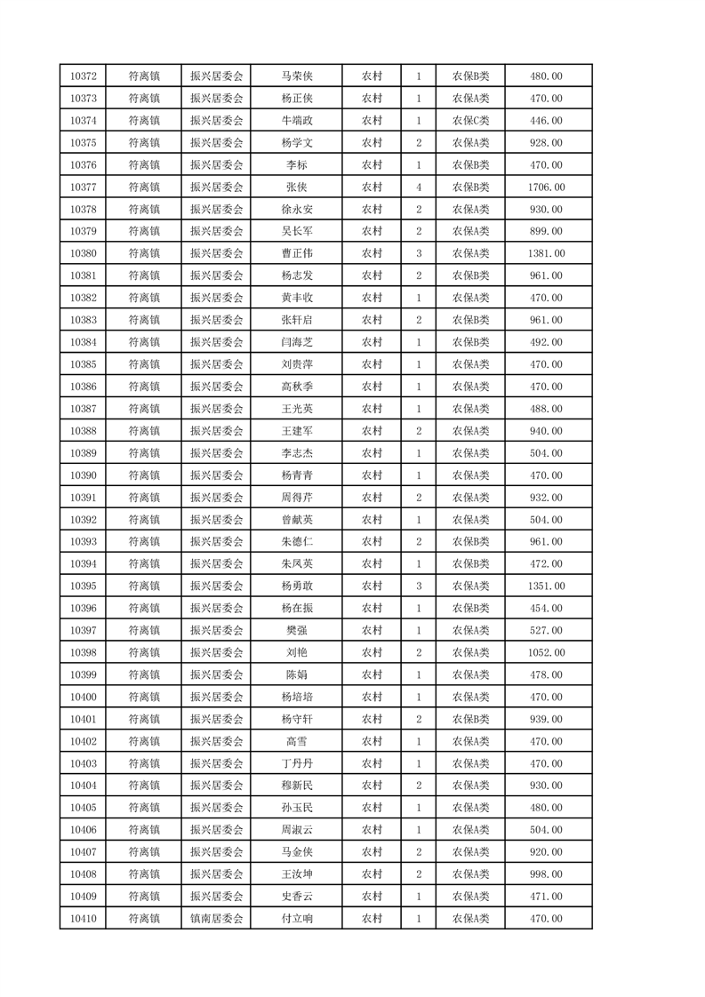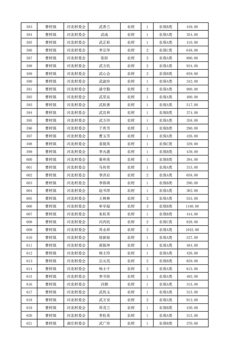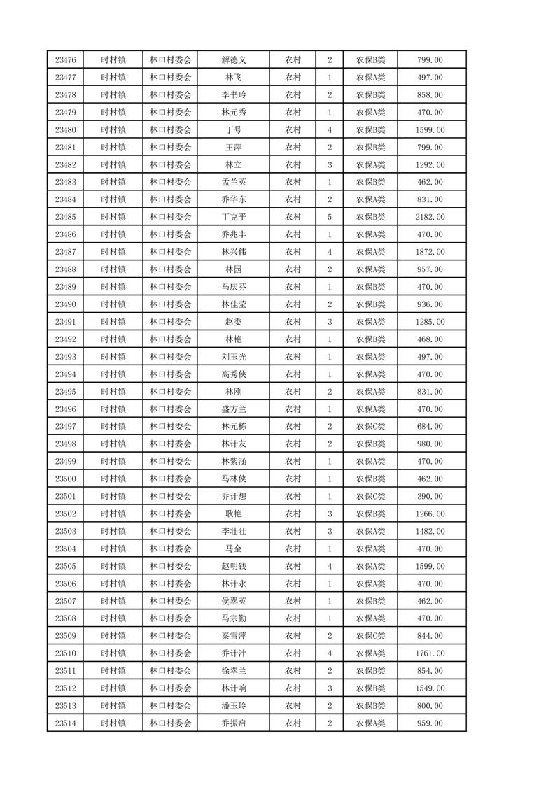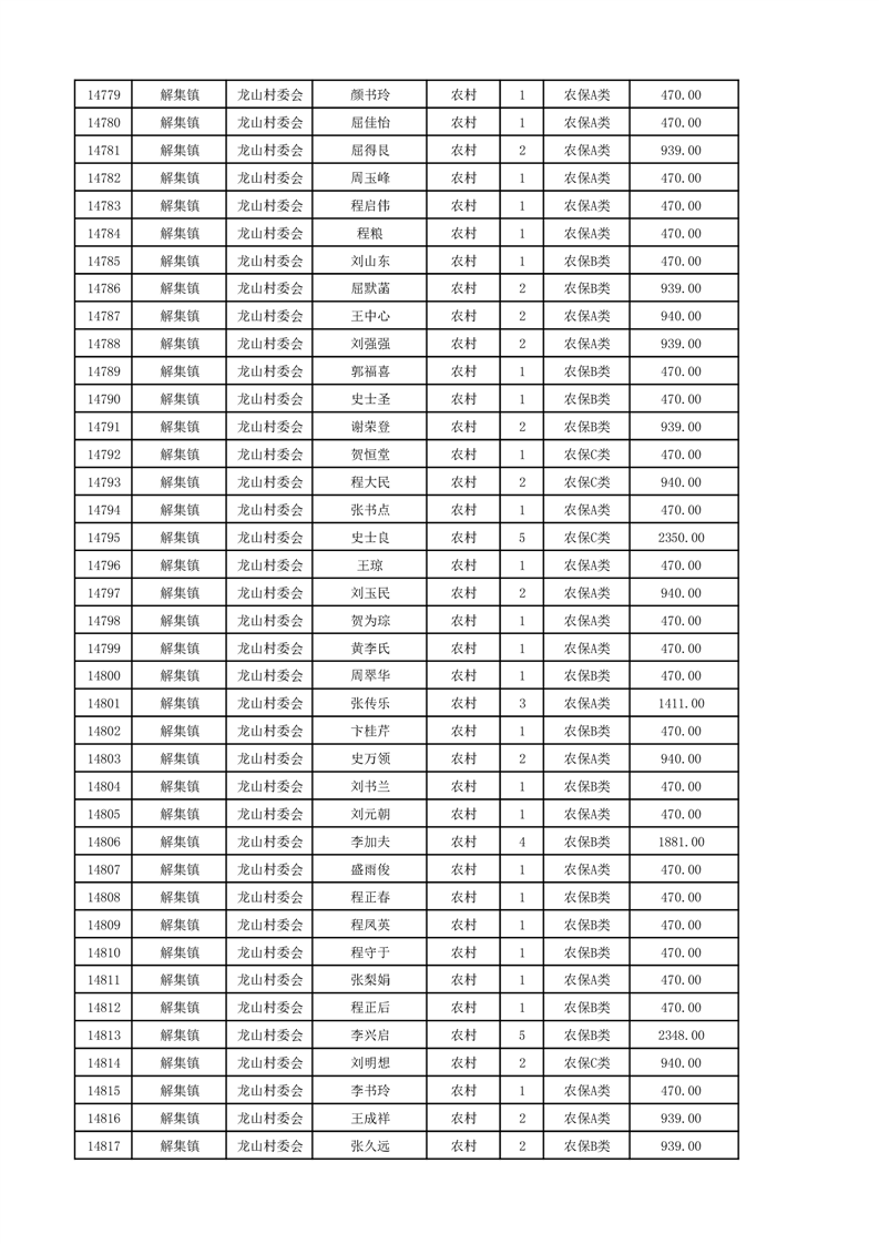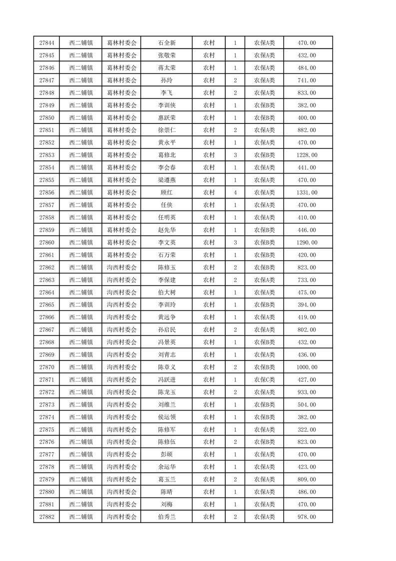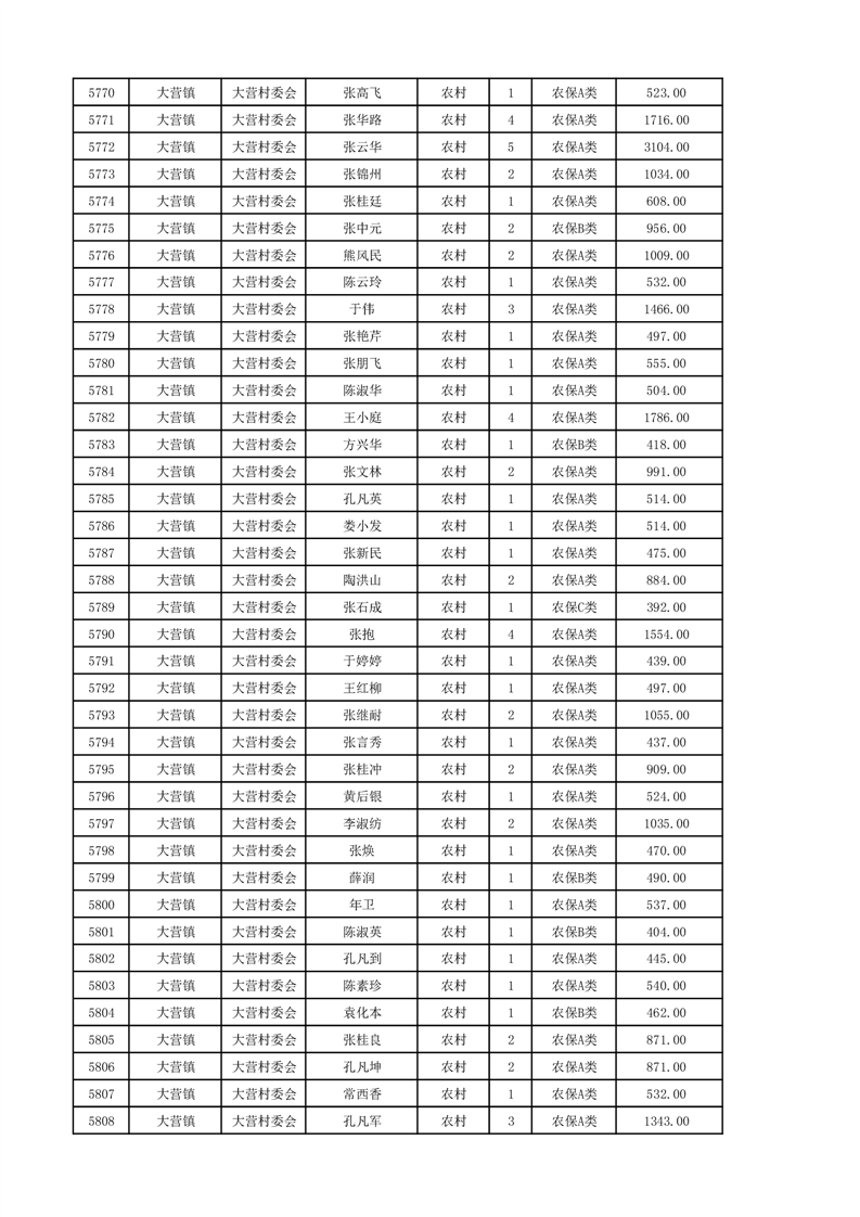 埇桥区2024年12月份农村低保花名册