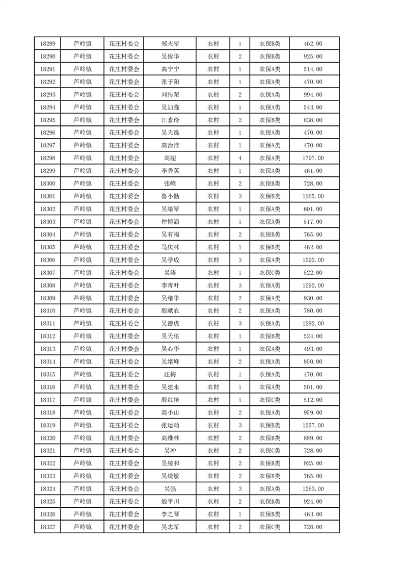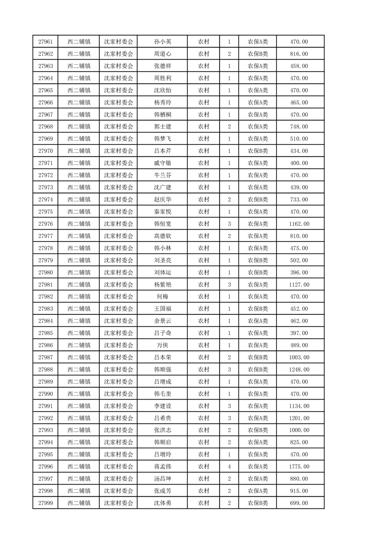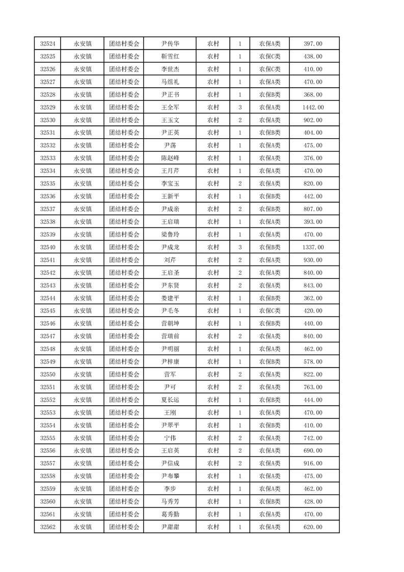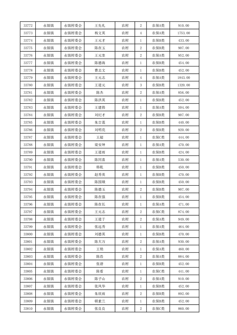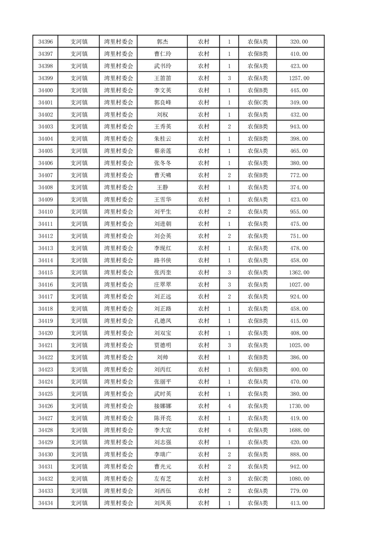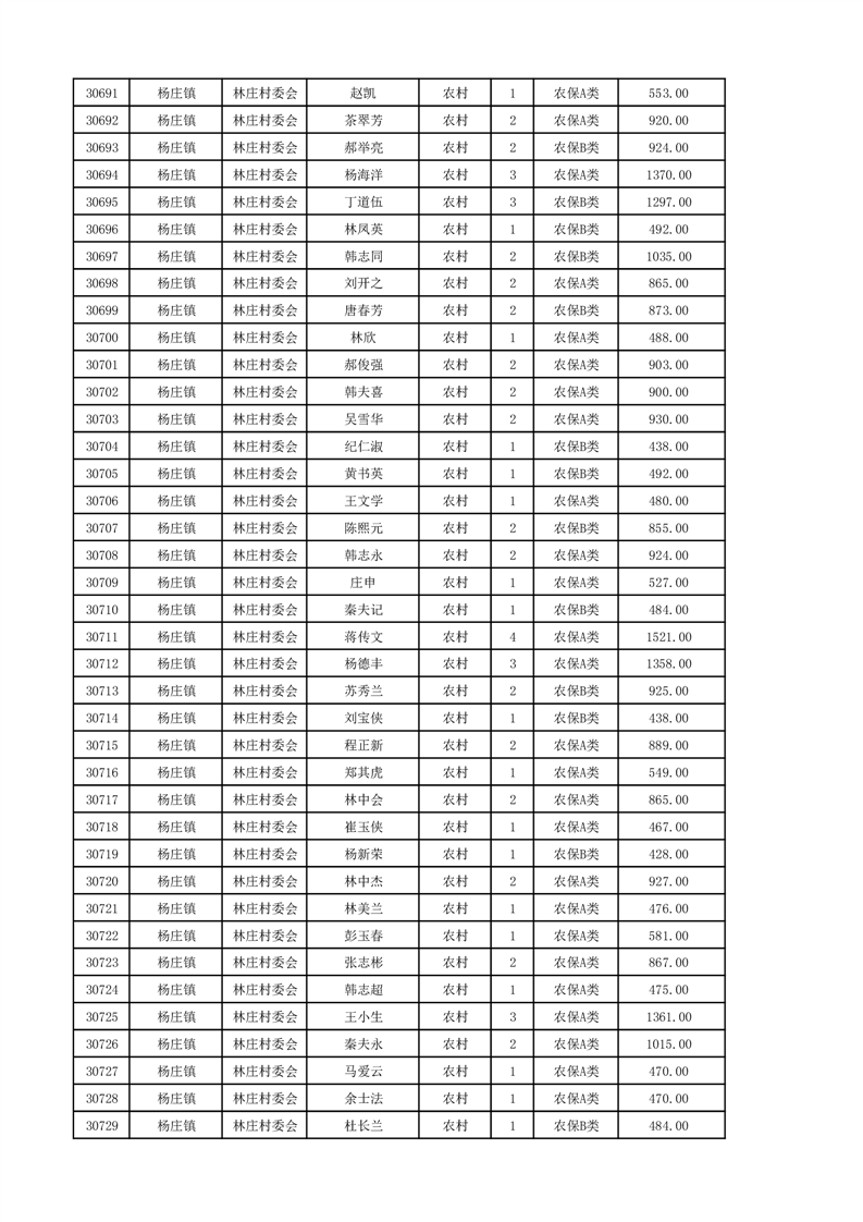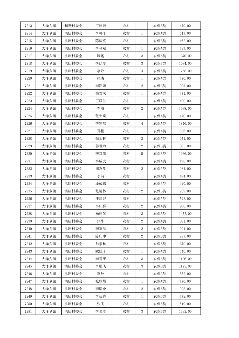 埇桥区2024年12月份农村低保花名册