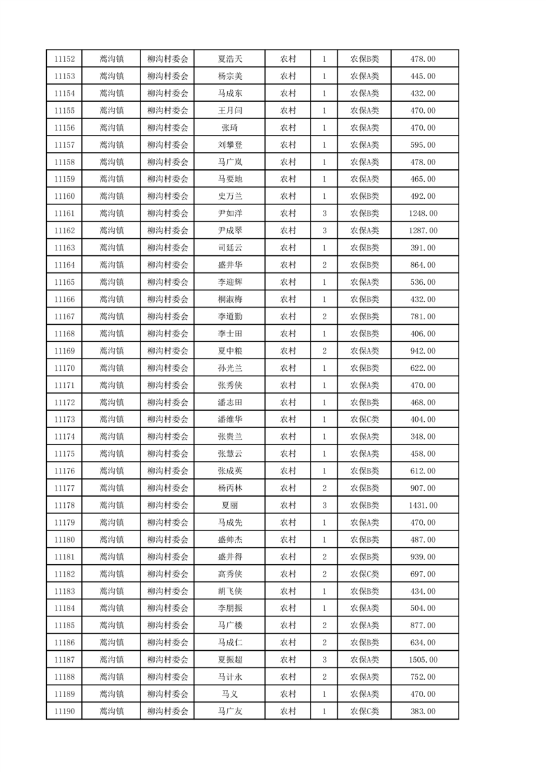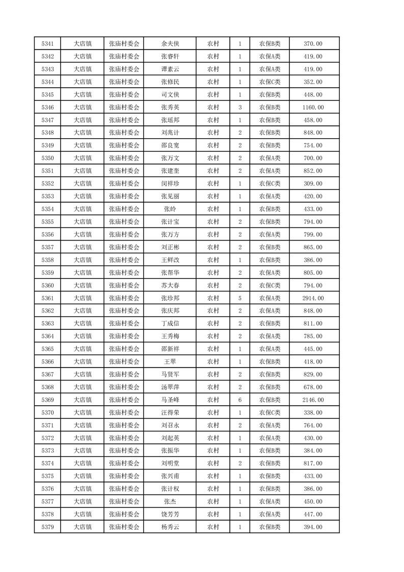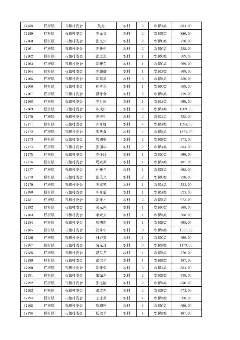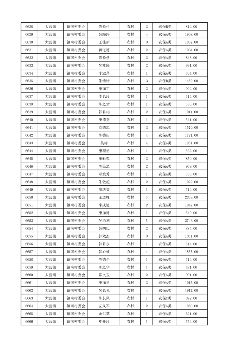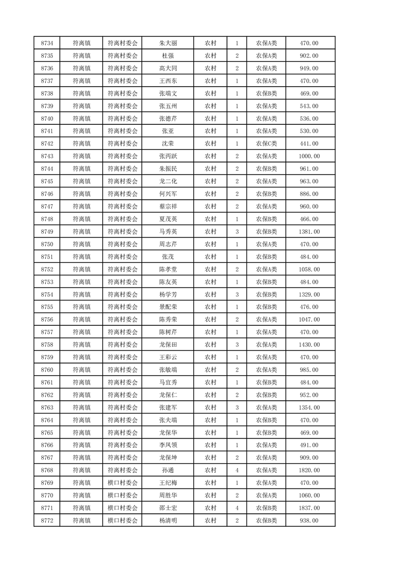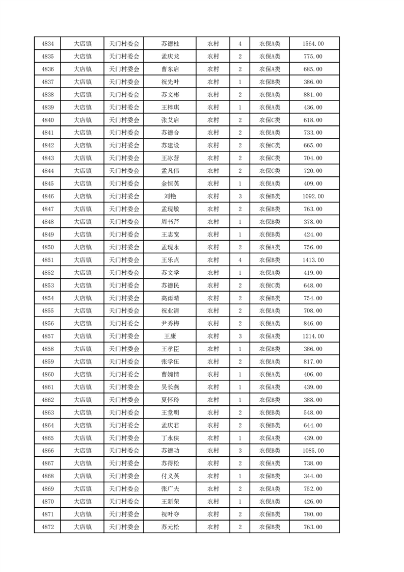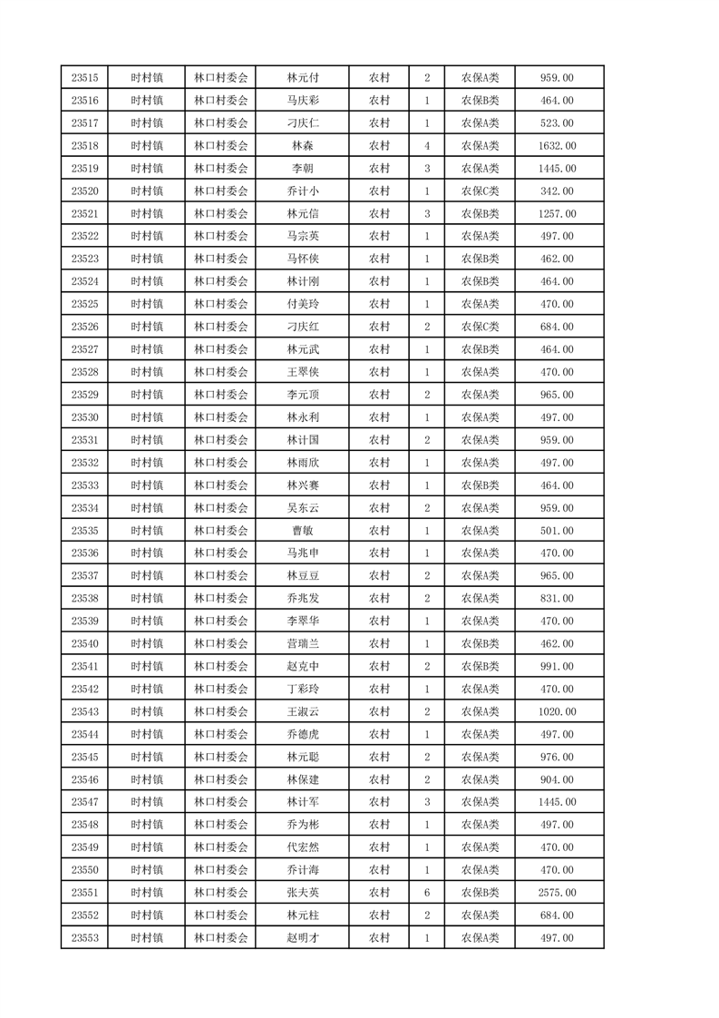 埇桥区2024年12月份农村低保花名册