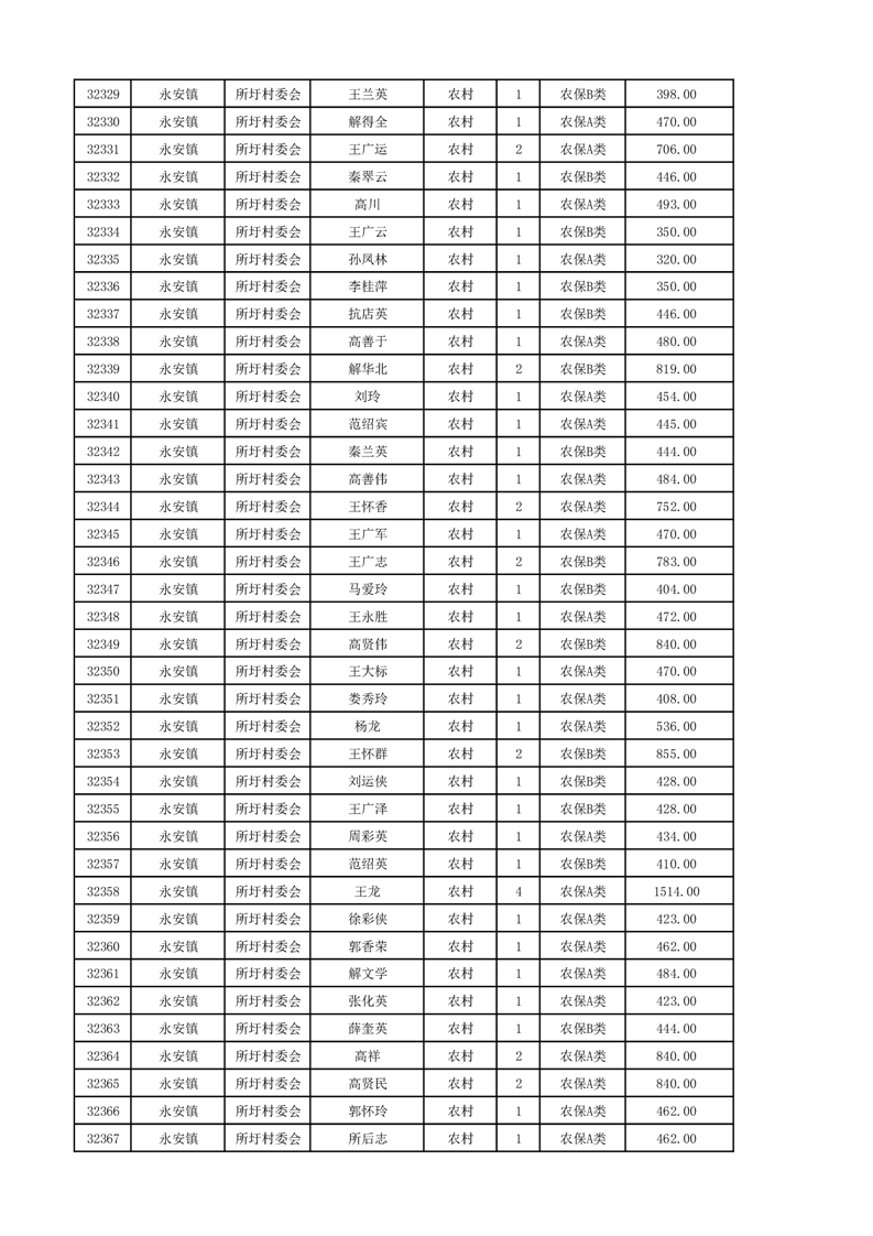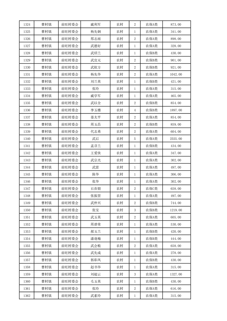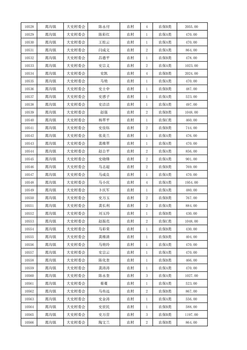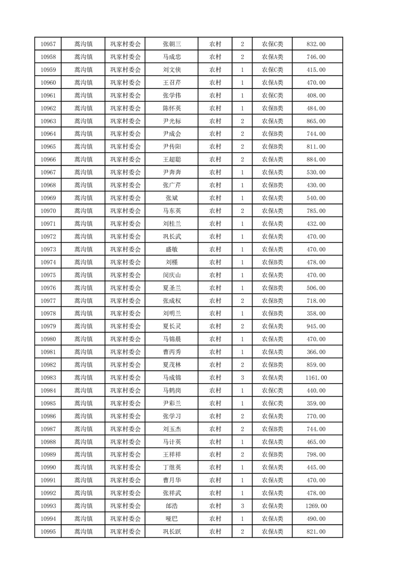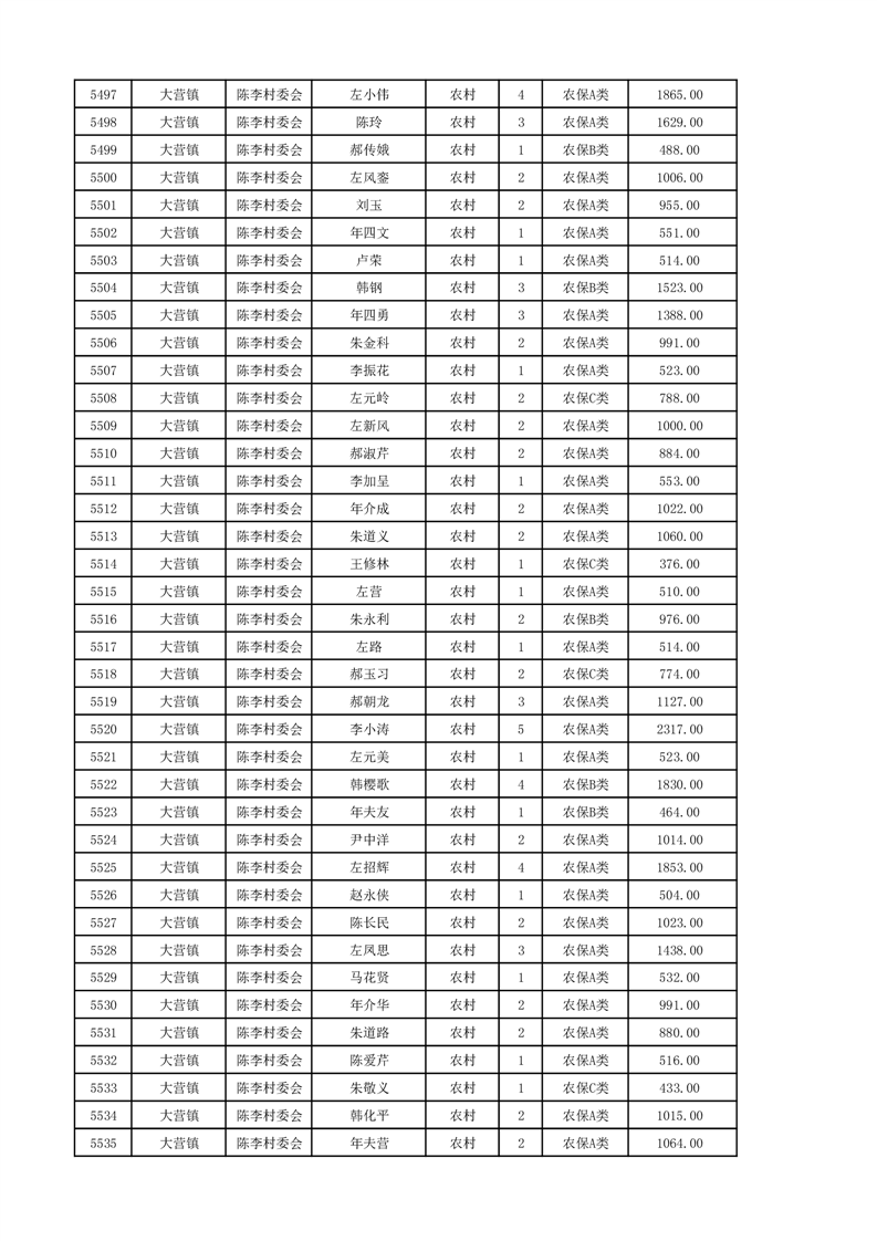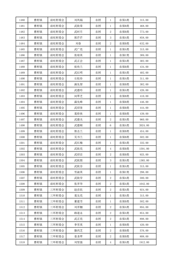 埇桥区2024年12月份农村低保花名册