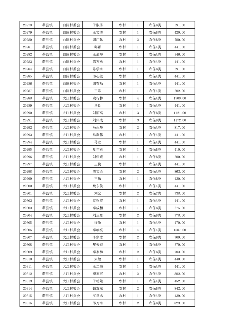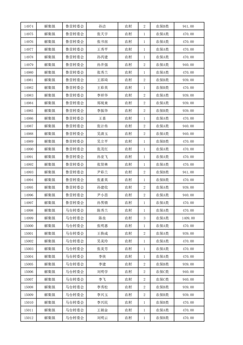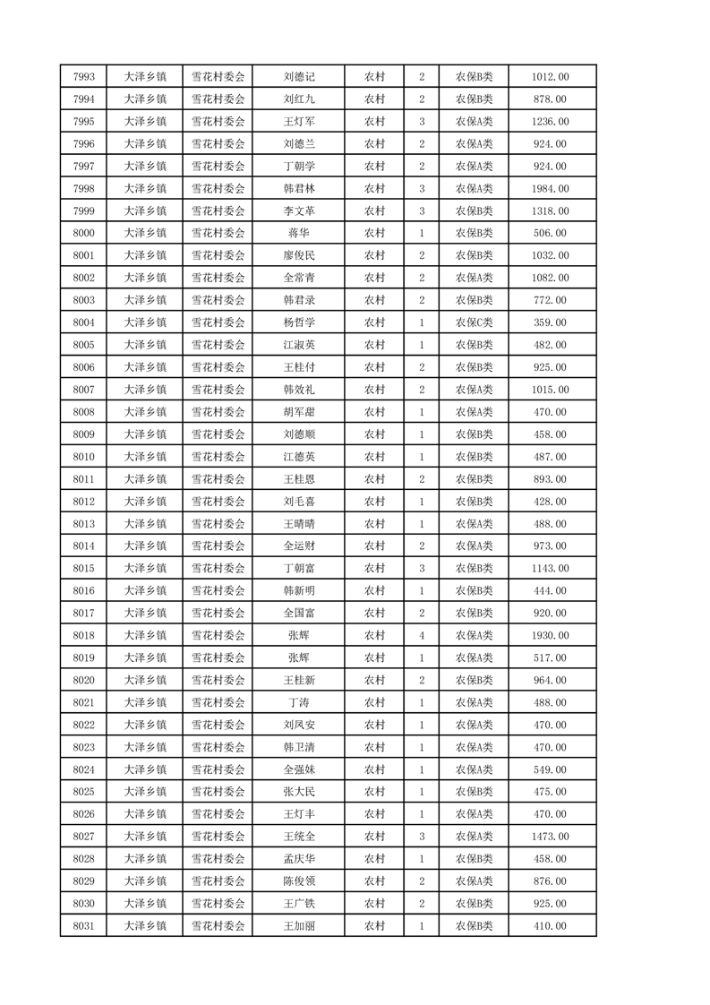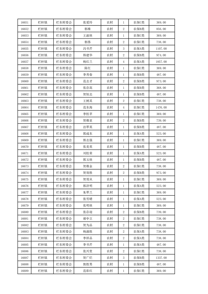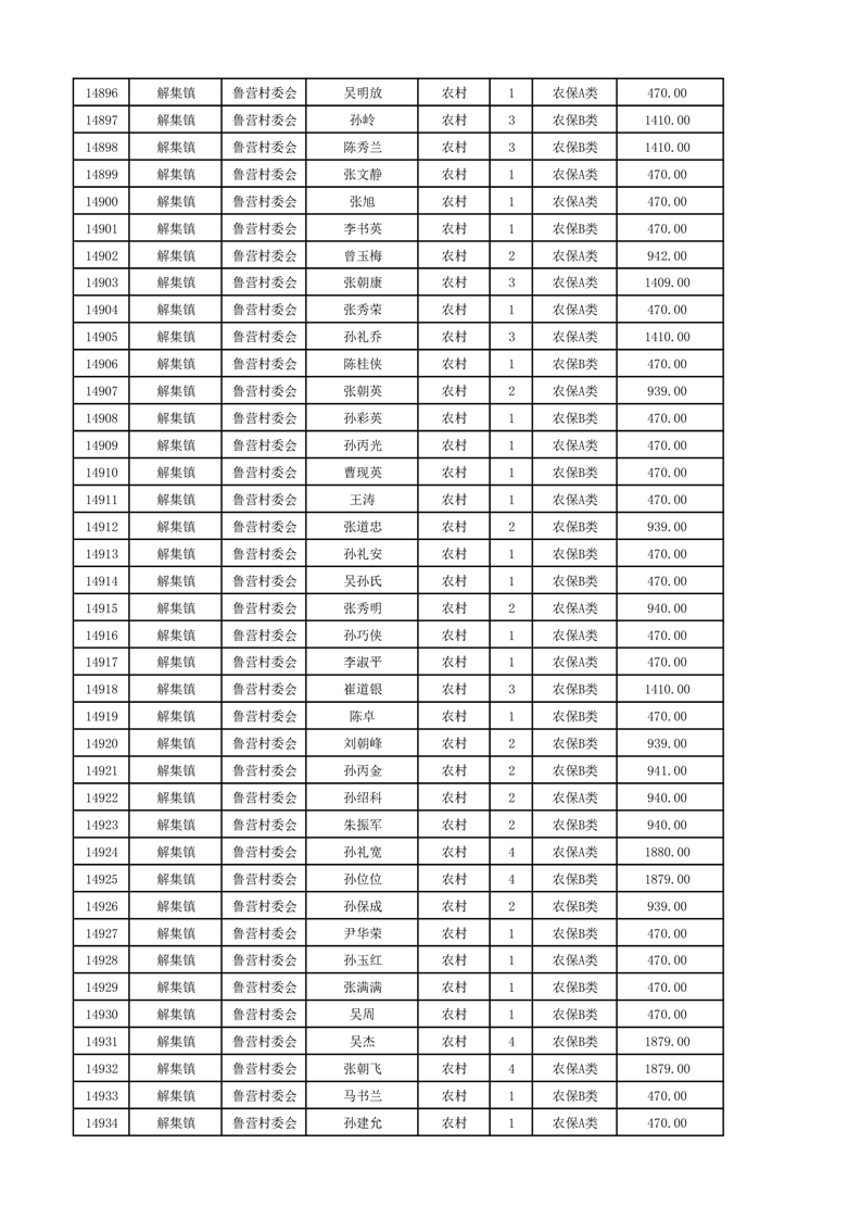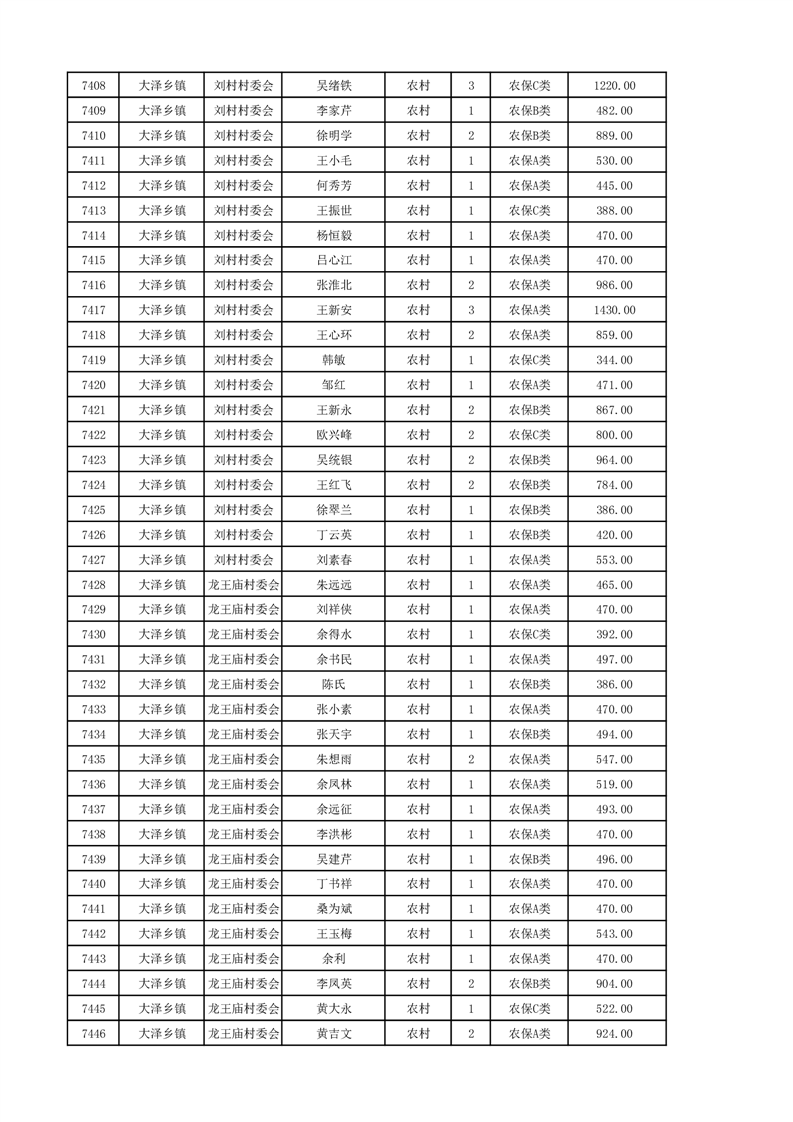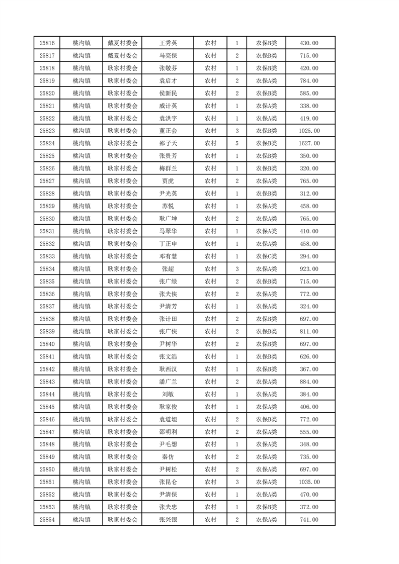 埇桥区2024年12月份农村低保花名册