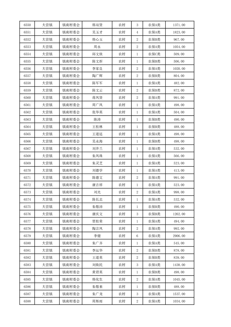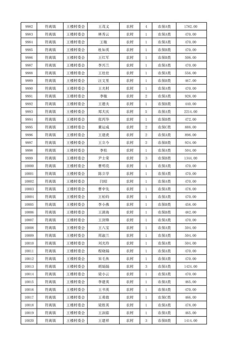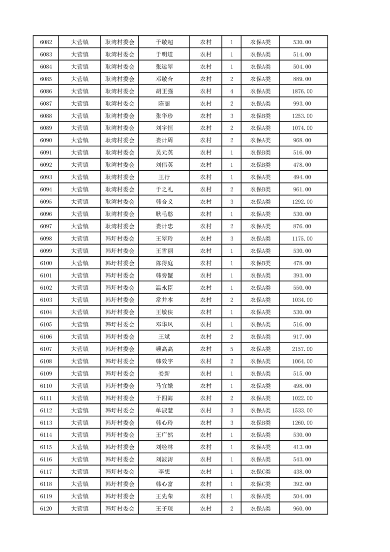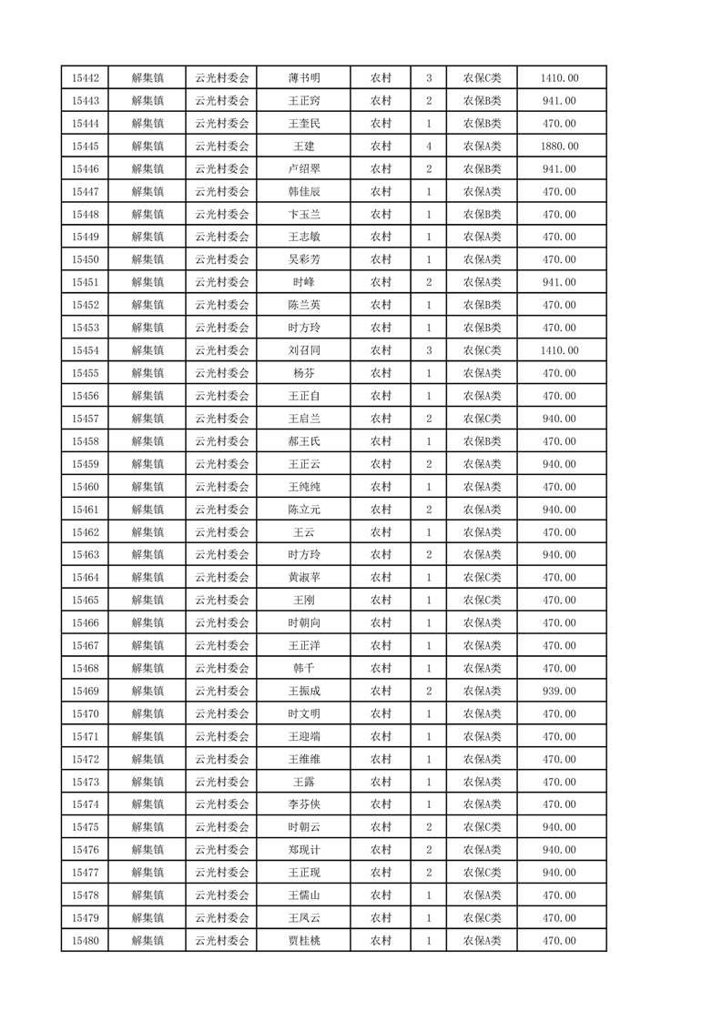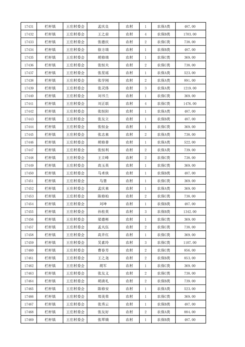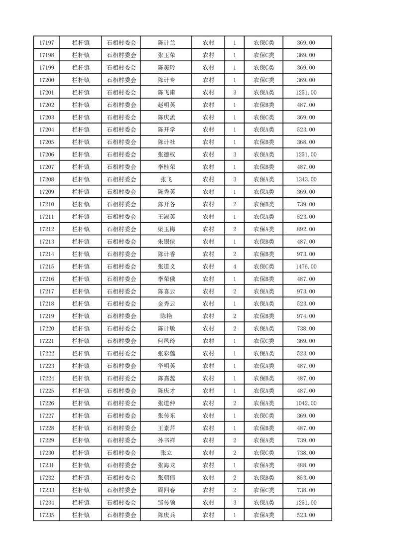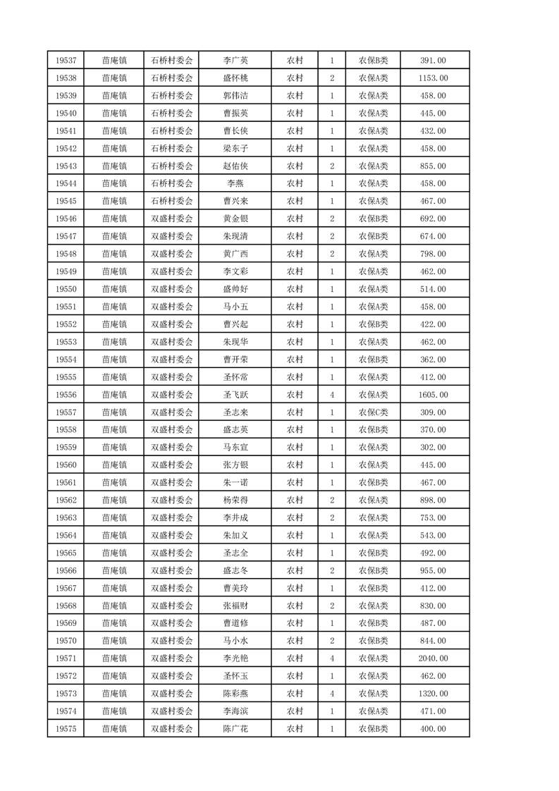 埇桥区2024年12月份农村低保花名册