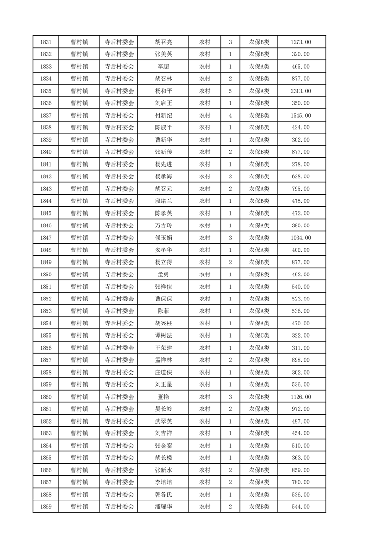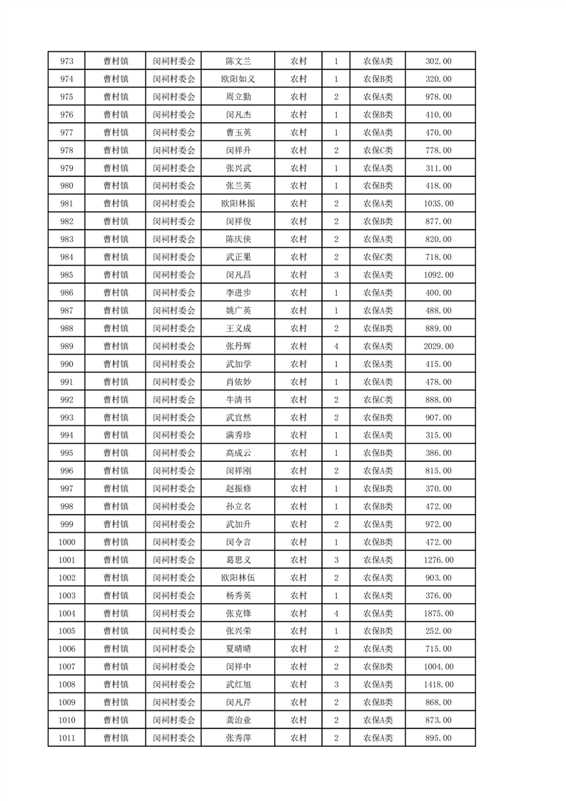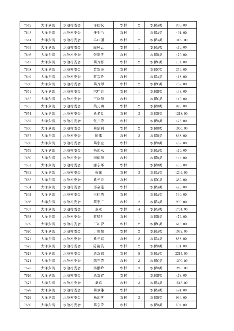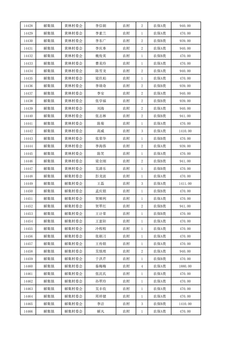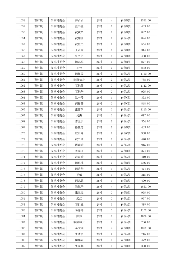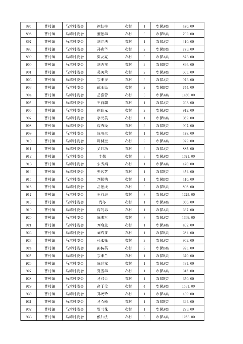埇桥区2024年12月份农村低保花名册