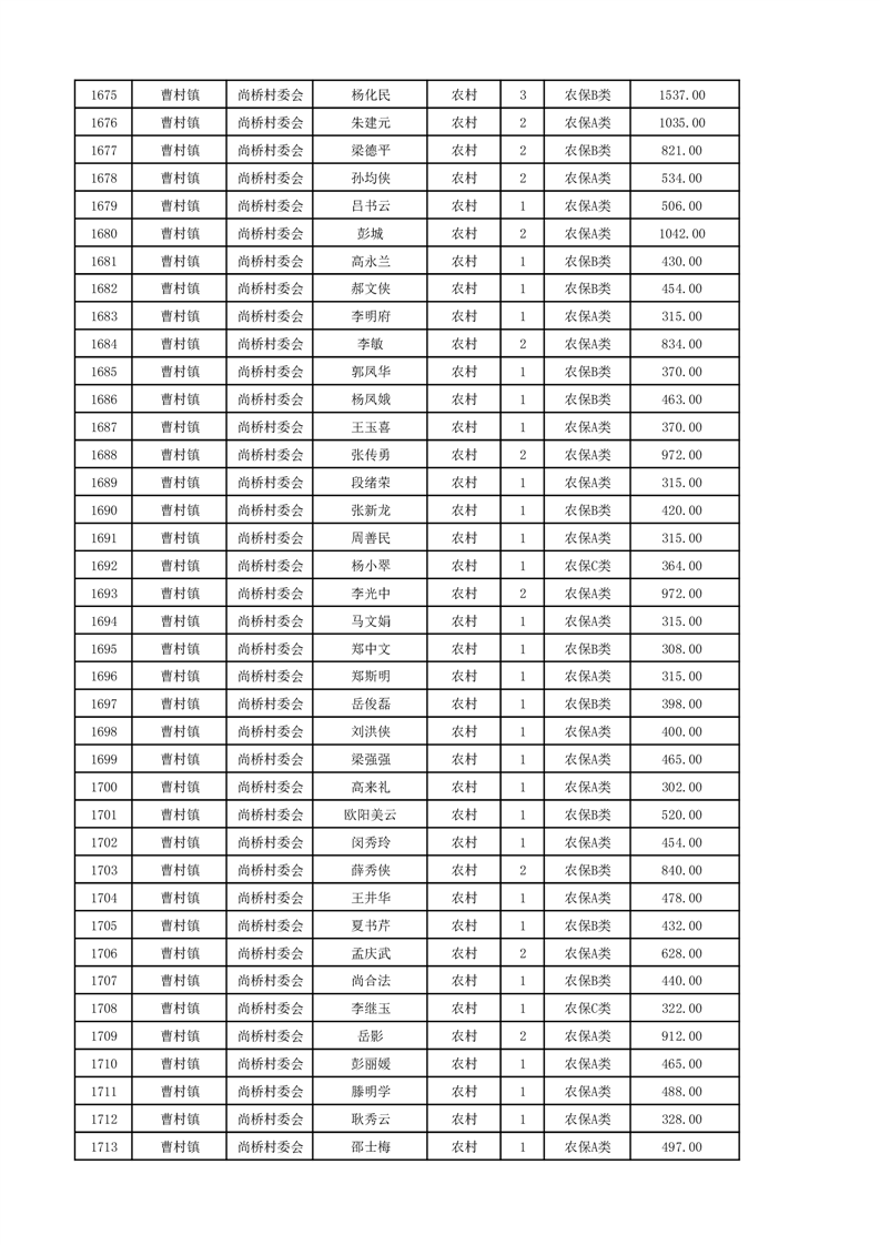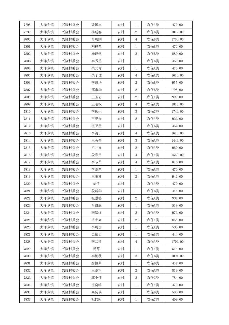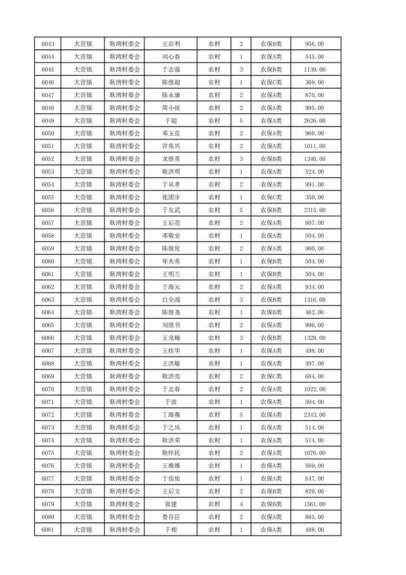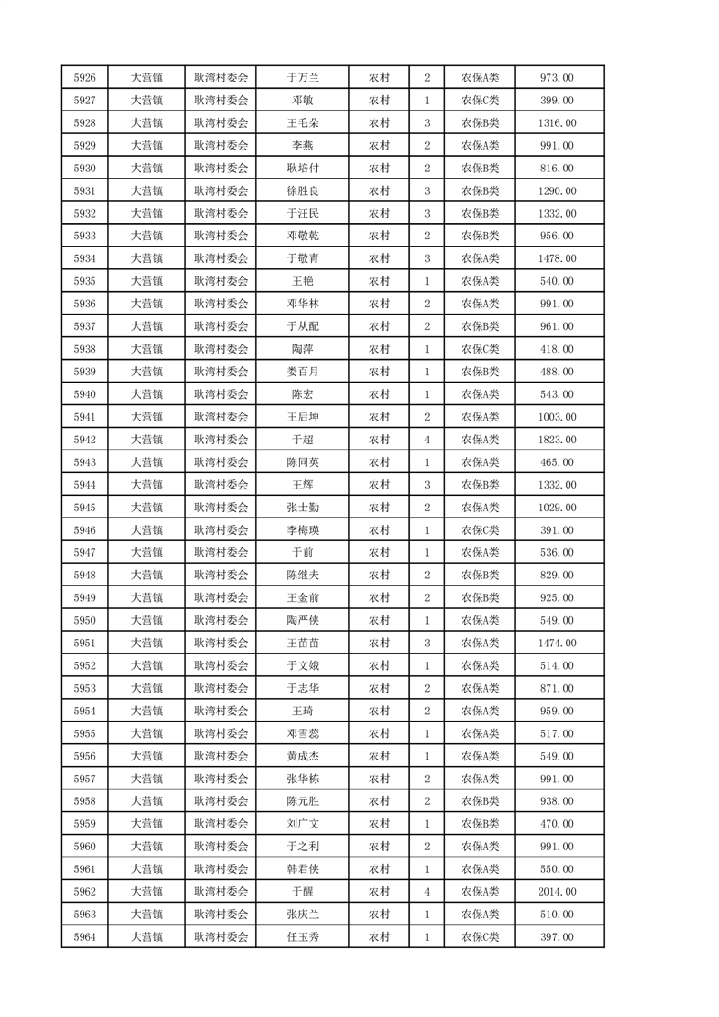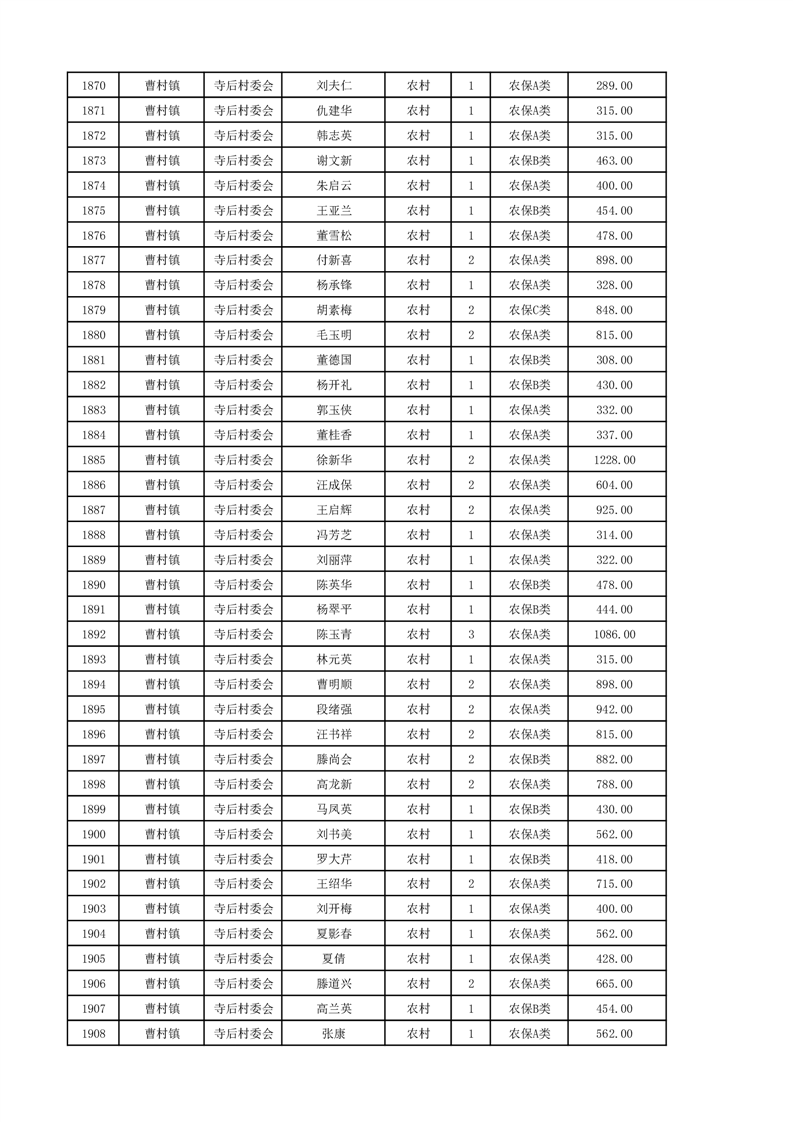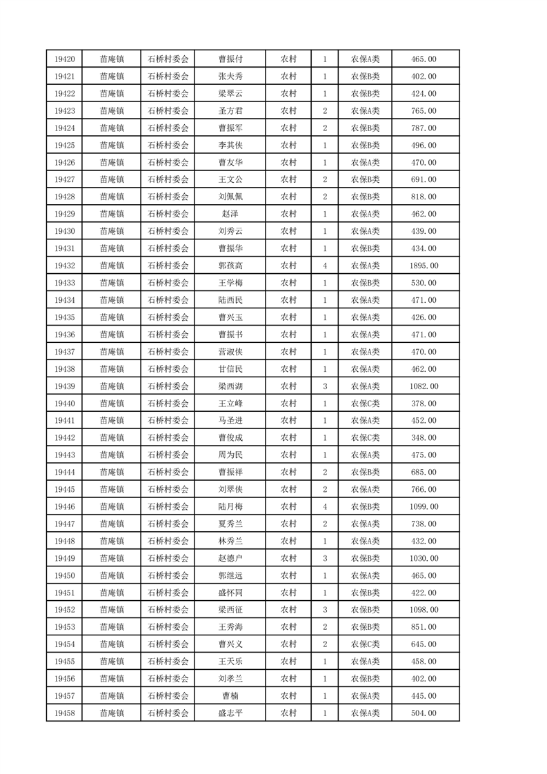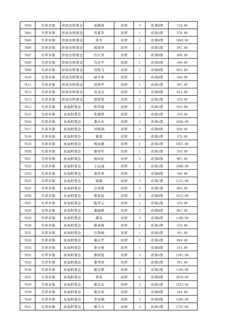 埇桥区2024年12月份农村低保花名册
