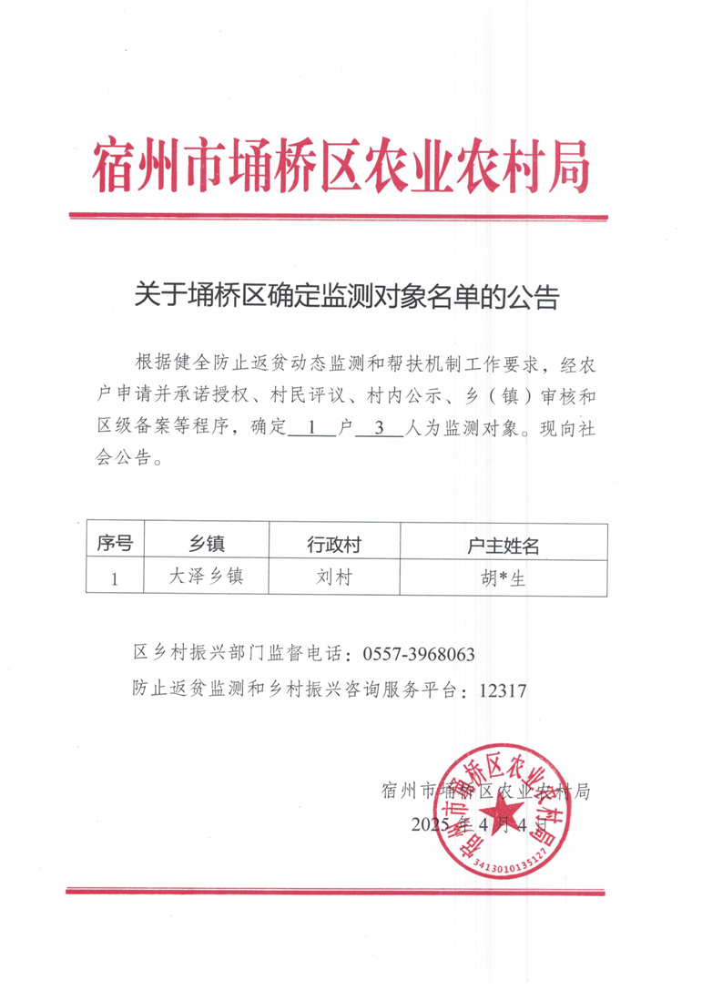 关于埇桥区确定监测对象名单的公告