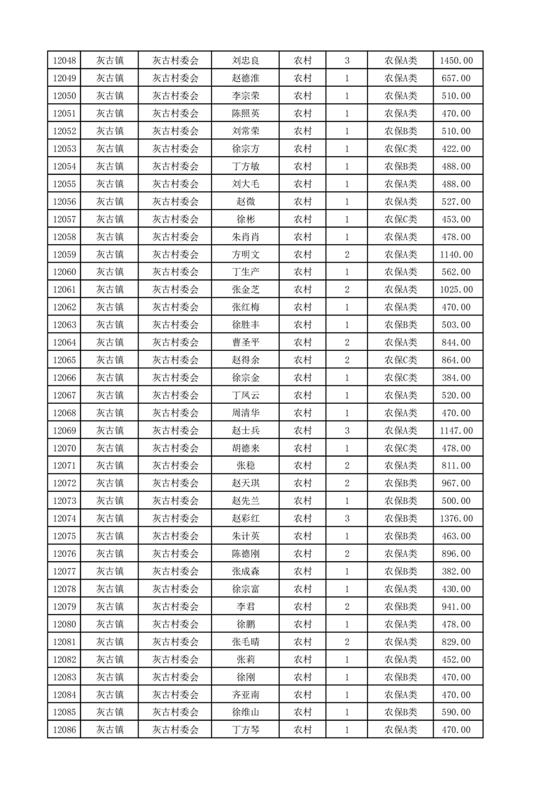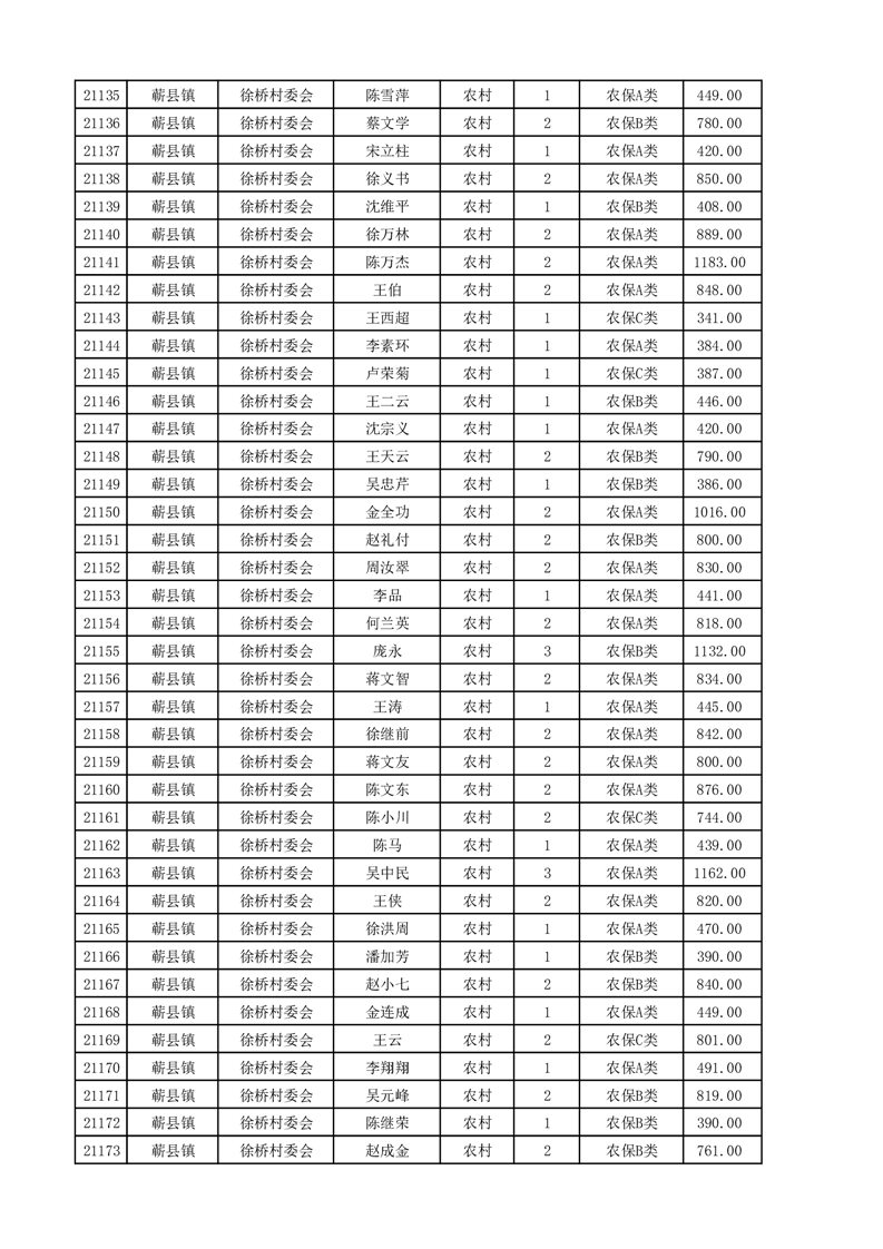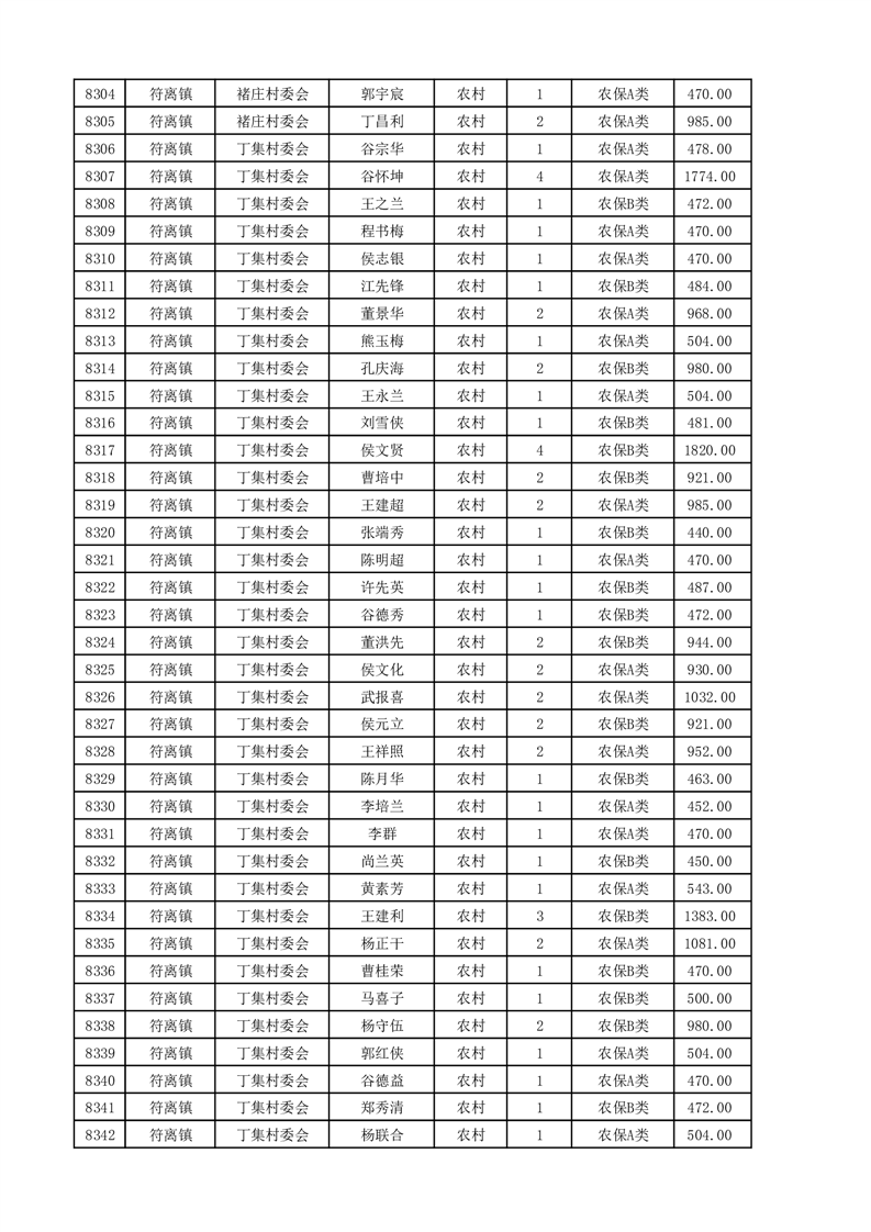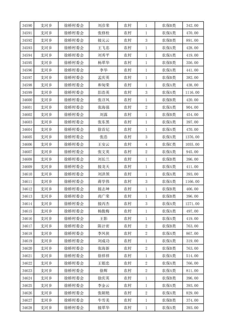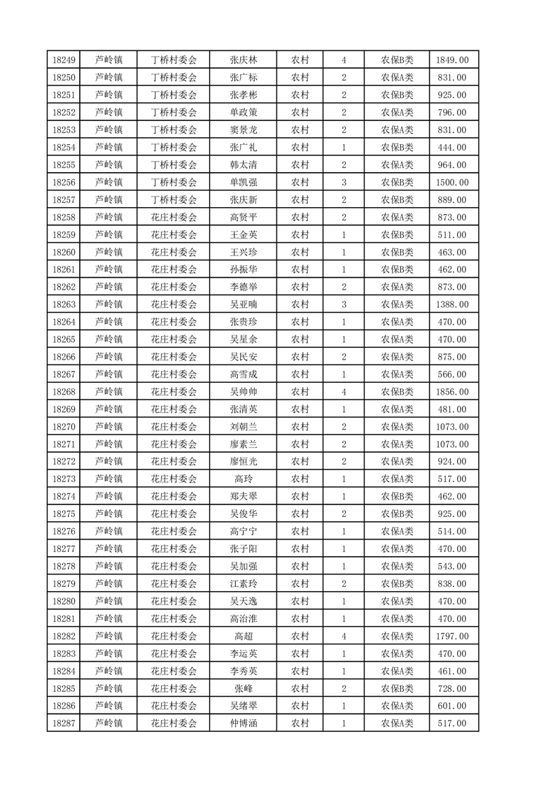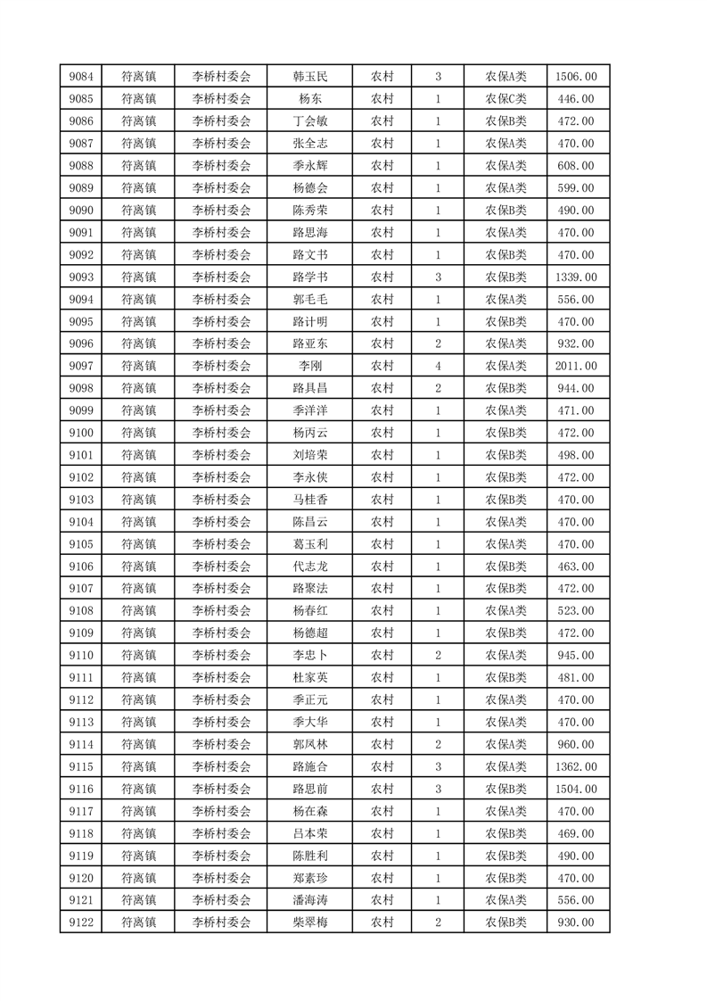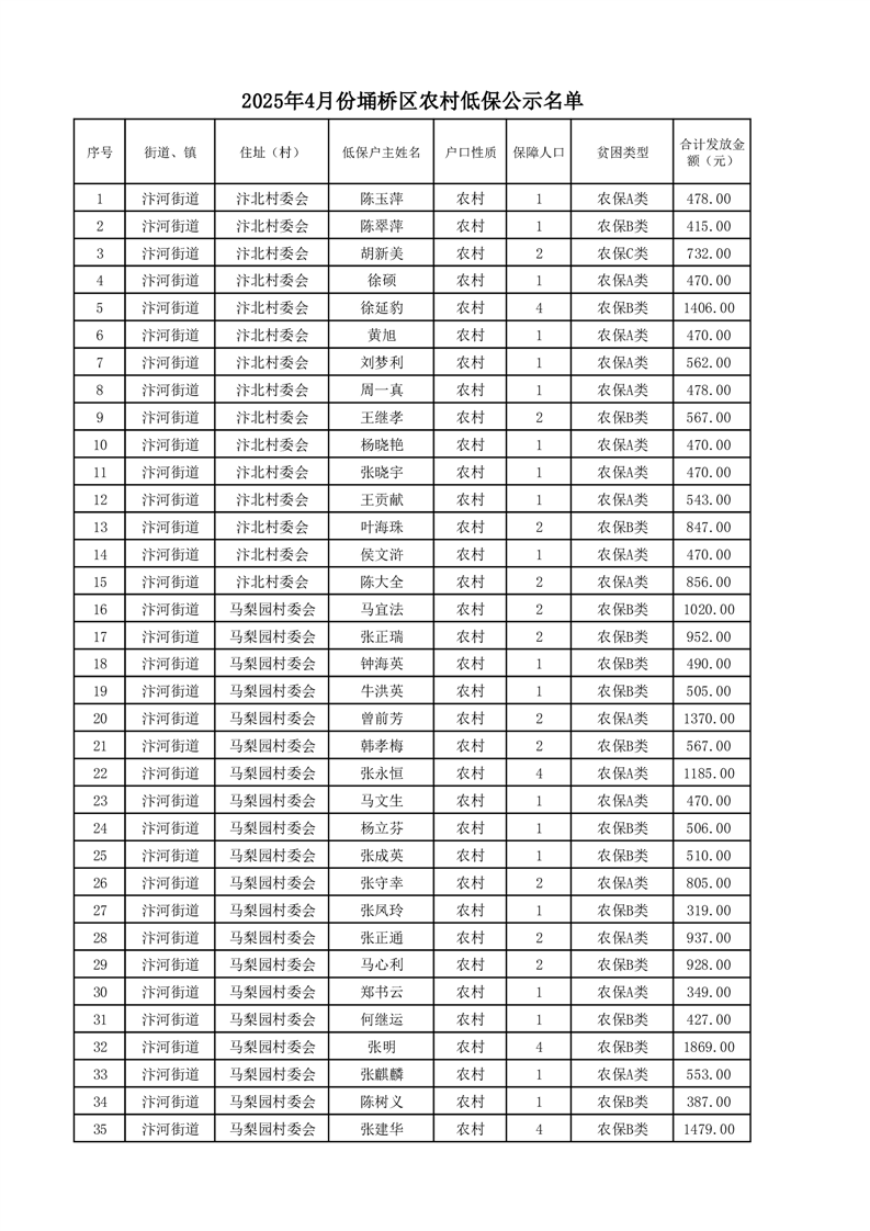 埇桥区2025年4月份农村低保花名册