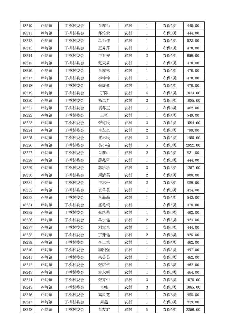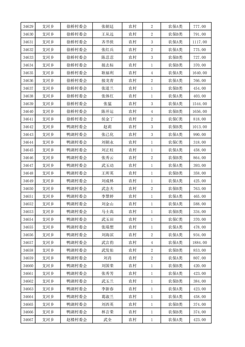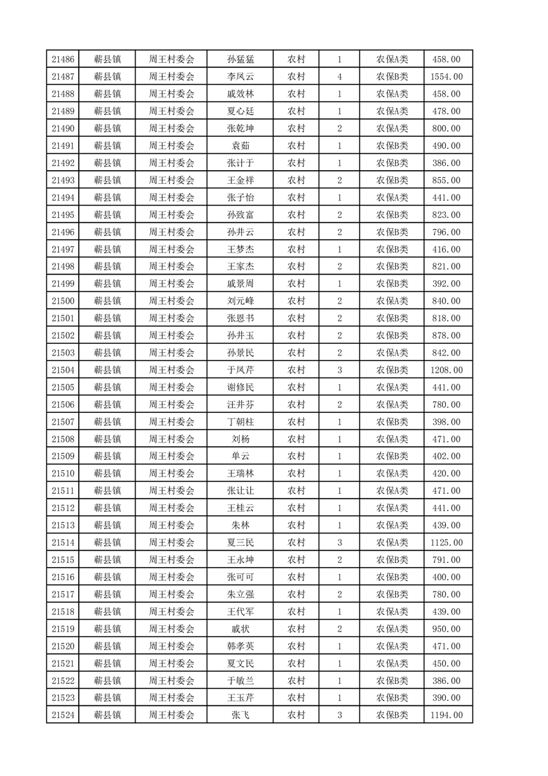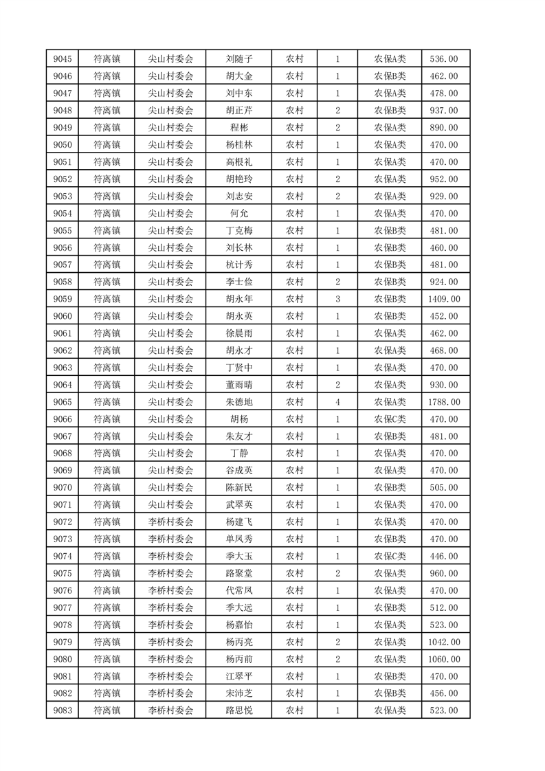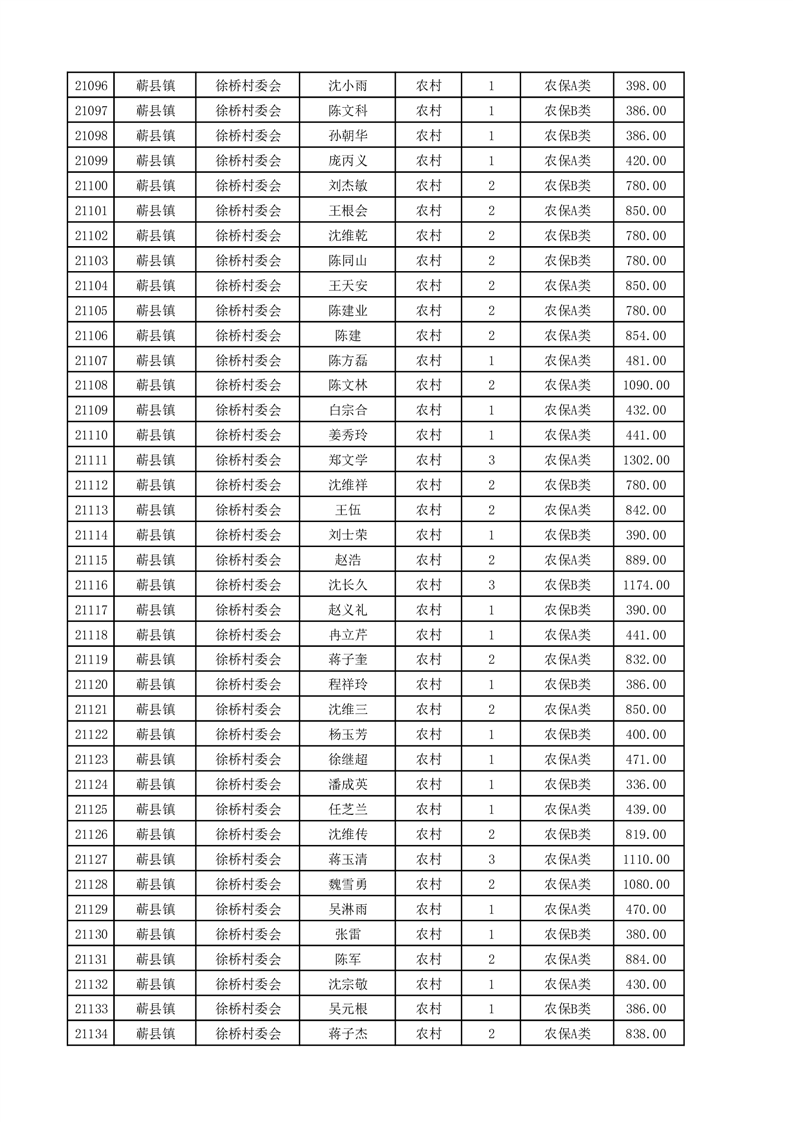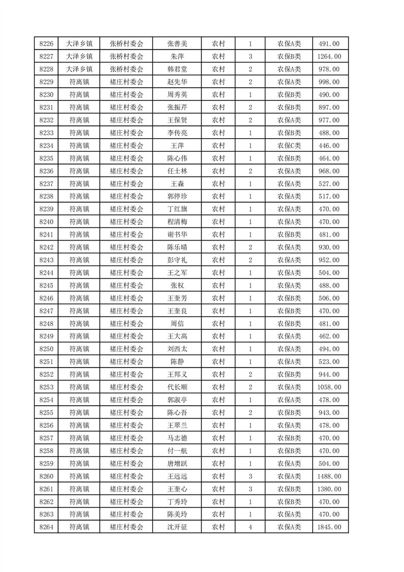 埇桥区2025年4月份农村低保花名册