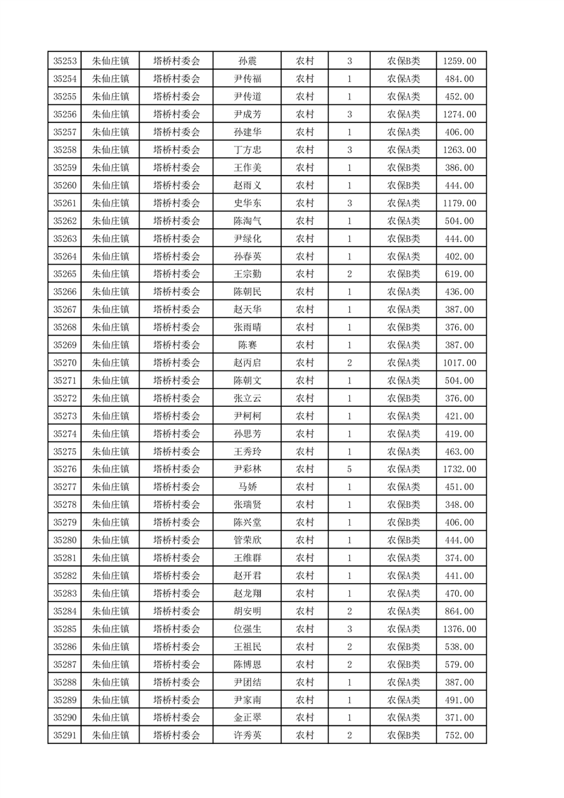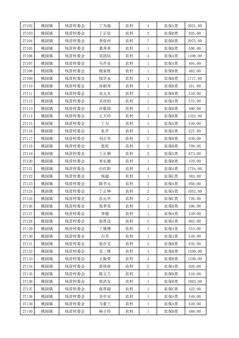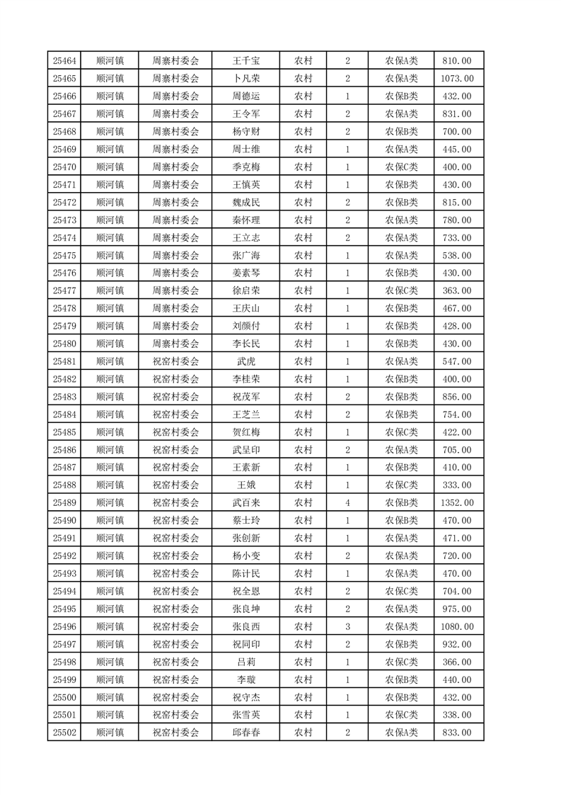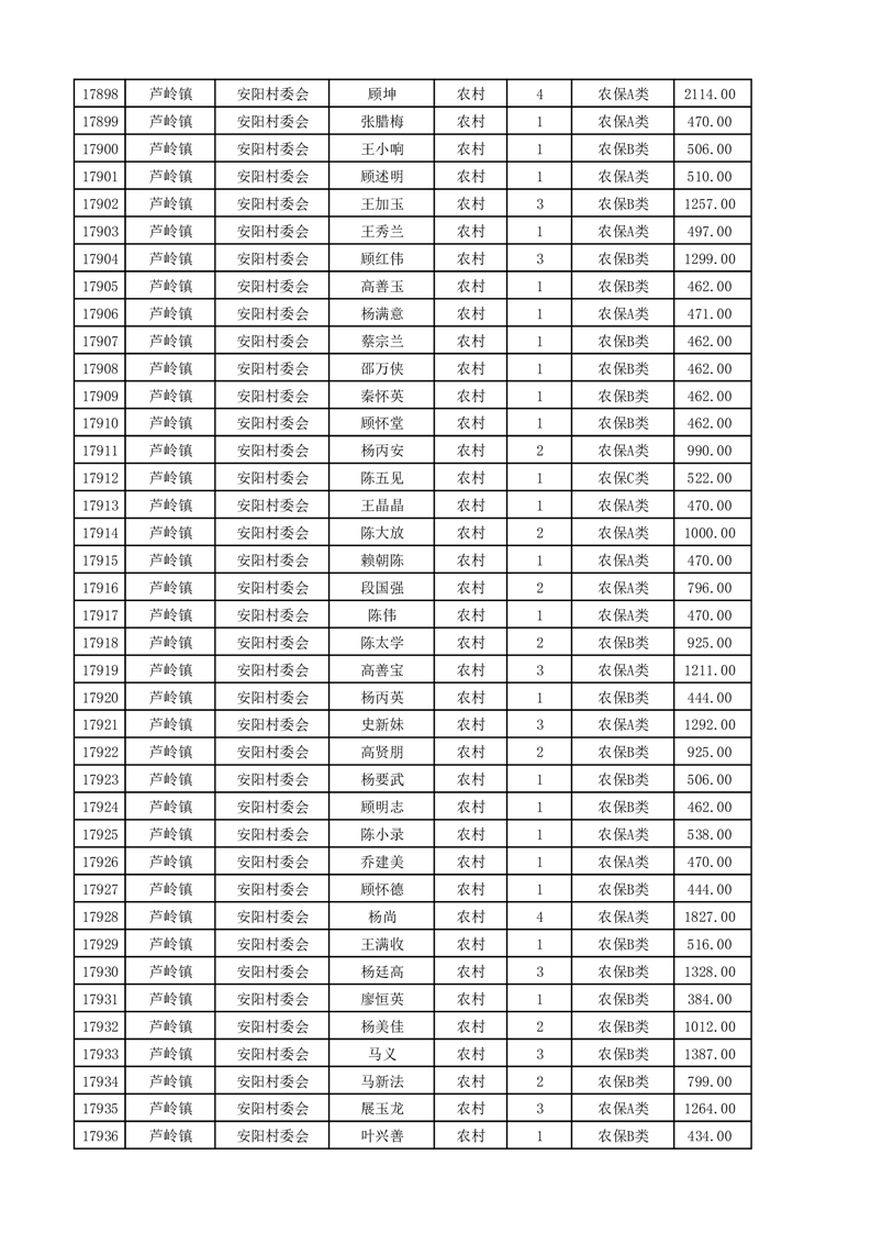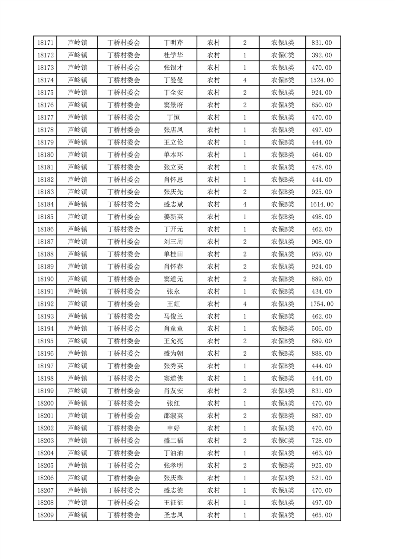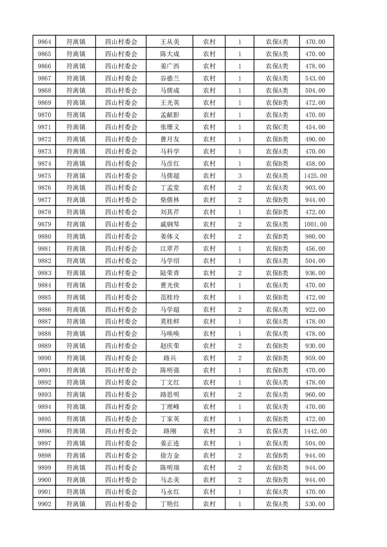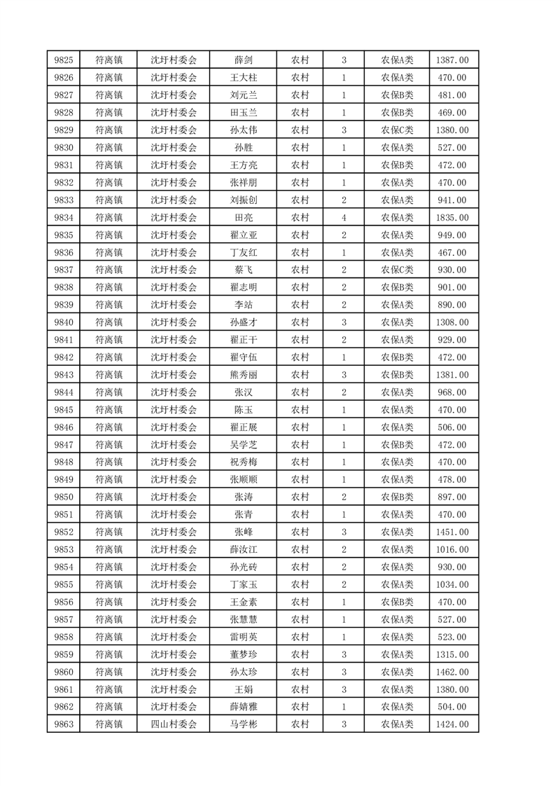 埇桥区2025年4月份农村低保花名册