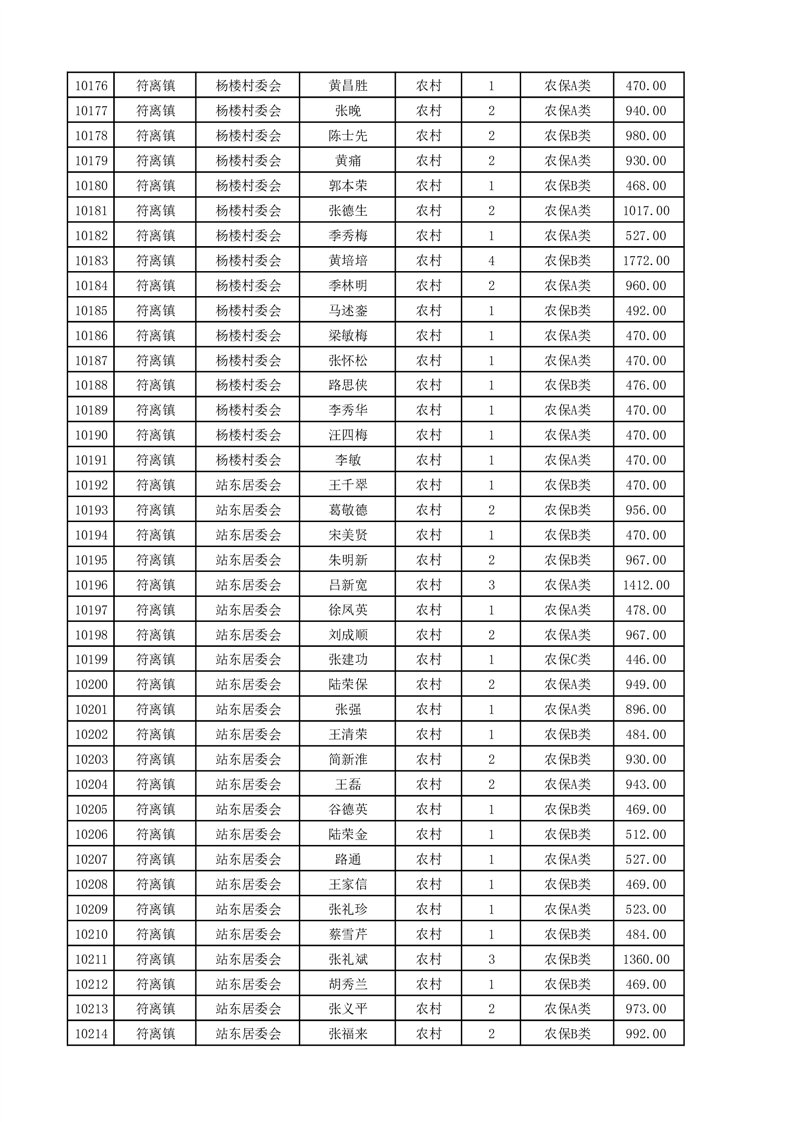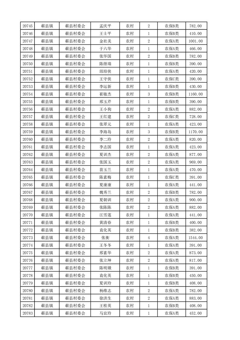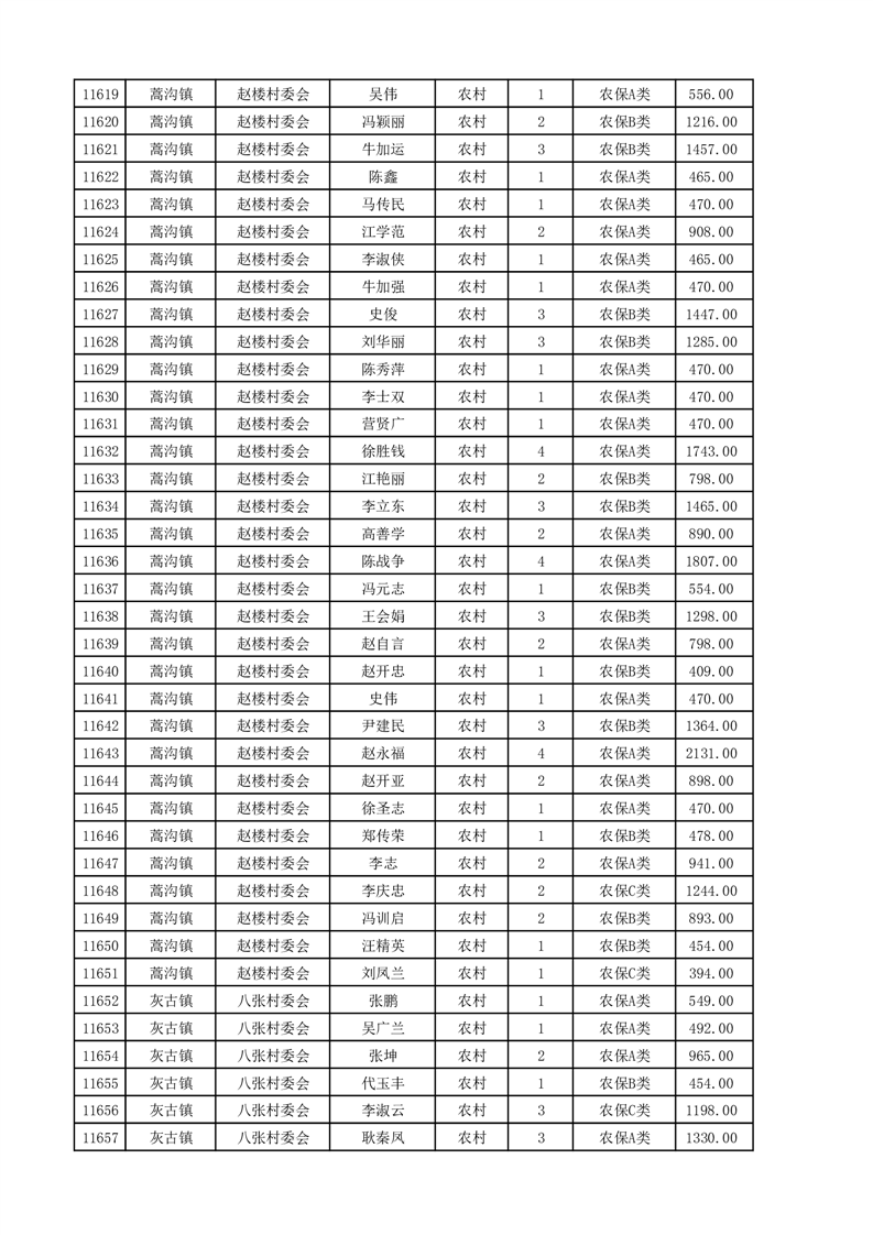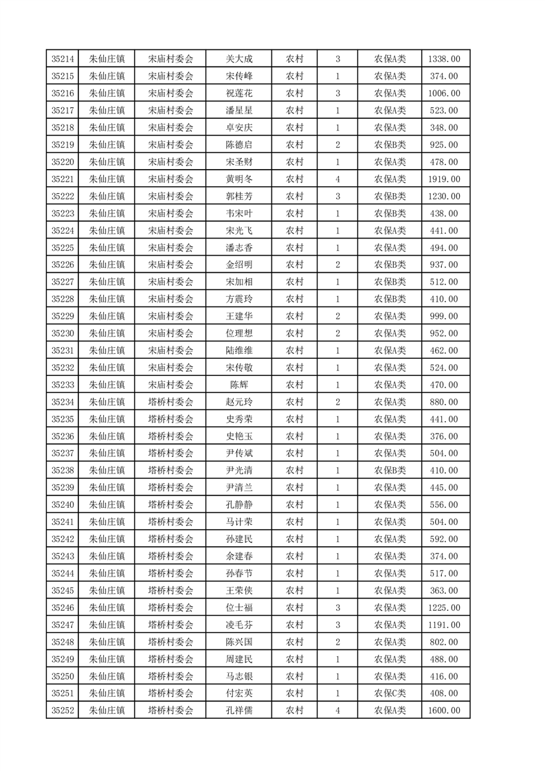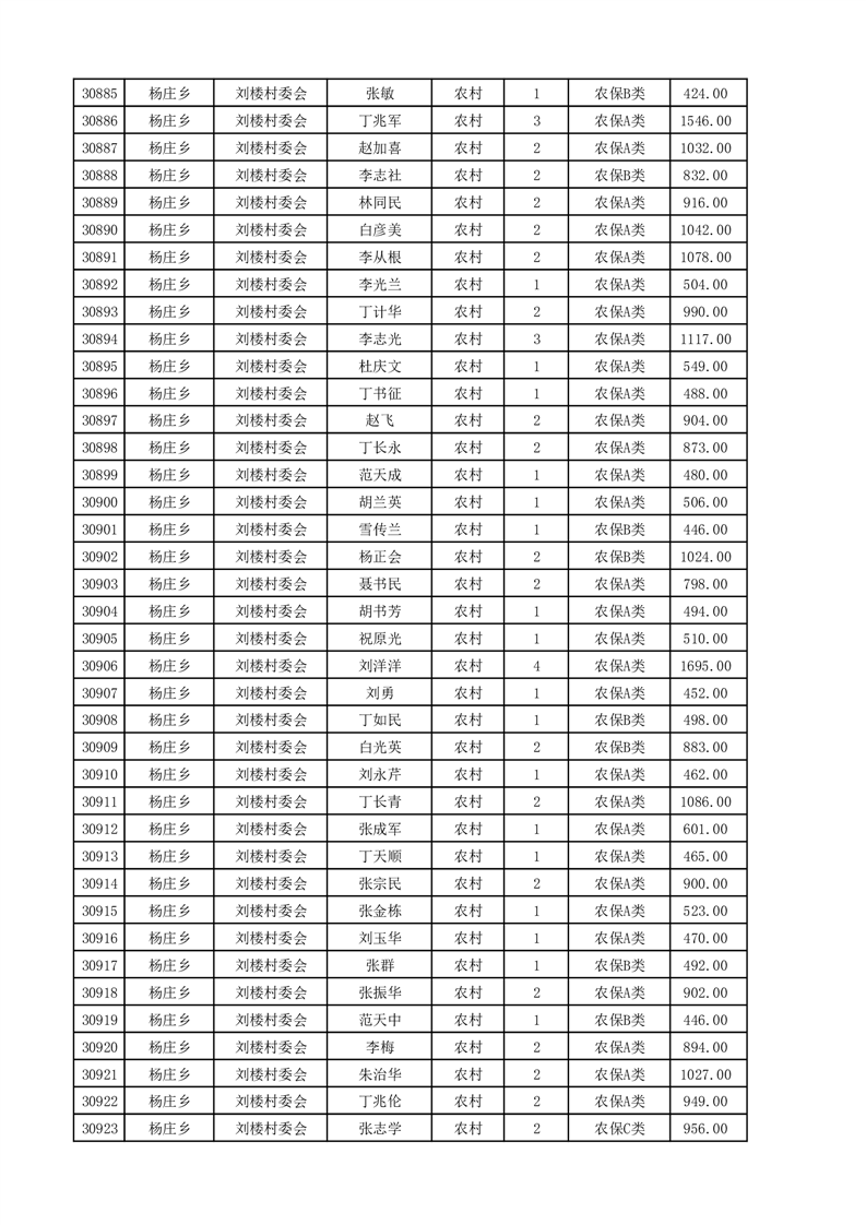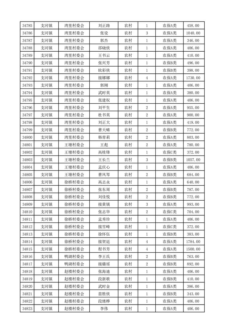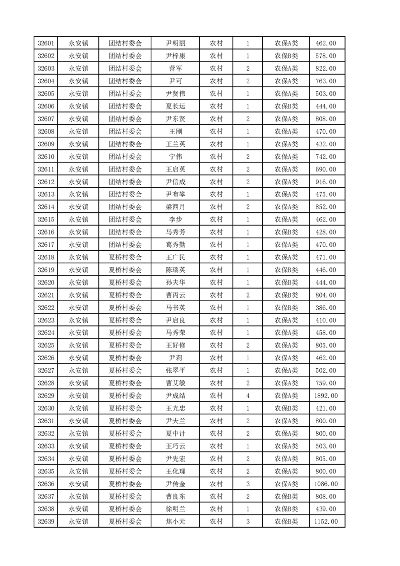 埇桥区2025年4月份农村低保花名册