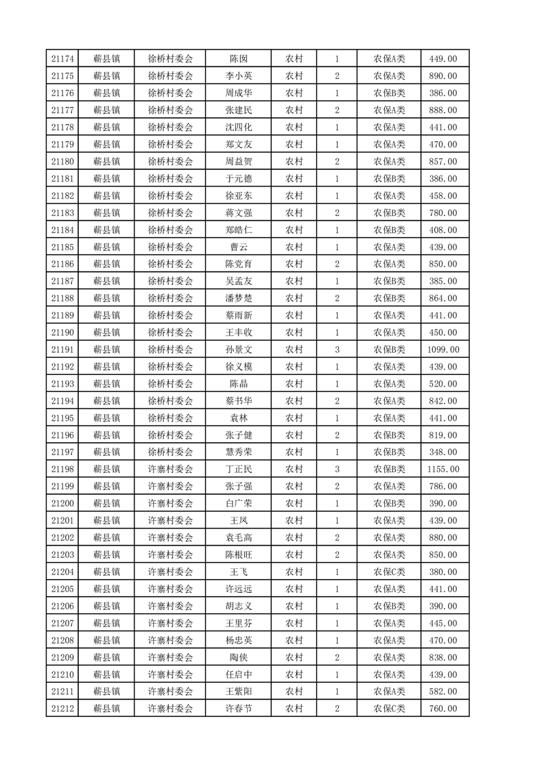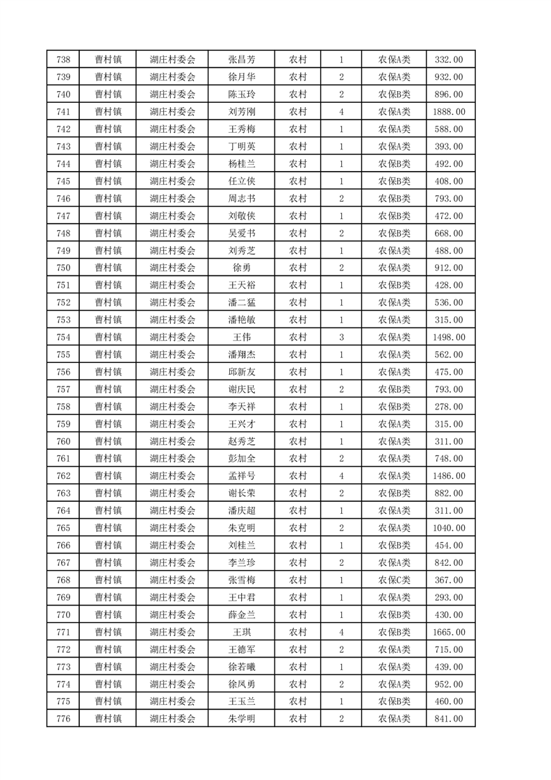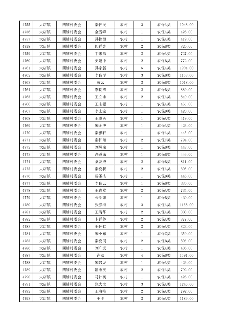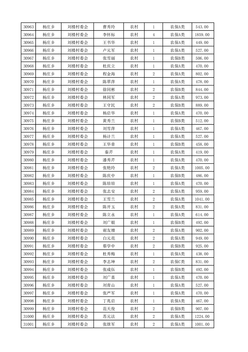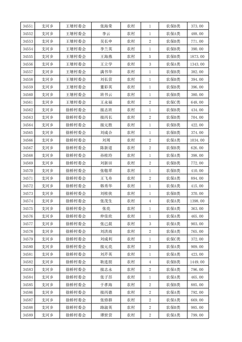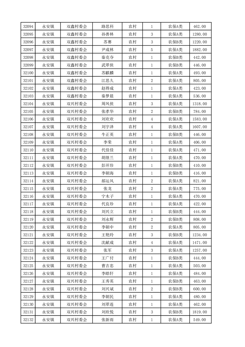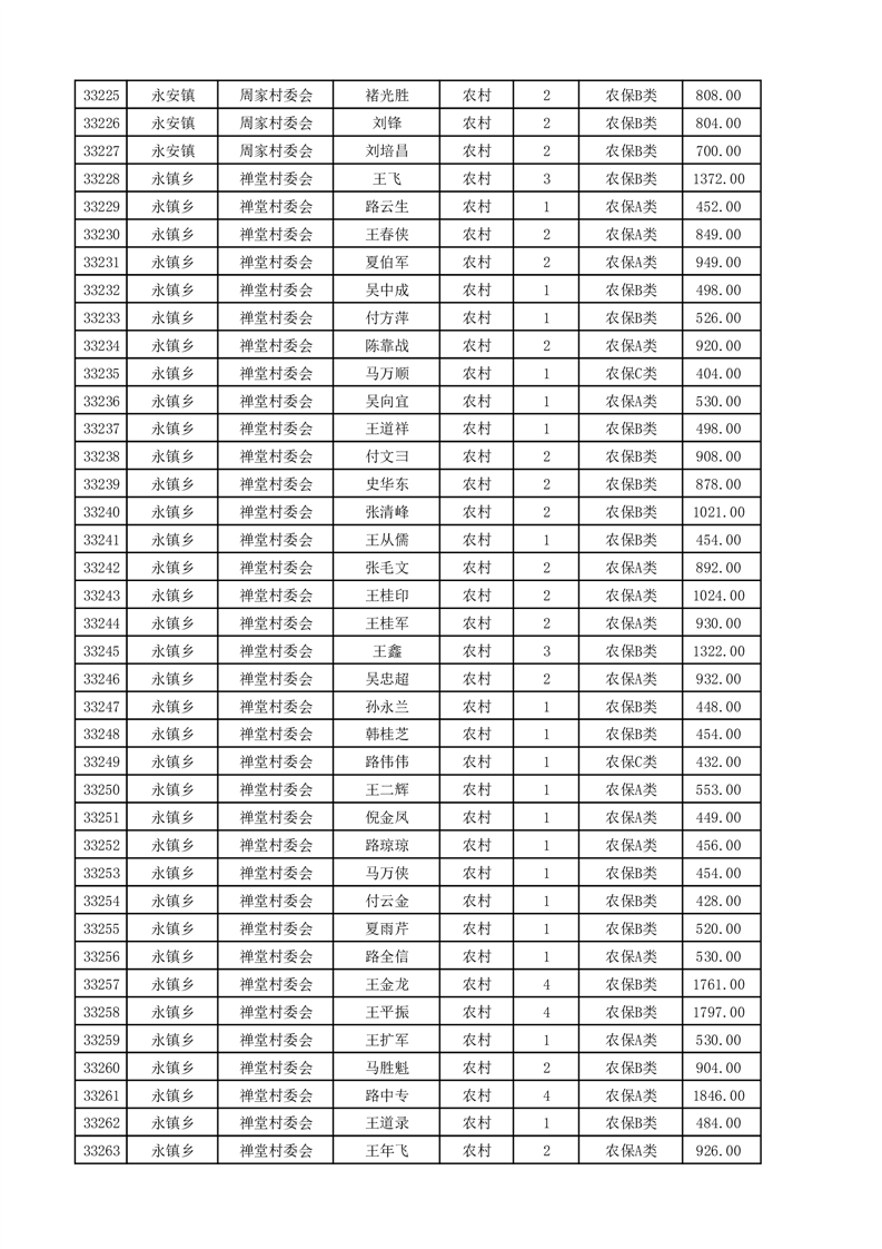 埇桥区2025年4月份农村低保花名册
