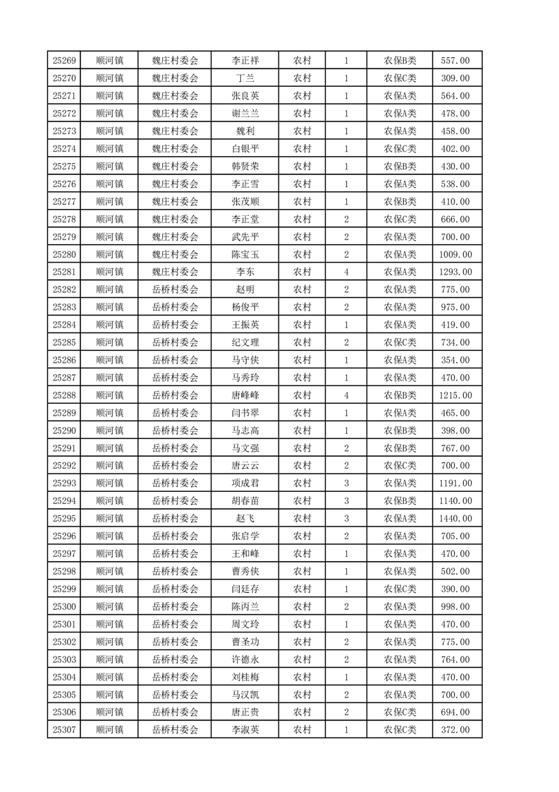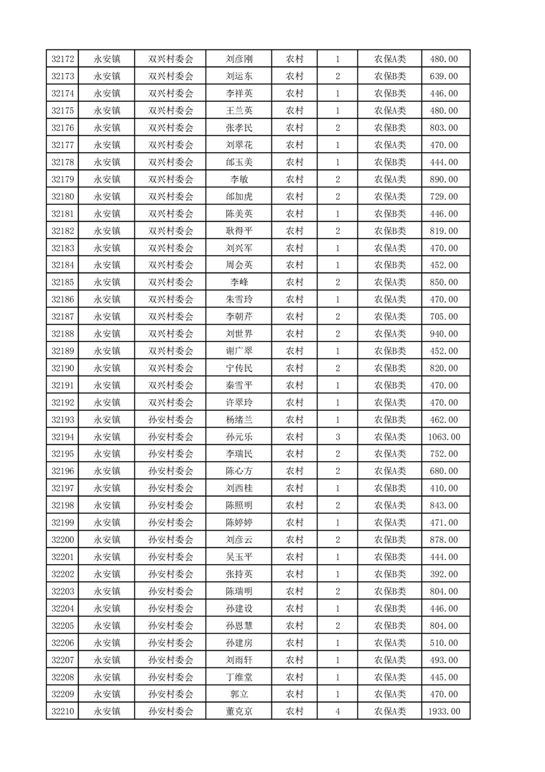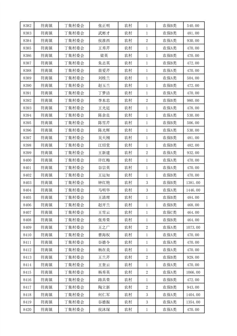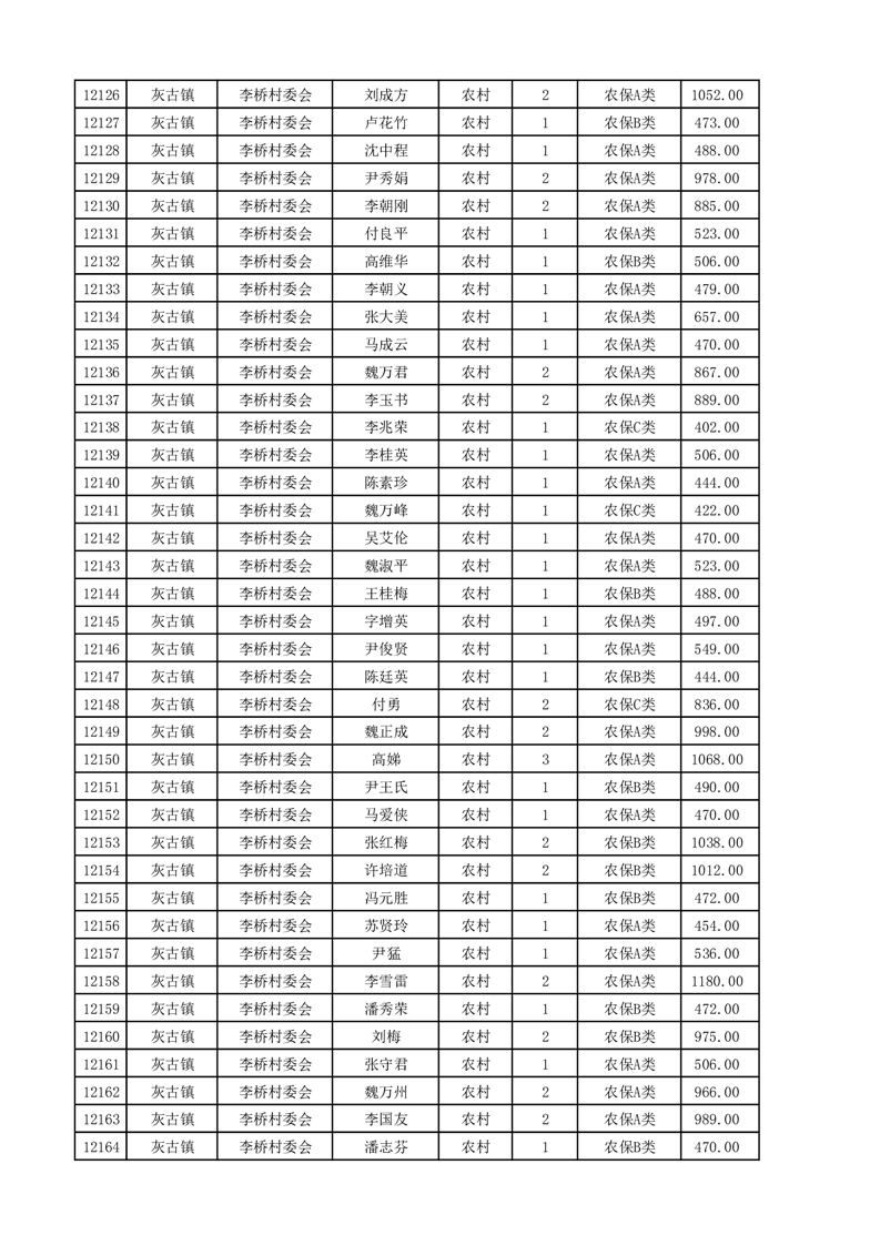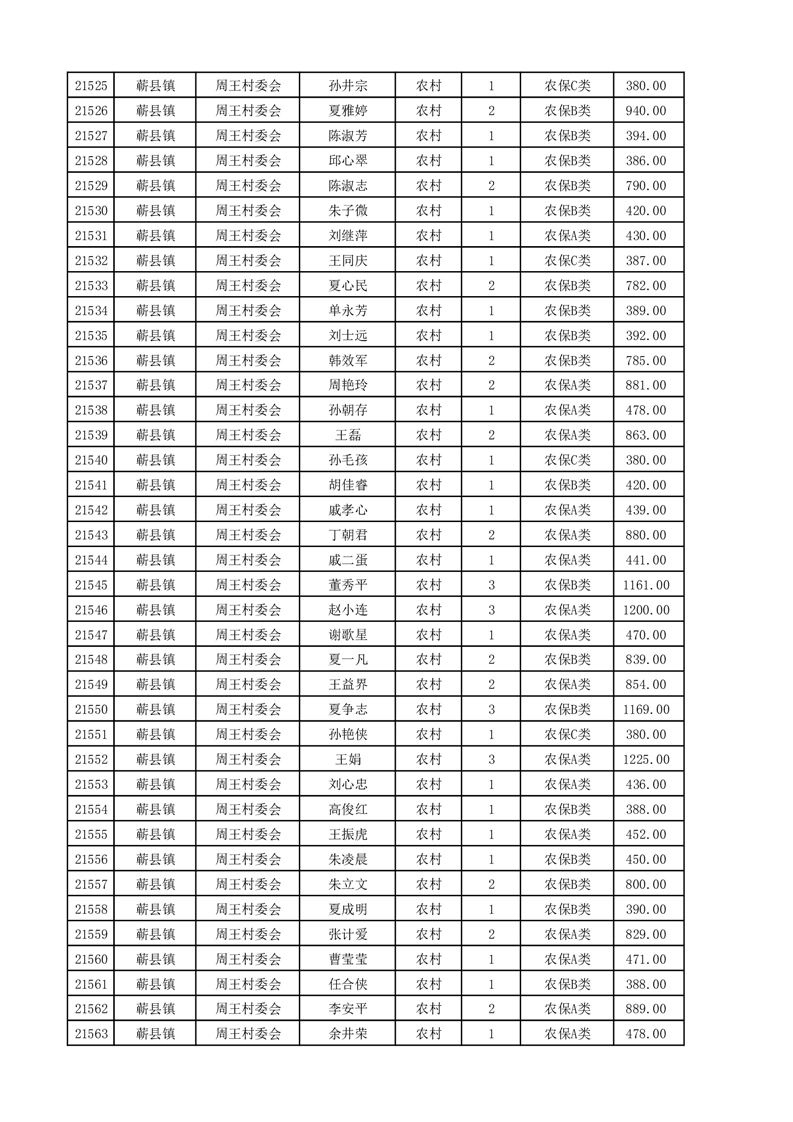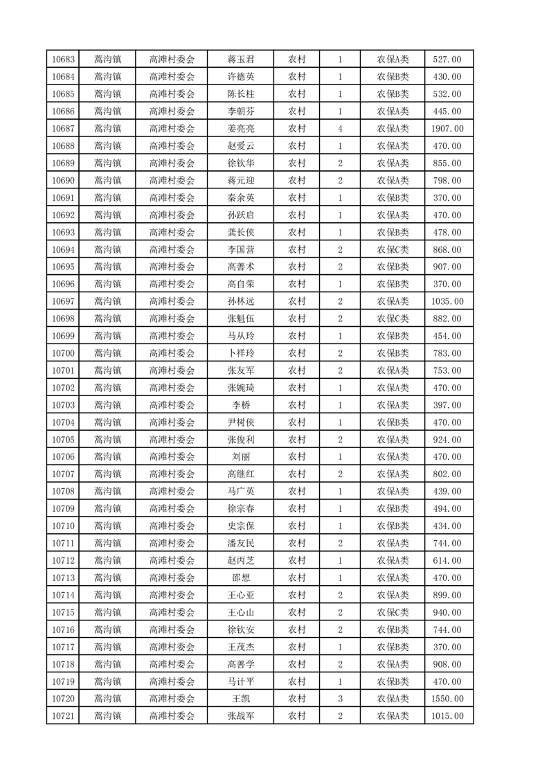 埇桥区2025年4月份农村低保花名册
