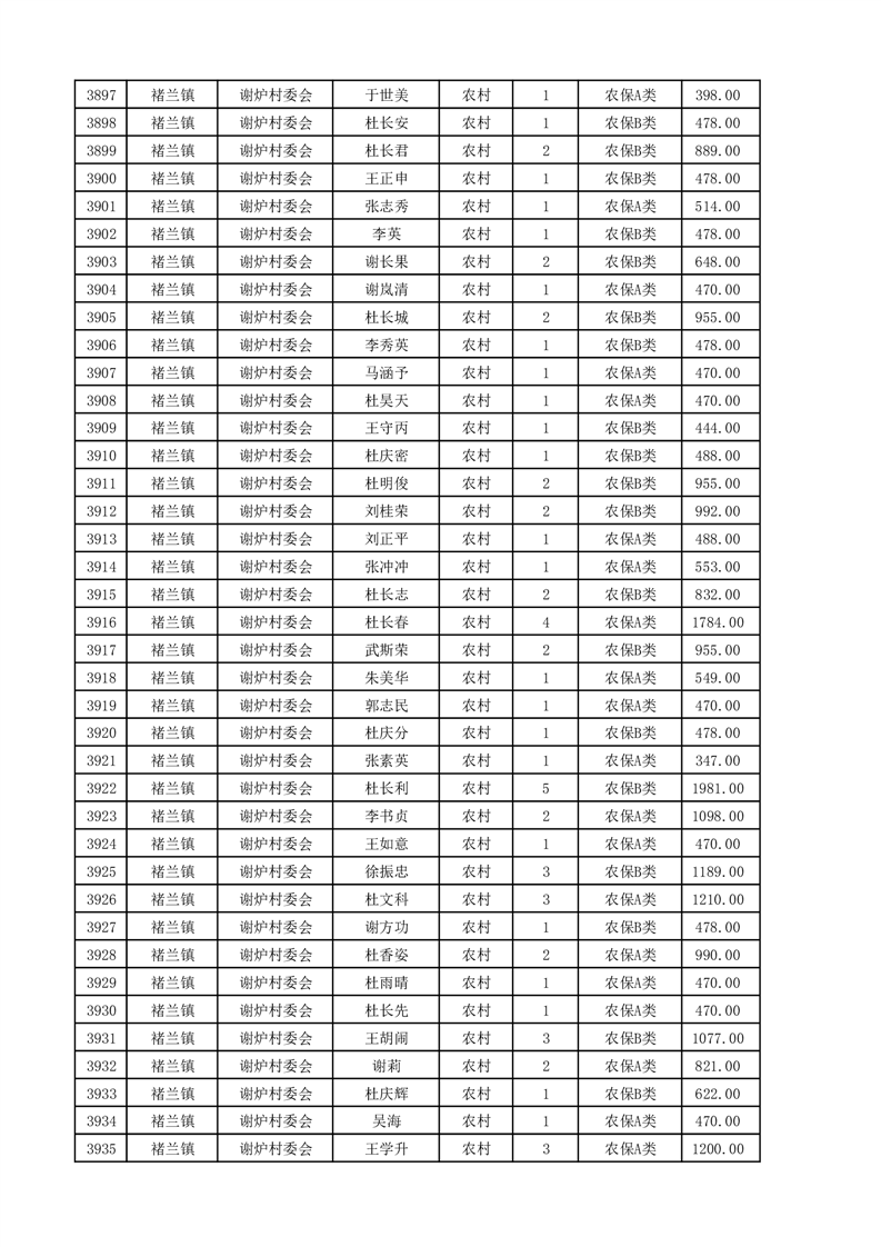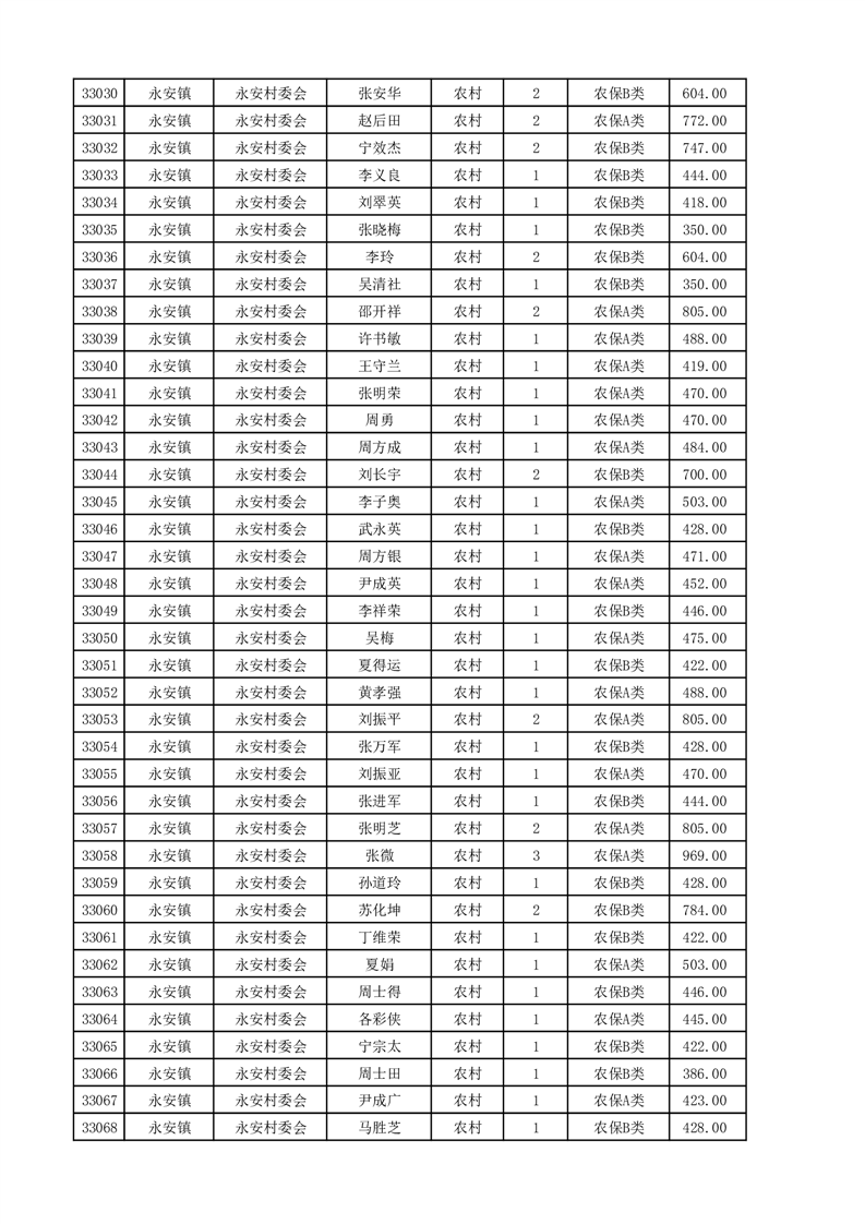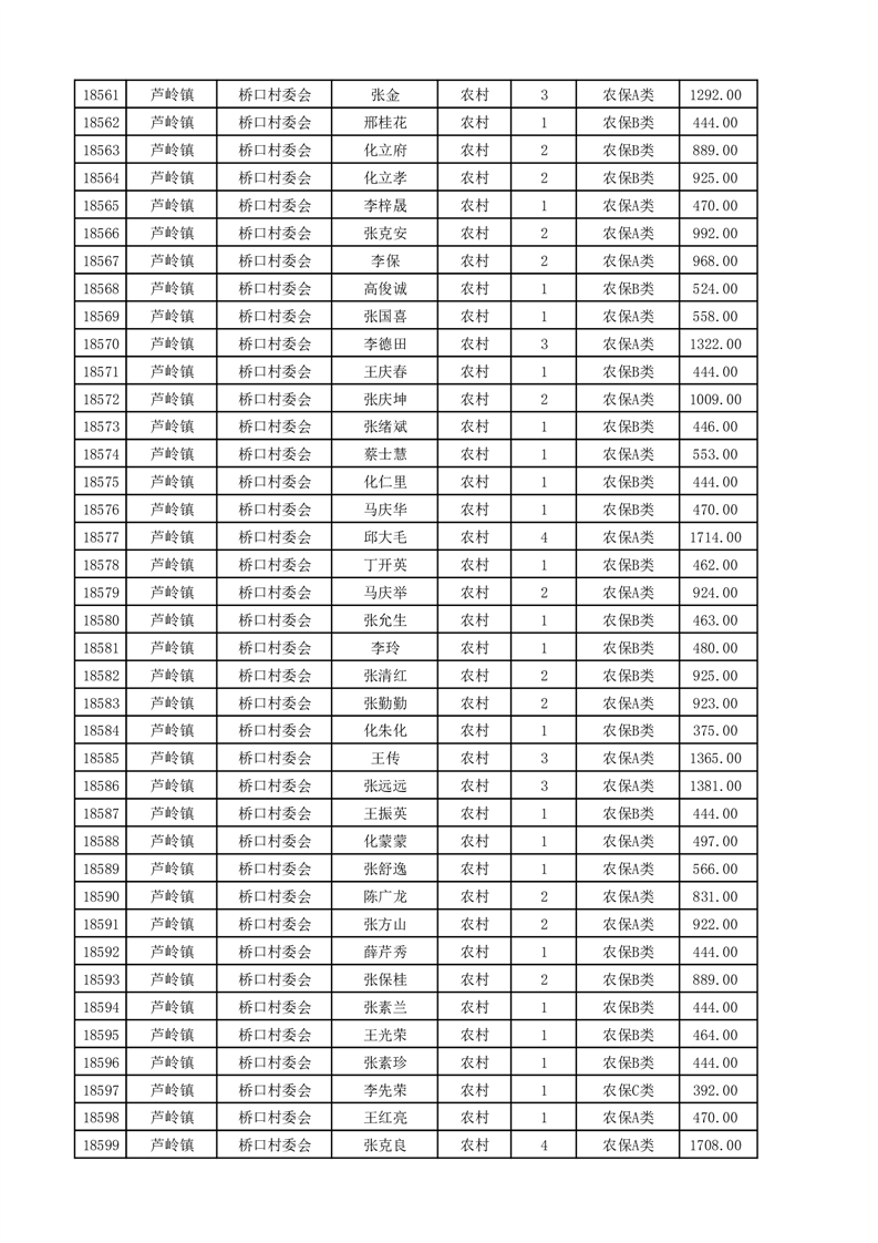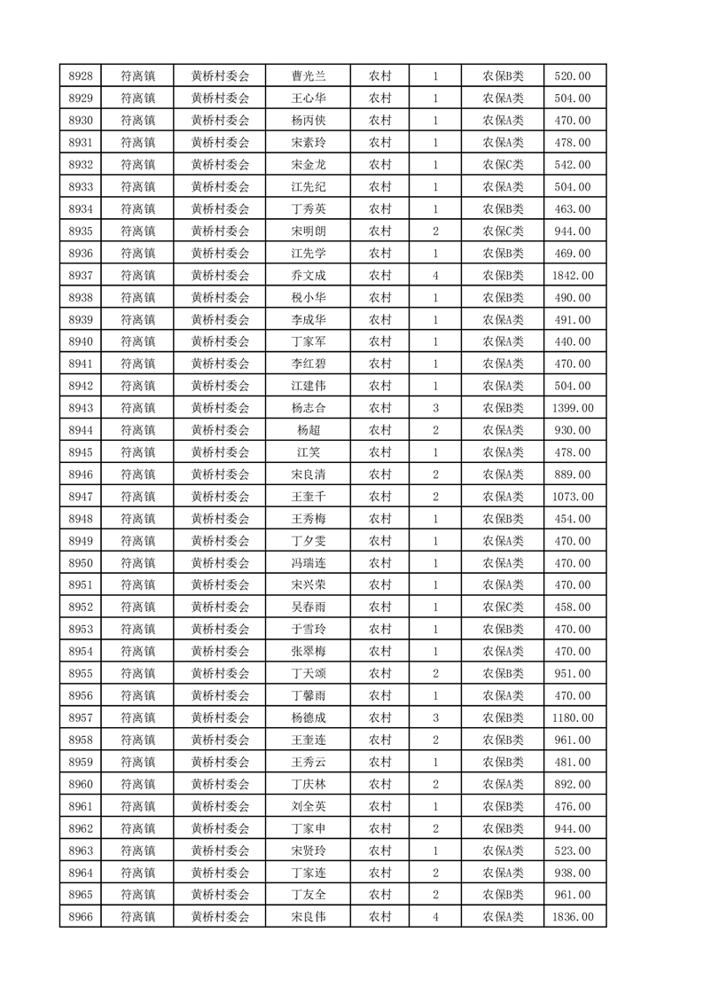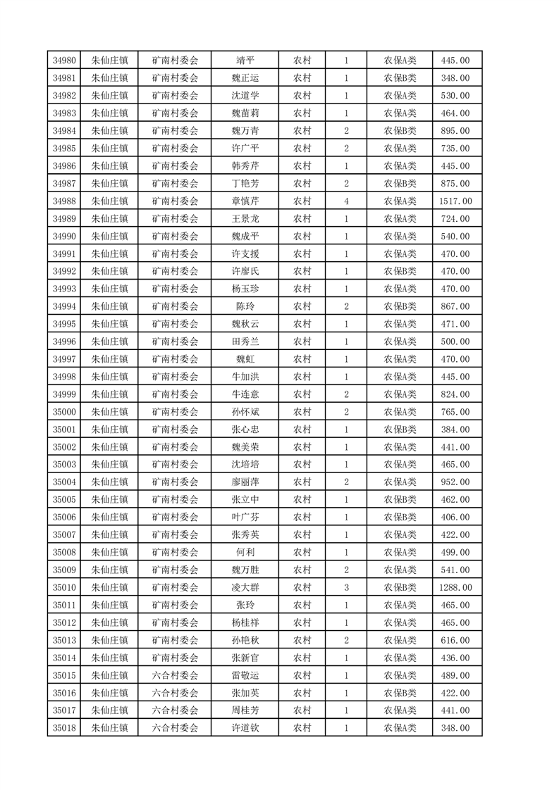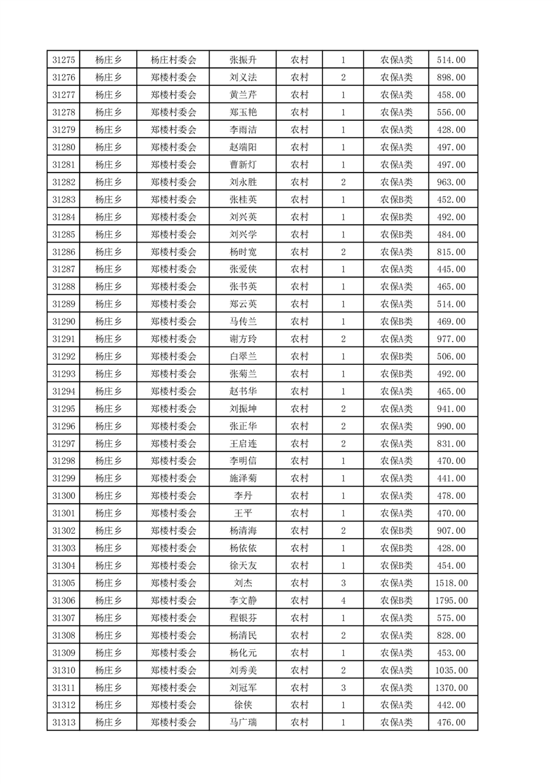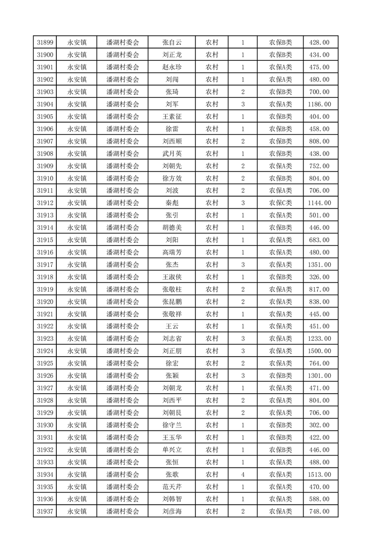 埇桥区2025年4月份农村低保花名册
